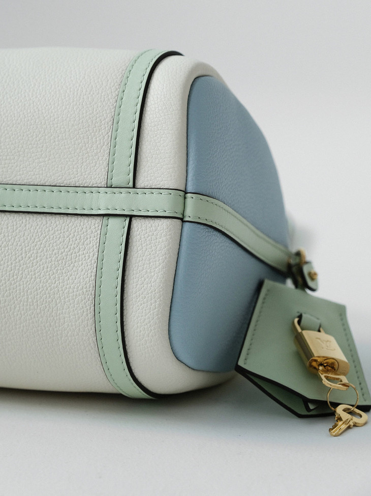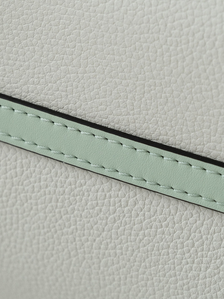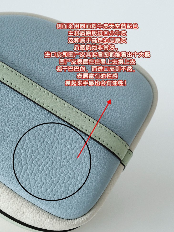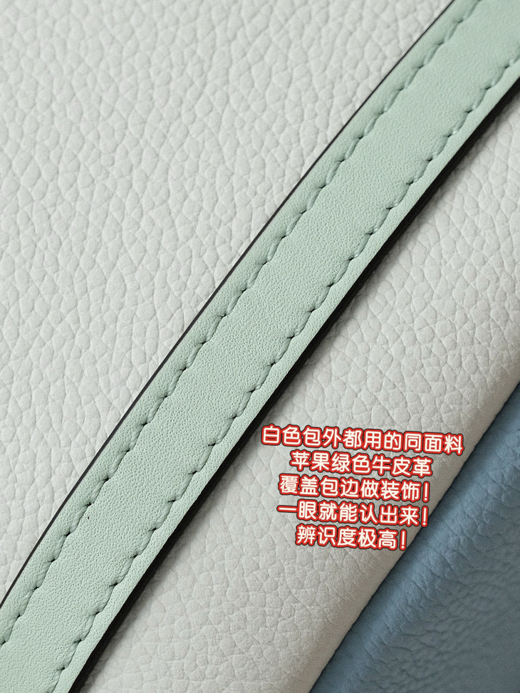 白色色包外都用的苹果绿配色覆盖包边做装饰!双用侧面天空蓝配色,一眼就能认出来!辨识度极高了!