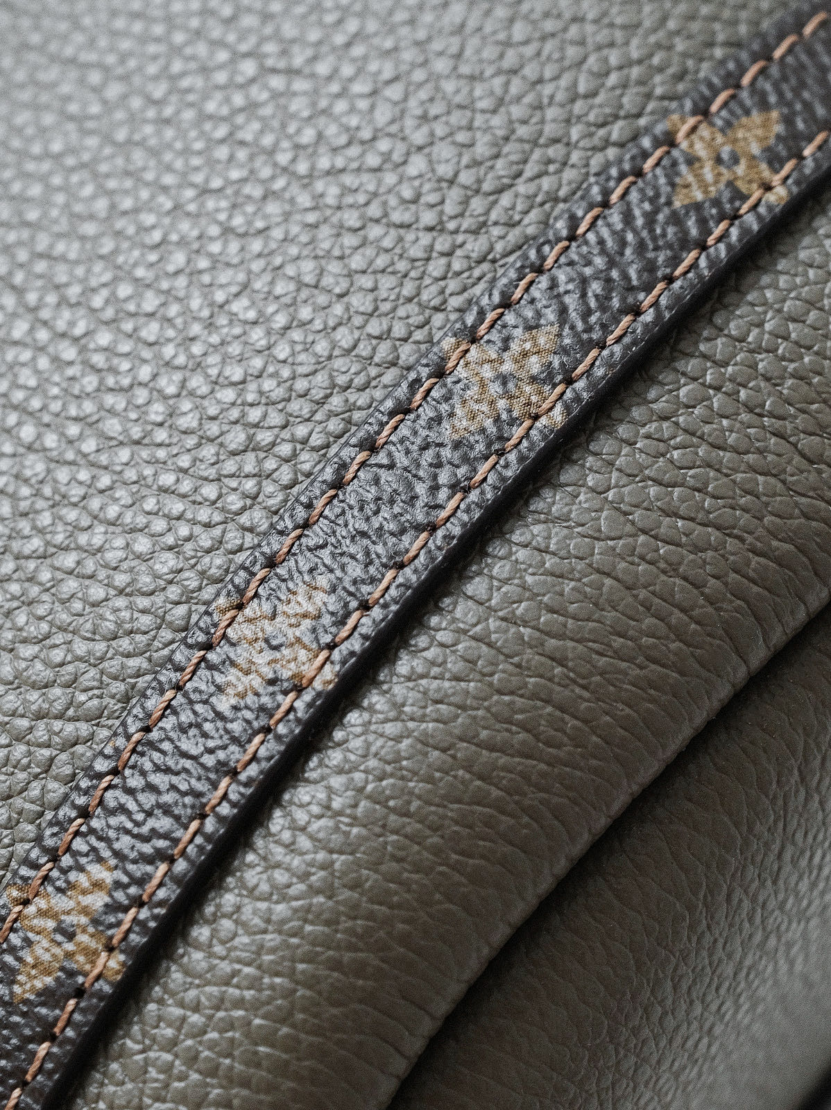 包身主体采用质感上乘的皮革材质,不仅触感舒适,而且耐用性强,能够经受日常使用的考验;搭配经典的Monogram帆布元素,这也是LV品牌极具代表性的材质,辨识度高,彰显品牌身份。