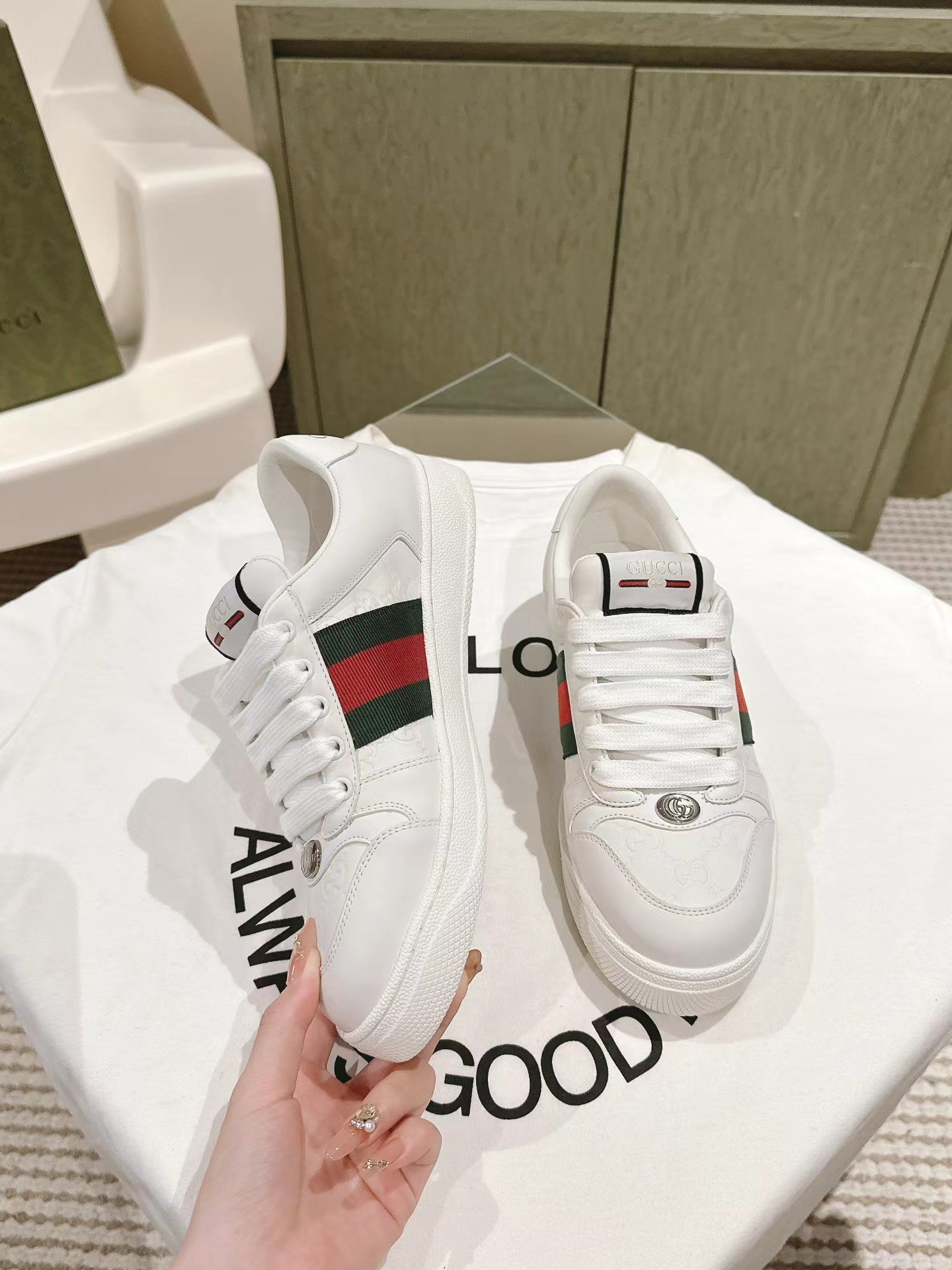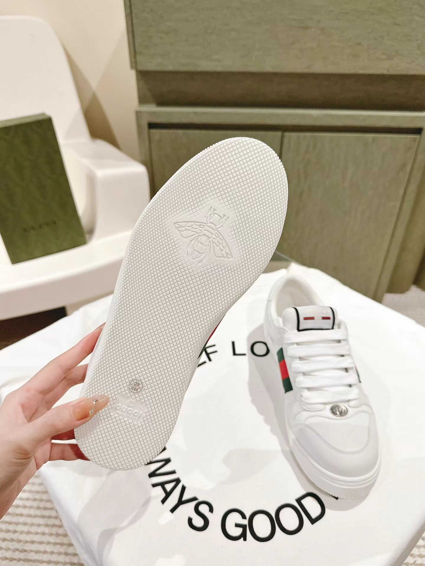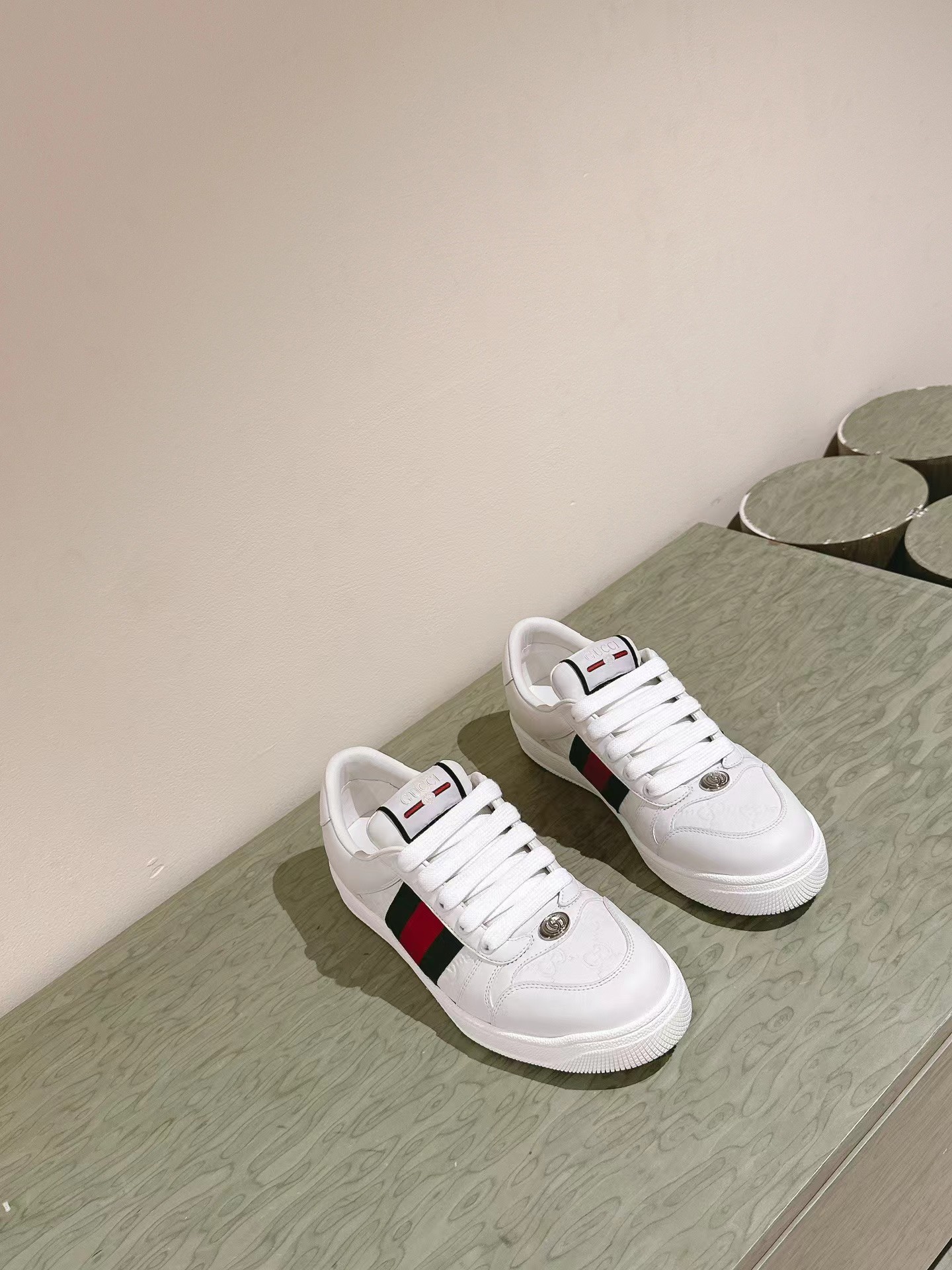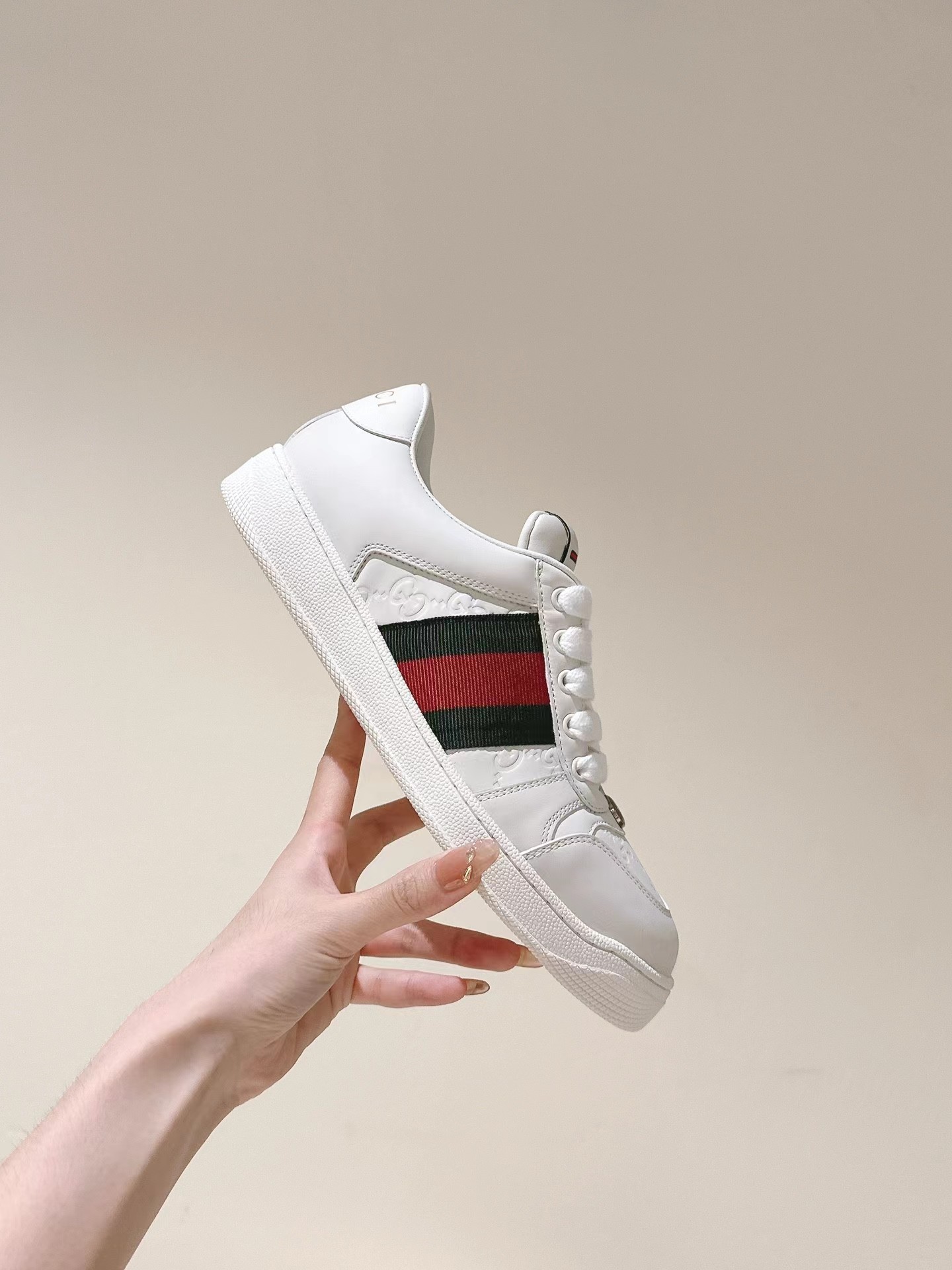 的情侣款wgucciwscreener系列男士饰织带运动鞋 这款单品出自 qucci lido系列,设计灵感源自意大利海岸的夏日风情和海滩俱乐部。screener系列运动鞋以20世纪70年代的经典运动鞋为灵感原型名字则取自体育运动中的防守动作。这款2024早秋系列鞋履以黑色橡胶(一种科技感十足且富有延展性的不透明材料)匠心打造,两侧饰有条纹织带,鞋跟缀饰gucci印花压纹标识。