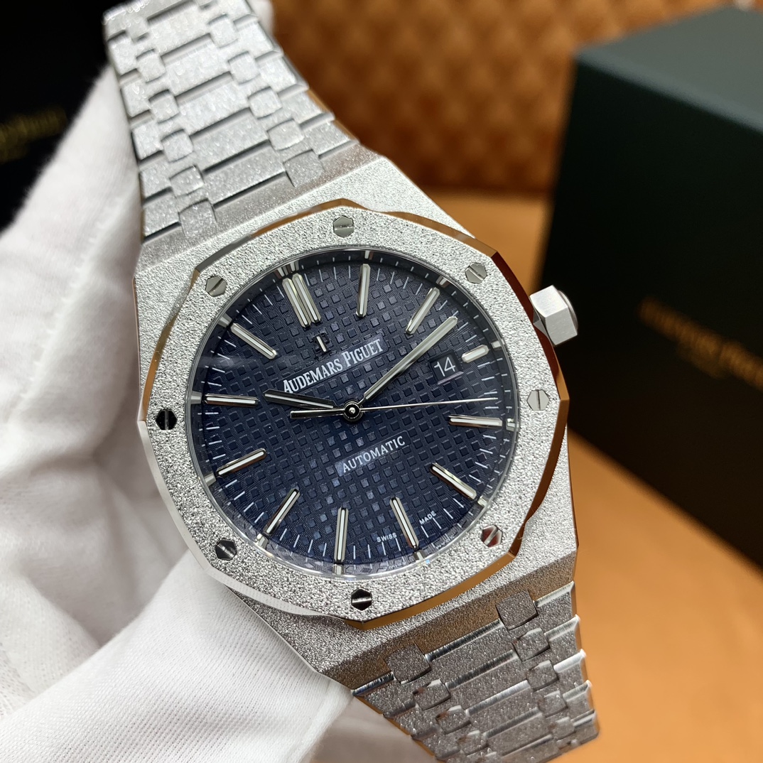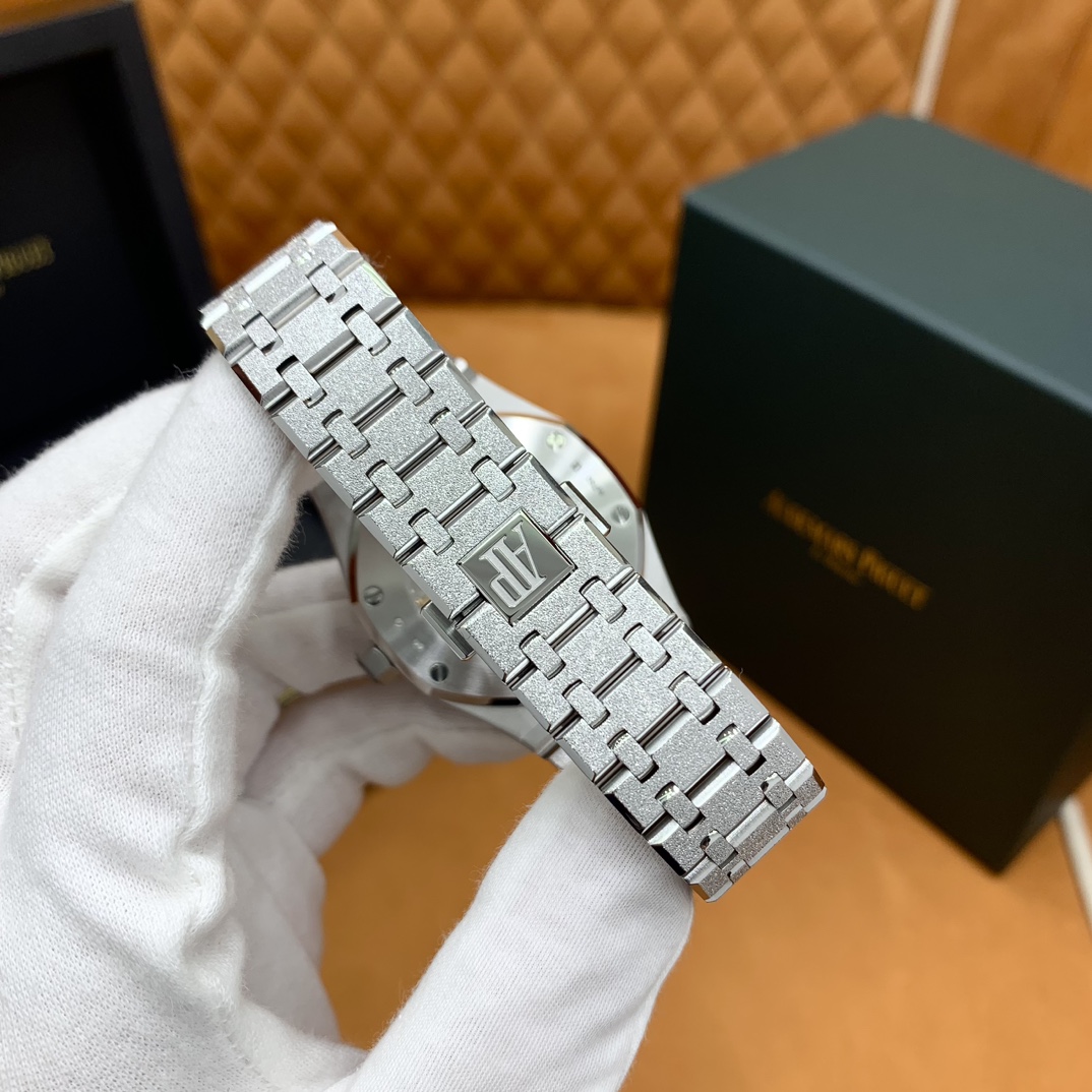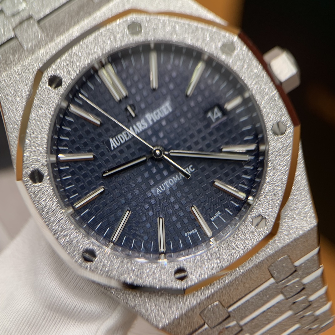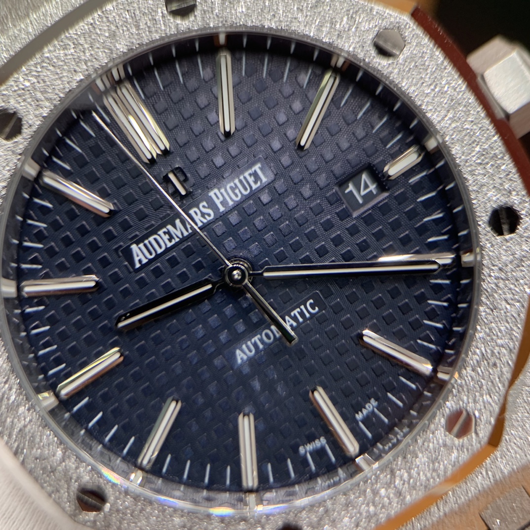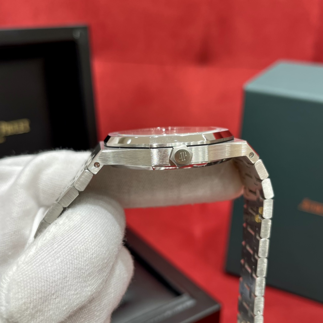 🏷️ 离岸橡树系列15410BC.GG.1224BC.01 (霜金41mm) 采用原版爱彼3120一体复刻机芯,瑞士自动陀片,陀片中轴和原版一致,原版三角避震器,瑞士级精工打磨,刻字清晰不磨损,纹理细腻,一丝不苟,日历系统和原版一致。 霜金限量款,真的有种独一无二的魅力!全球限量200枚,还原佛罗伦萨工艺打造的霜金纹理,犹如钻石般璀璨,简直是颜值与工艺的双重巅峰! 八角形的表壳,极具硬朗运动风格,侧面高亮抛光和正面的霜金效果交错对应,呈现出一种高级感。霜金表带,折叠式表扣,实用耐看,霜金工艺做得很细腻,细节都跟足了原版~ 盘面饼干纹路 字面 logo做工颜色和原版放一起看不出有什么区别,可以说挑不出任何毛病👌🏻 这表上手效果超级高级,适合那些注重细节和独特品味的小哥哥!心动就赶紧入手! 尺寸:41X9.8mm