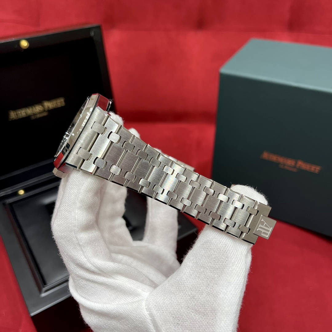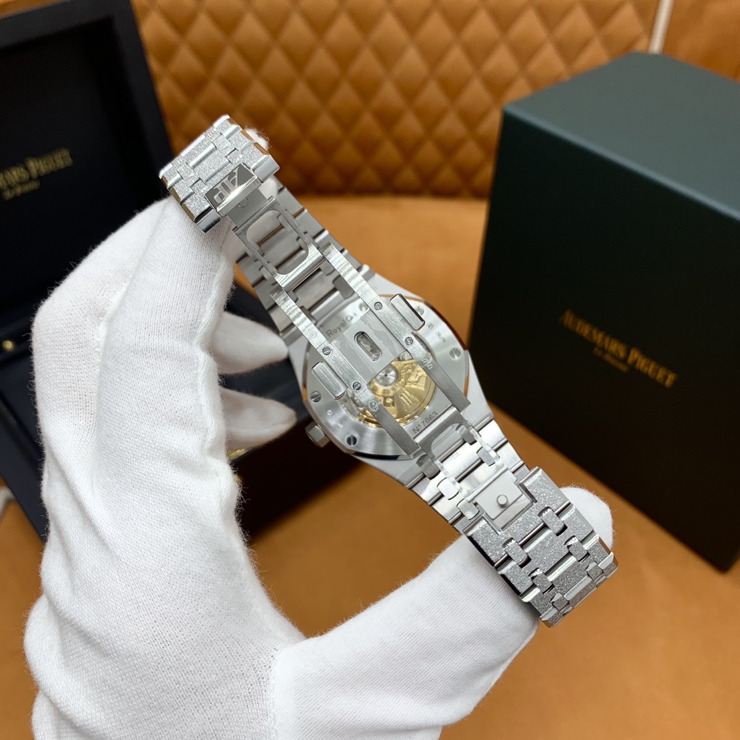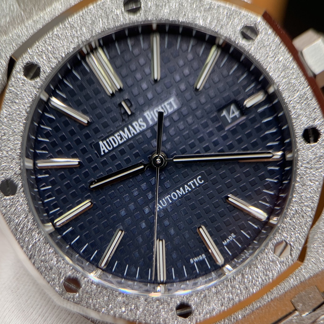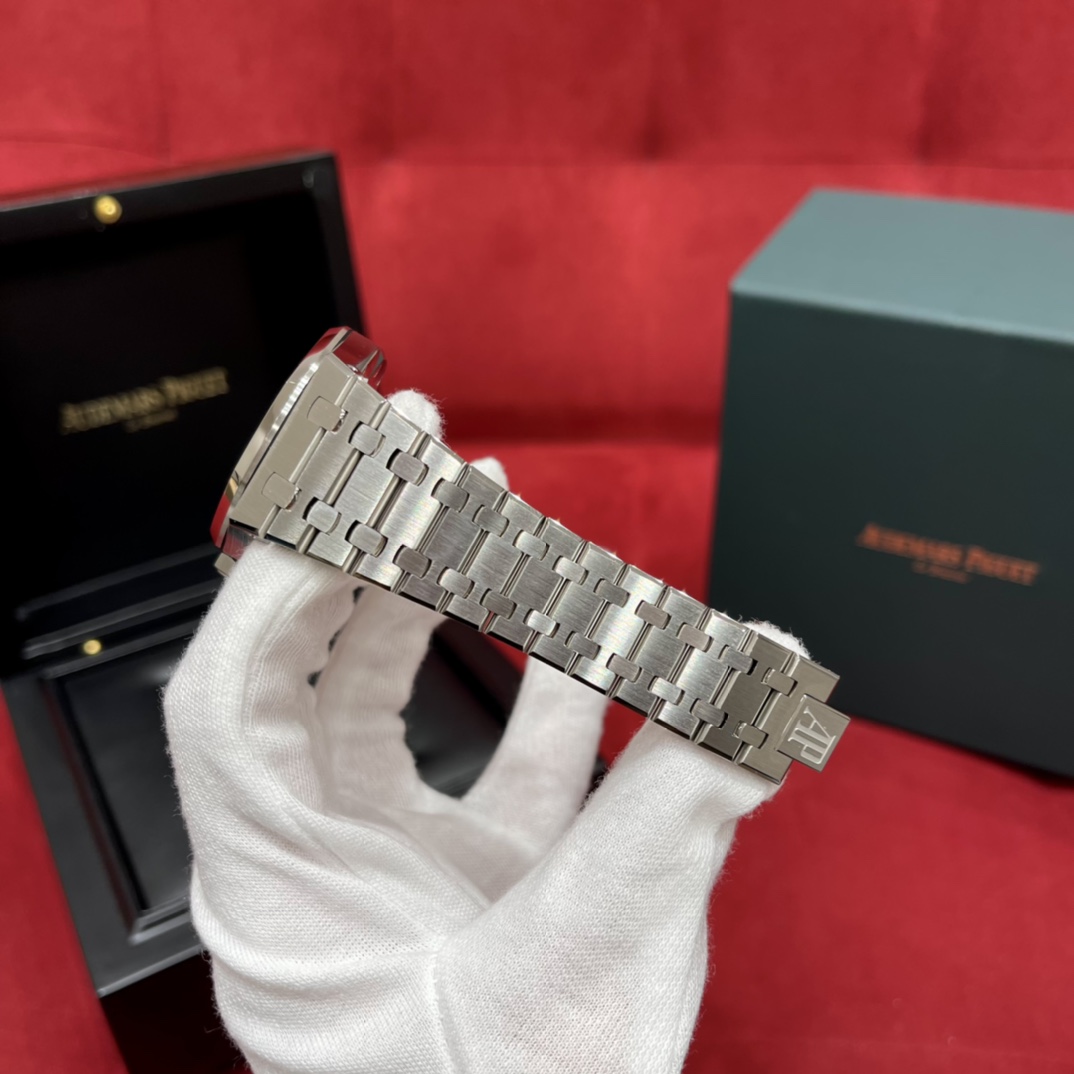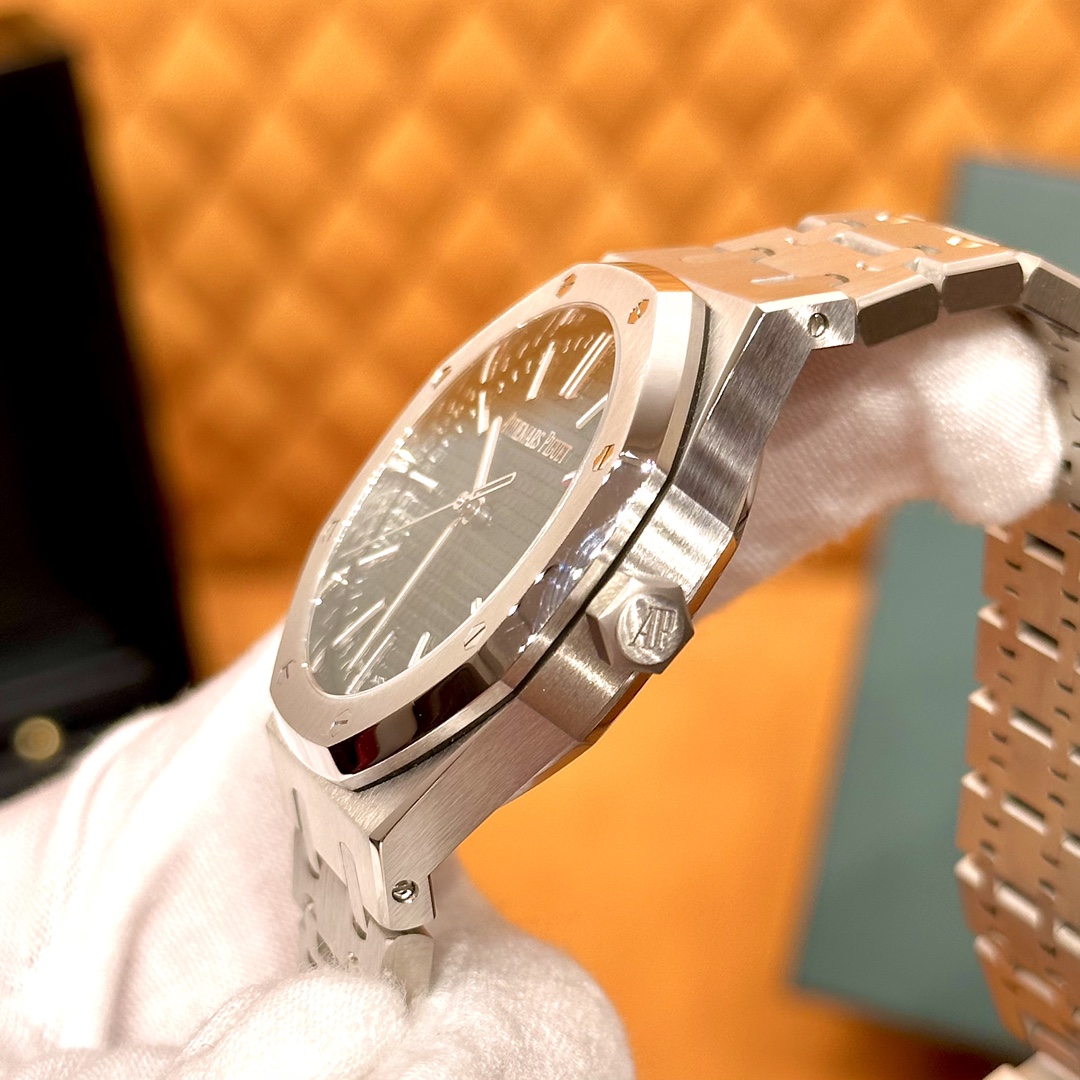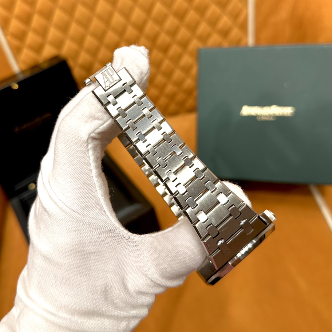 🏷️ 离岸橡树系列15410BC.GG.1224BC.01 (霜金41mm) 采用原版爱彼3120一体复刻机芯,瑞士自动陀片,陀片中轴和原版一致,原版三角避震器,瑞士级精工打磨,刻字清晰不磨损,纹理细腻,一丝不苟,日历系统和原版一致。 霜金限量款,真的有种独一无二的魅力!全球限量200枚,还原佛罗伦萨工艺打造的霜金纹理,犹如钻石般璀璨,简直是颜值与工艺的双重巅峰! 八角形的表壳,极具硬朗运动风格,侧面高亮抛光和正面的霜金效果交错对应,呈现出一种高级感。霜金表带,折叠式表扣,实用耐看,霜金工艺做得很细腻,细节都跟足了原版~ 盘面饼干纹路 字面 logo做工颜色和原版放一起看不出有什么区别,可以说挑不出任何毛病👌🏻 这表上手效果超级高级,适合那些注重细节和独特品味的小哥哥!心动就赶紧入手! 尺寸:41X9.8mm