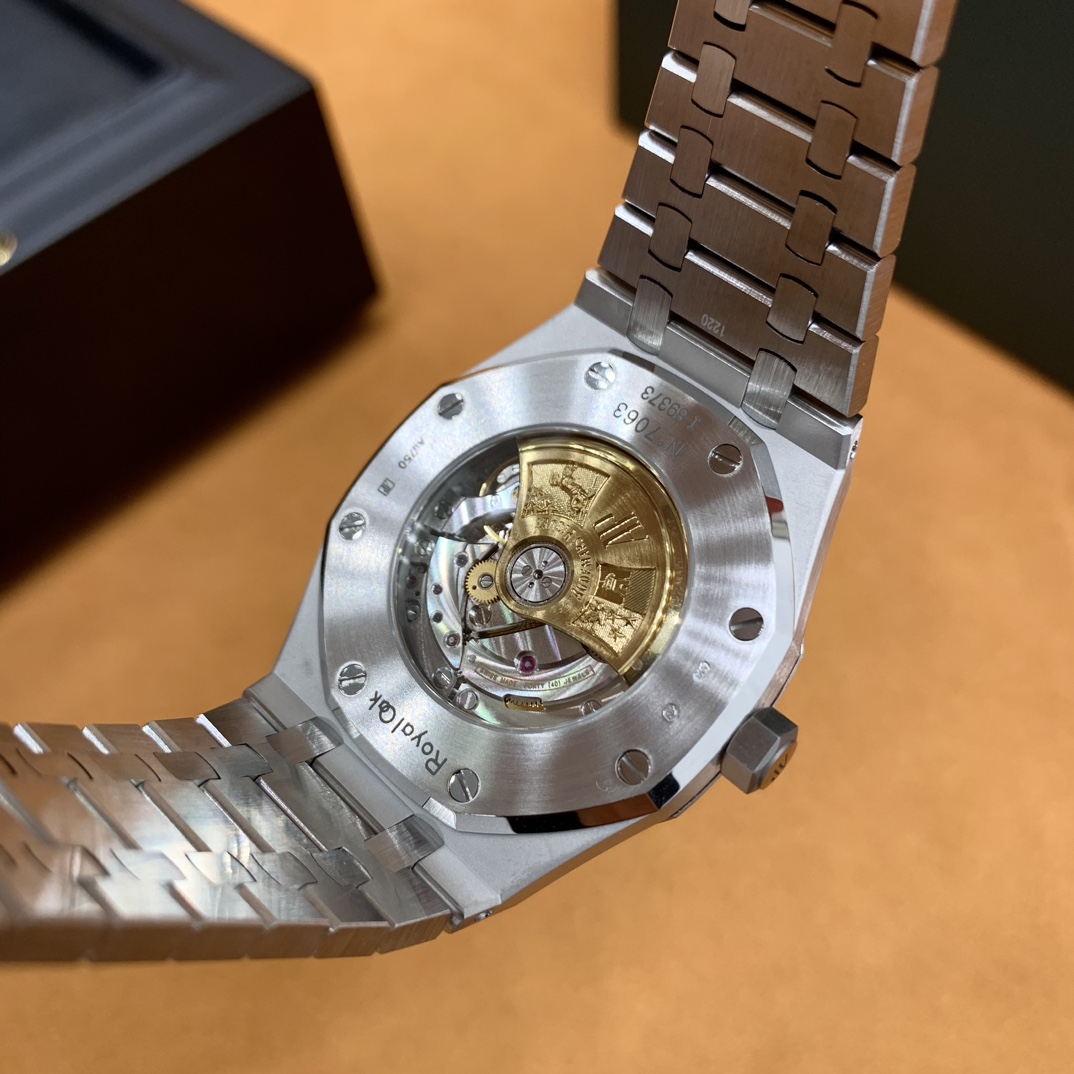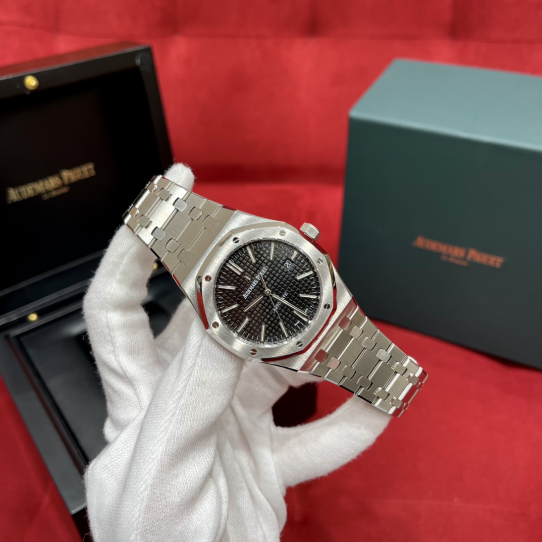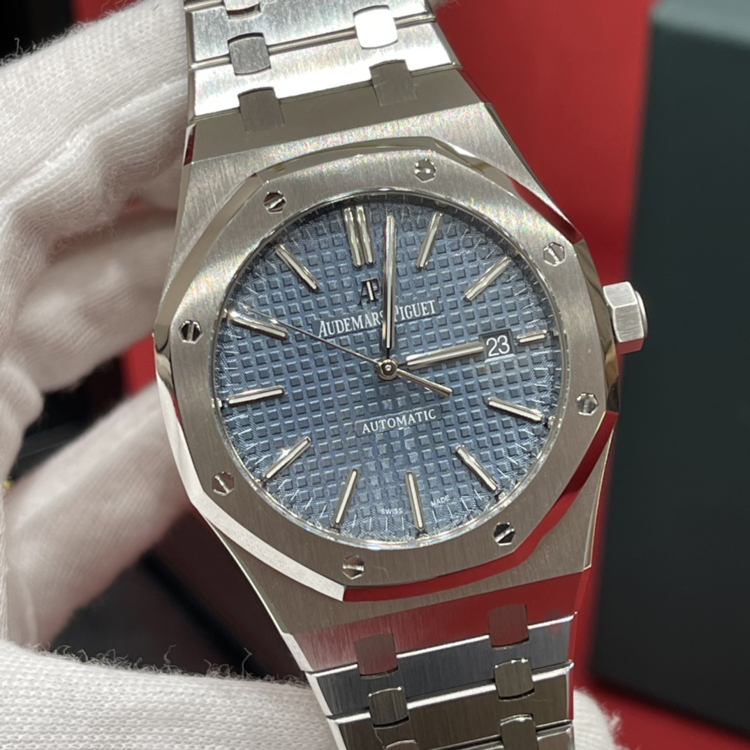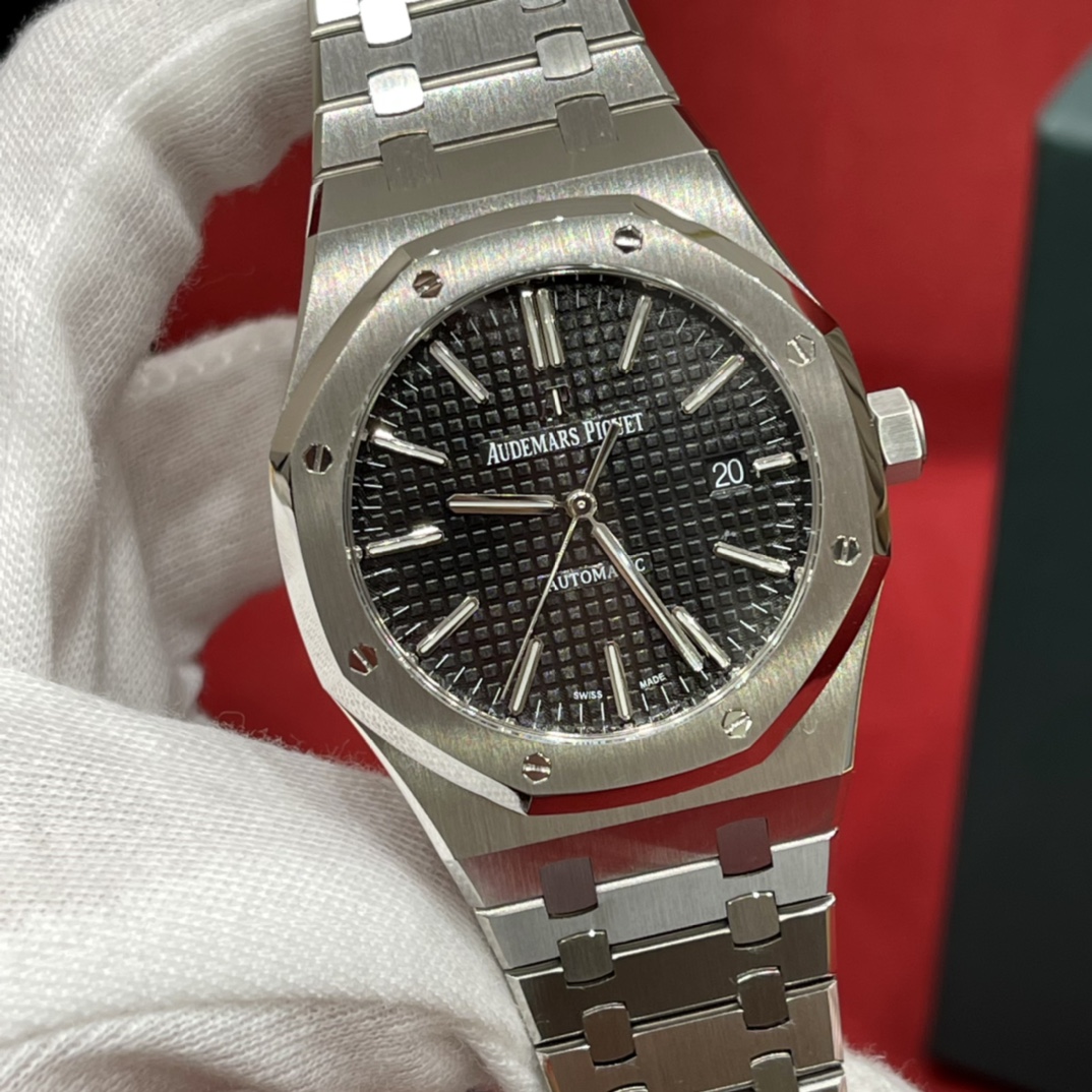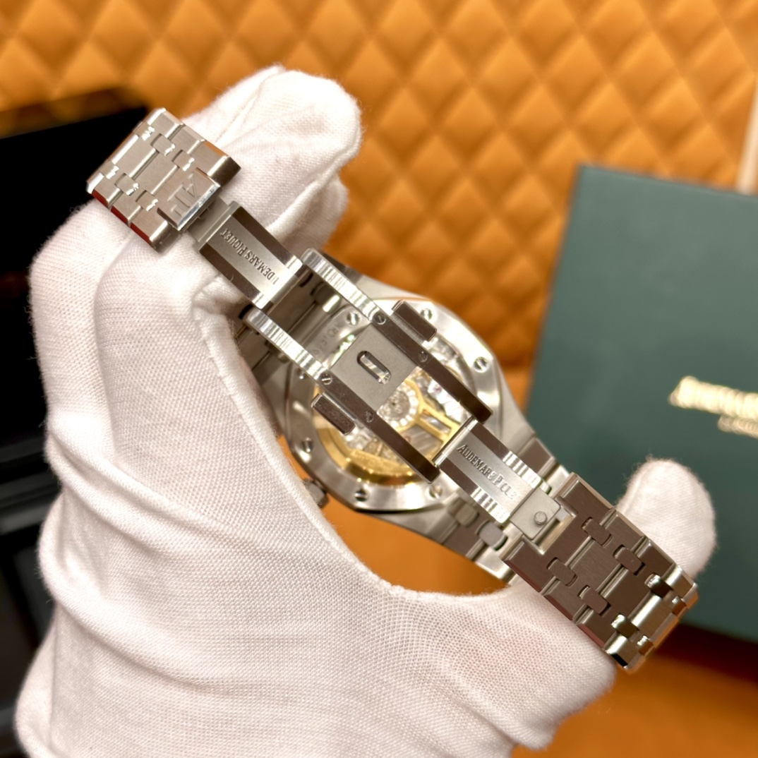🏷️ 离岸橡树系列15410BC.GG.1224BC.01 (霜金41mm) 采用原版爱彼3120一体复刻机芯,瑞士自动陀片,陀片中轴和原版一致,原版三角避震器,瑞士级精工打磨,刻字清晰不磨损,纹理细腻,一丝不苟,日历系统和原版一致。 霜金限量款,真的有种独一无二的魅力!全球限量200枚,还原佛罗伦萨工艺打造的霜金纹理,犹如钻石般璀璨,简直是颜值与工艺的双重巅峰! 八角形的表壳,极具硬朗运动风格,侧面高亮抛光和正面的霜金效果交错对应,呈现出一种高级感。霜金表带,折叠式表扣,实用耐看,霜金工艺做得很细腻,细节都跟足了原版~ 盘面饼干纹路 字面 logo做工颜色和原版放一起看不出有什么区别,可以说挑不出任何毛病👌🏻 这表上手效果超级高级,适合那些注重细节和独特品味的小哥哥!心动就赶紧入手! 尺寸:41X9.8mm