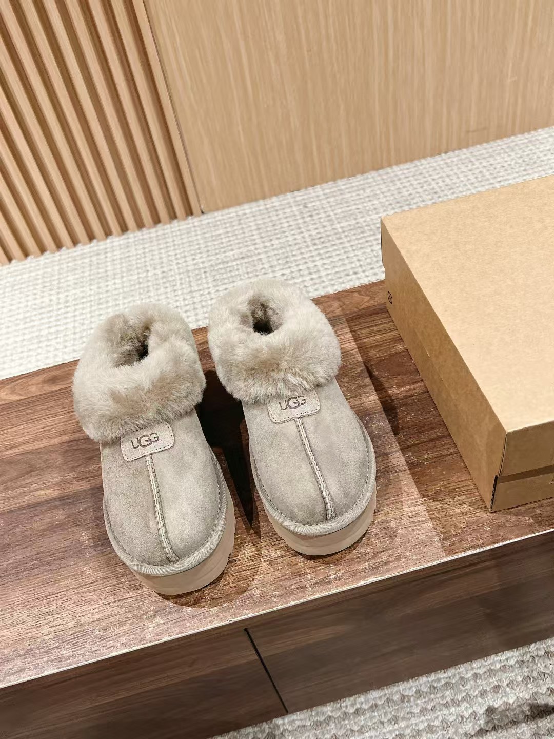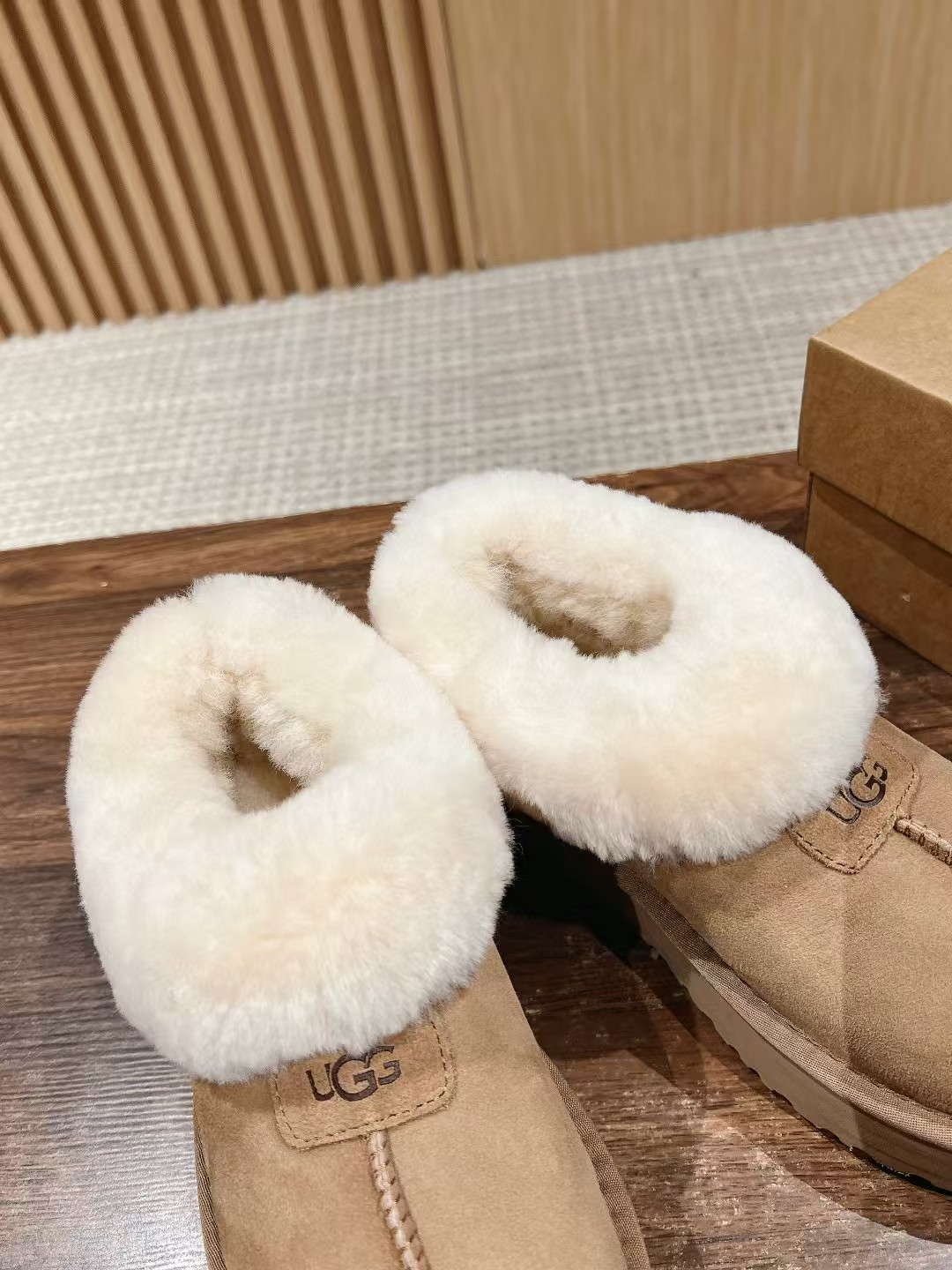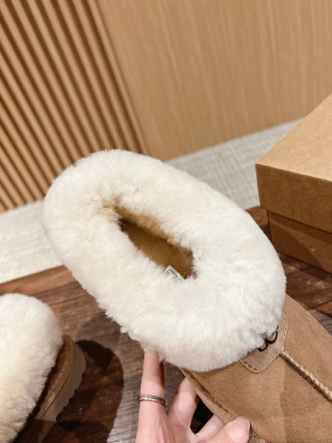 这款一看就能感觉到秋冬的氛围感,有点美式的感觉,毛茸茸的很舒服,温暖又时髦。皮毛一体 隆丰一级 eva 太阳花大底