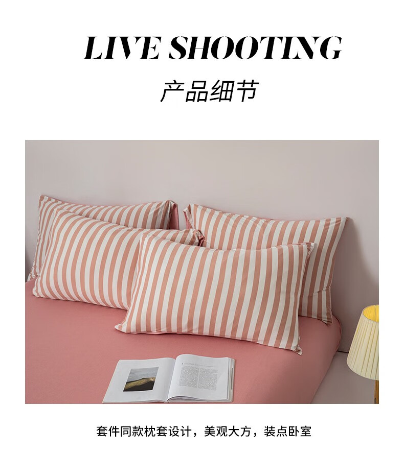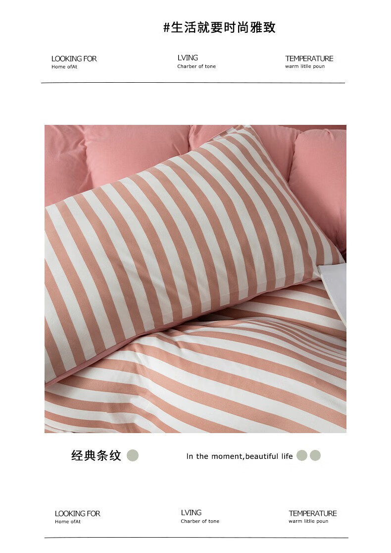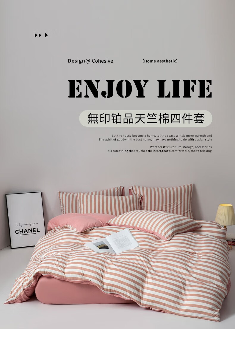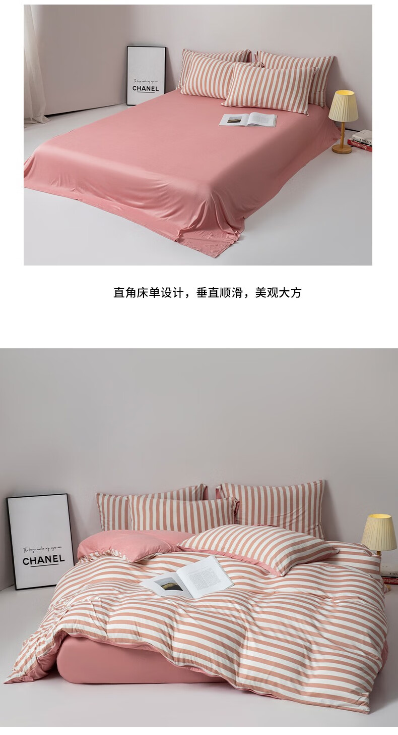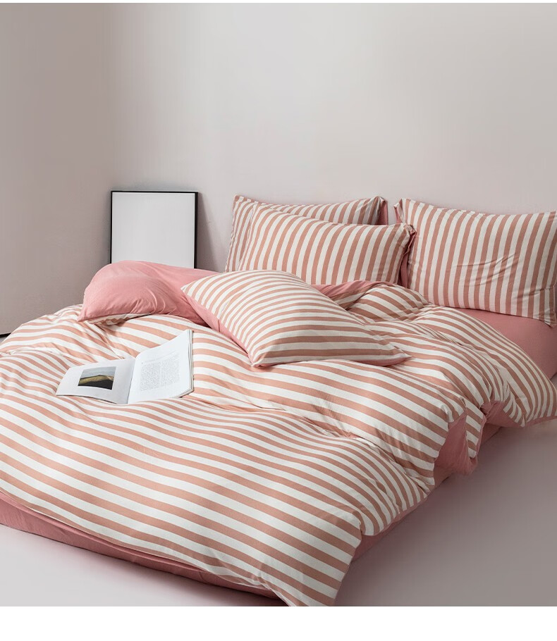 無印铂品天竺棉四件套 律动条纹 MUJI-TJ23-72 粉红色 200*230cm
