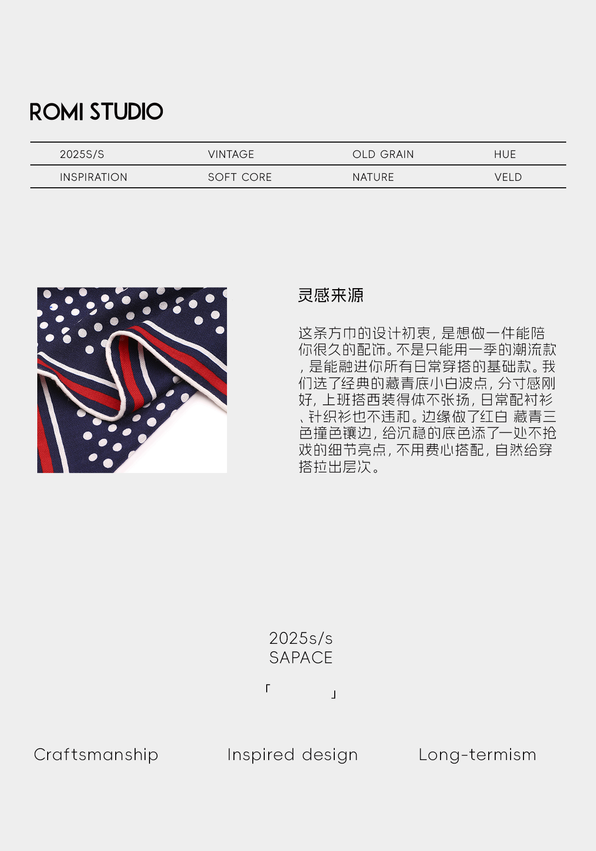 ROMI STUDIO“法式波点”100%绵羊毛软柔撞色丝巾胸巾RWDSP02639