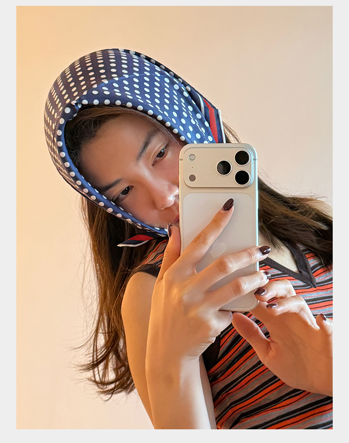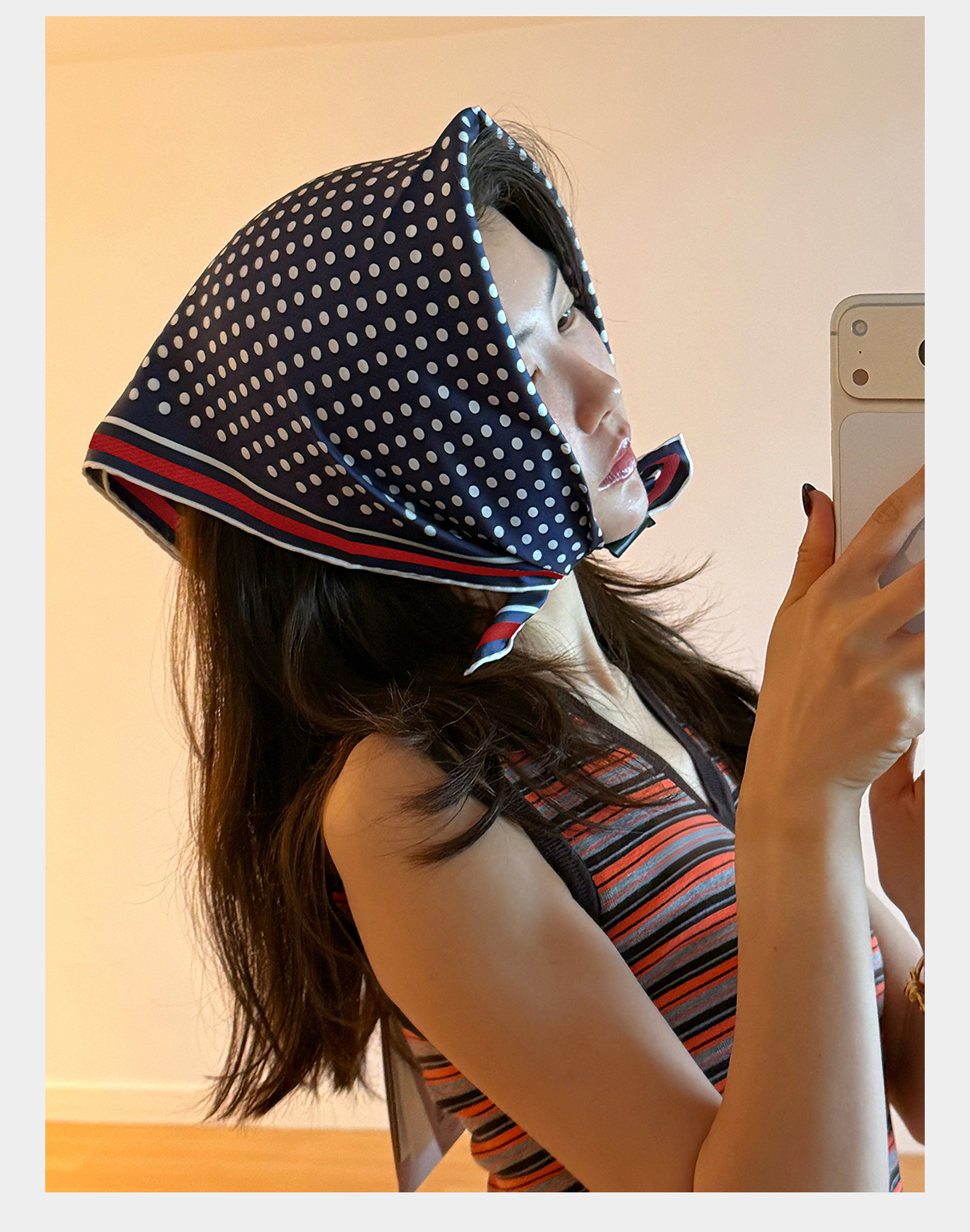 ROMI STUDIO“法式赫本”100%桑蚕丝黑白波点披肩丝巾 RWDSP02638