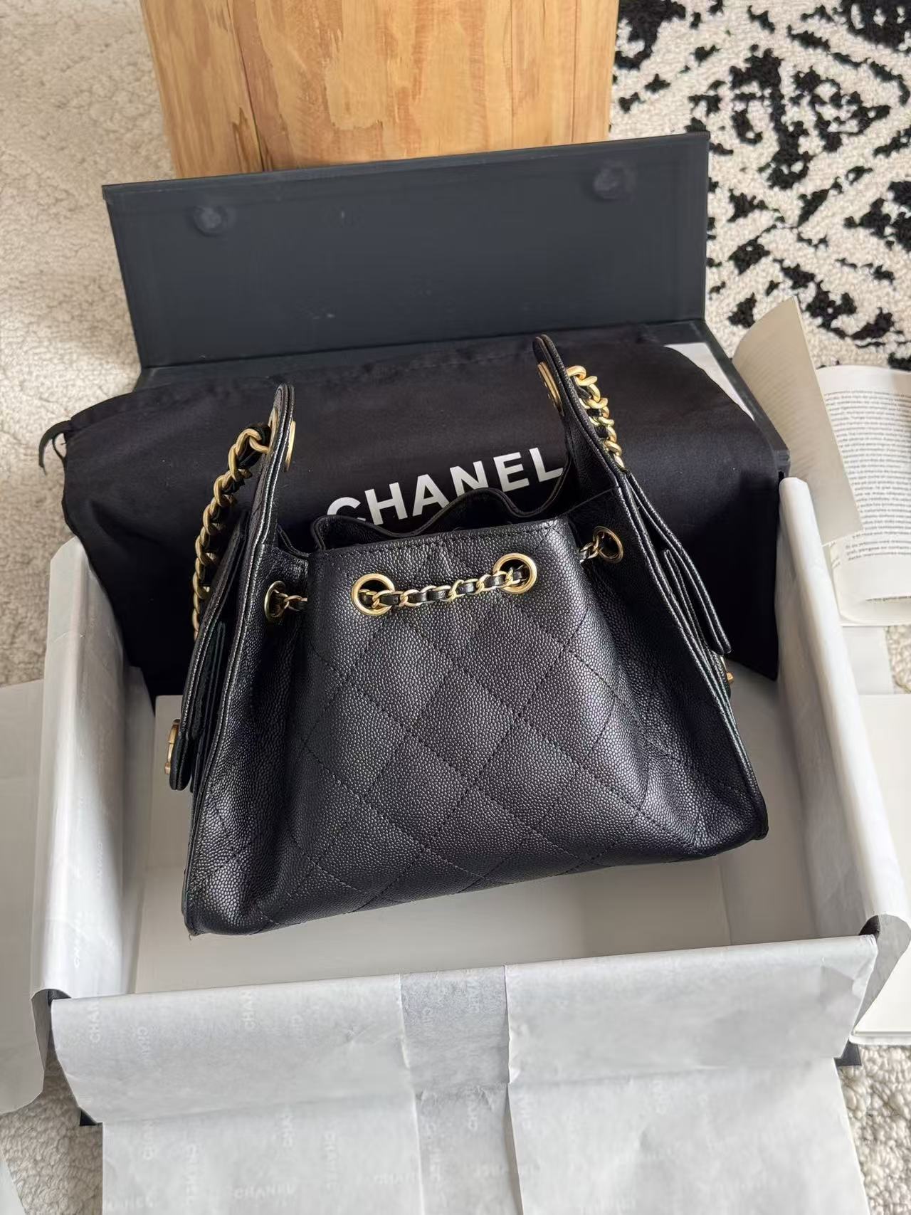 采用菱格纹路精致规整,增添立体感与时尚感。整体水桶造型简约大方,线条流畅,兼具优雅与随性。