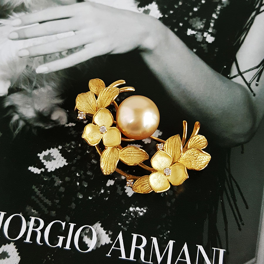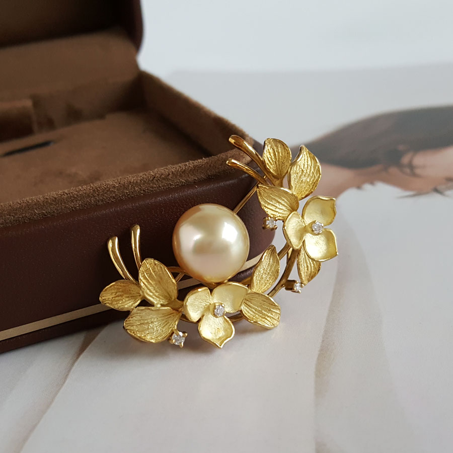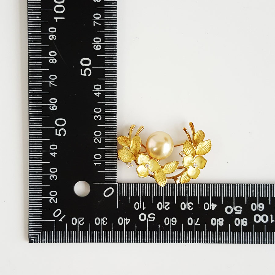 名称 | AU750精品黄金镶钻镶天然近圆约11.5MM金色南洋海水珍珠胸针 |