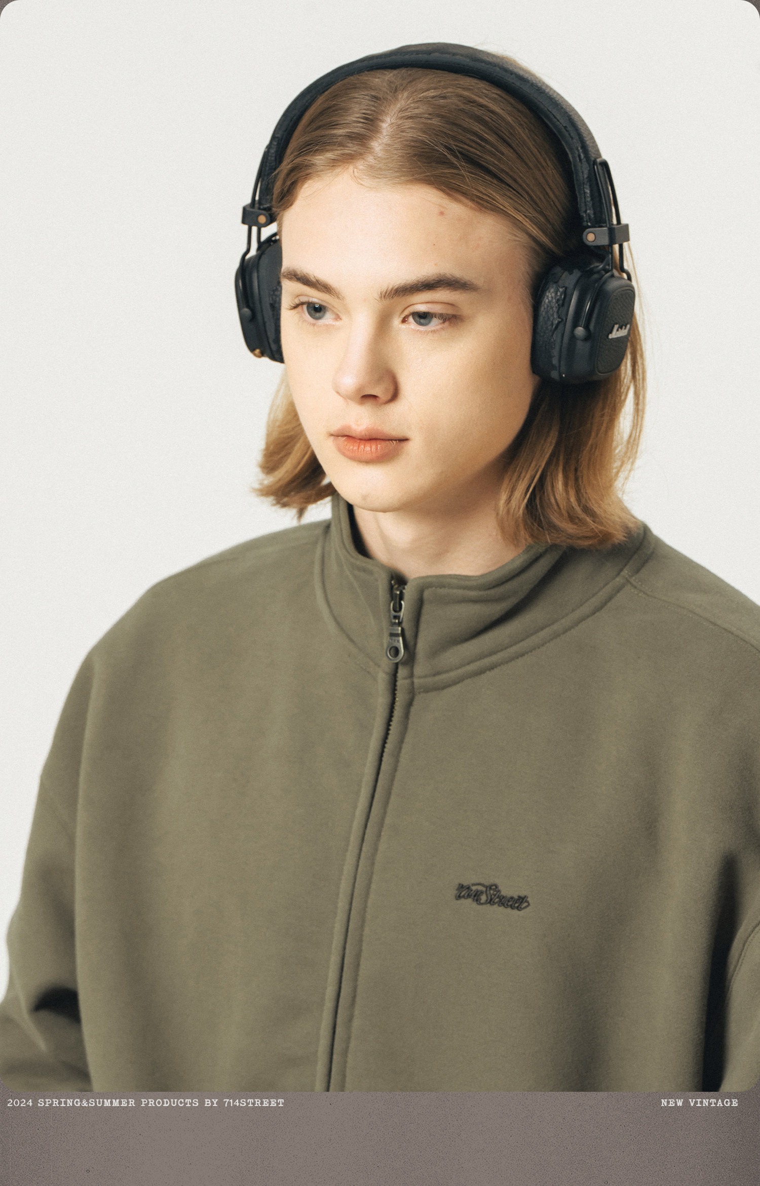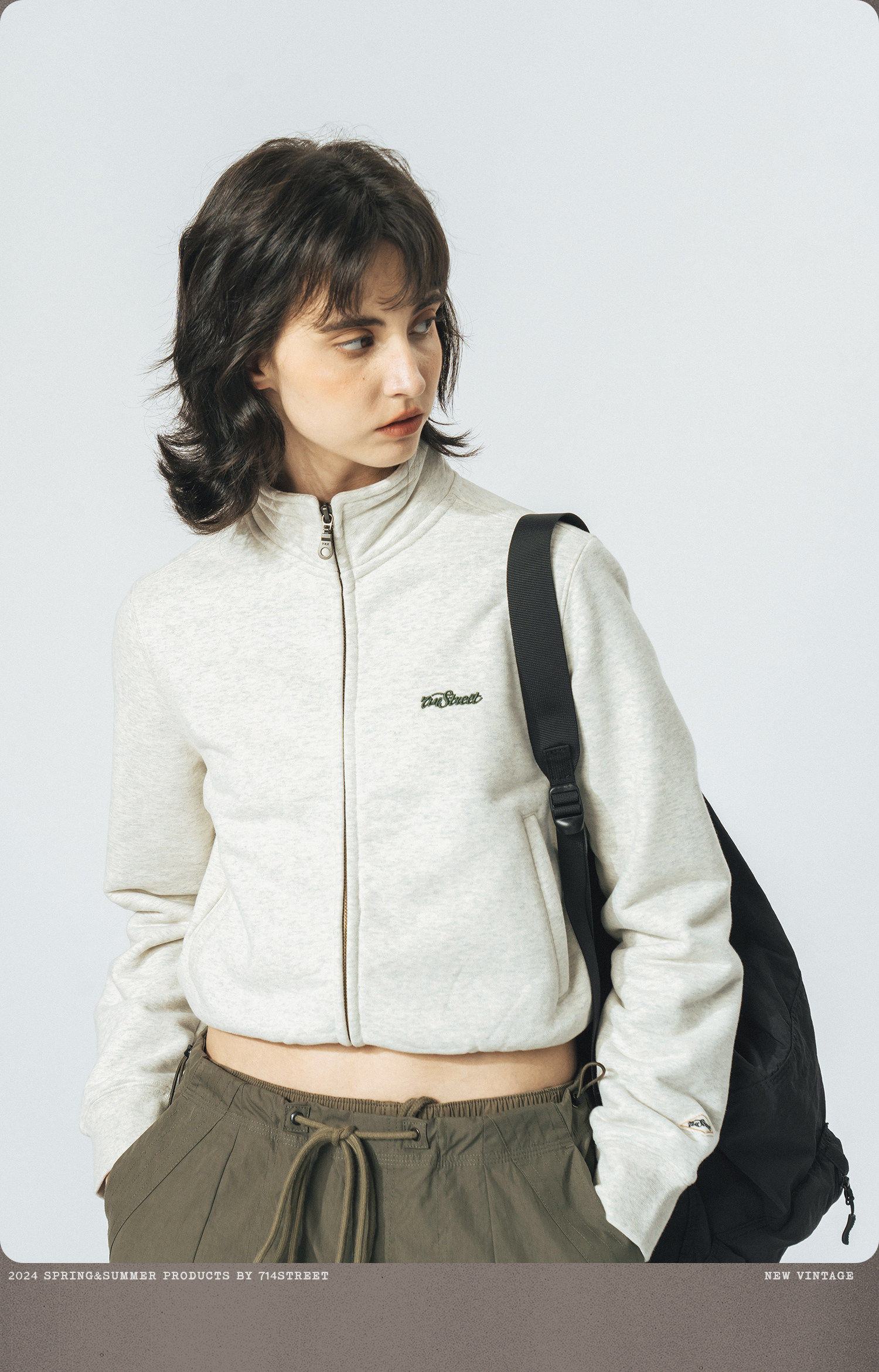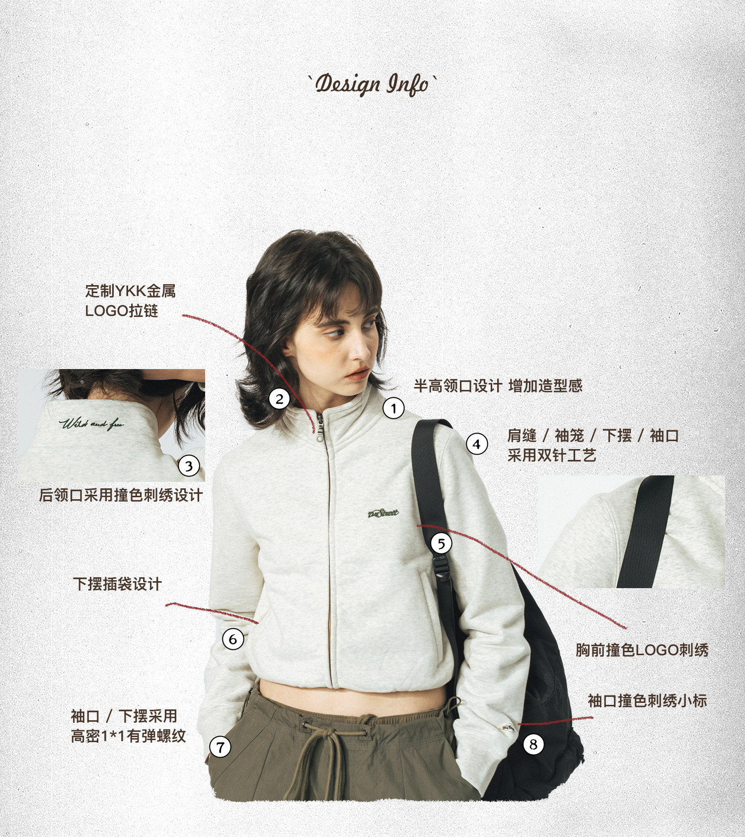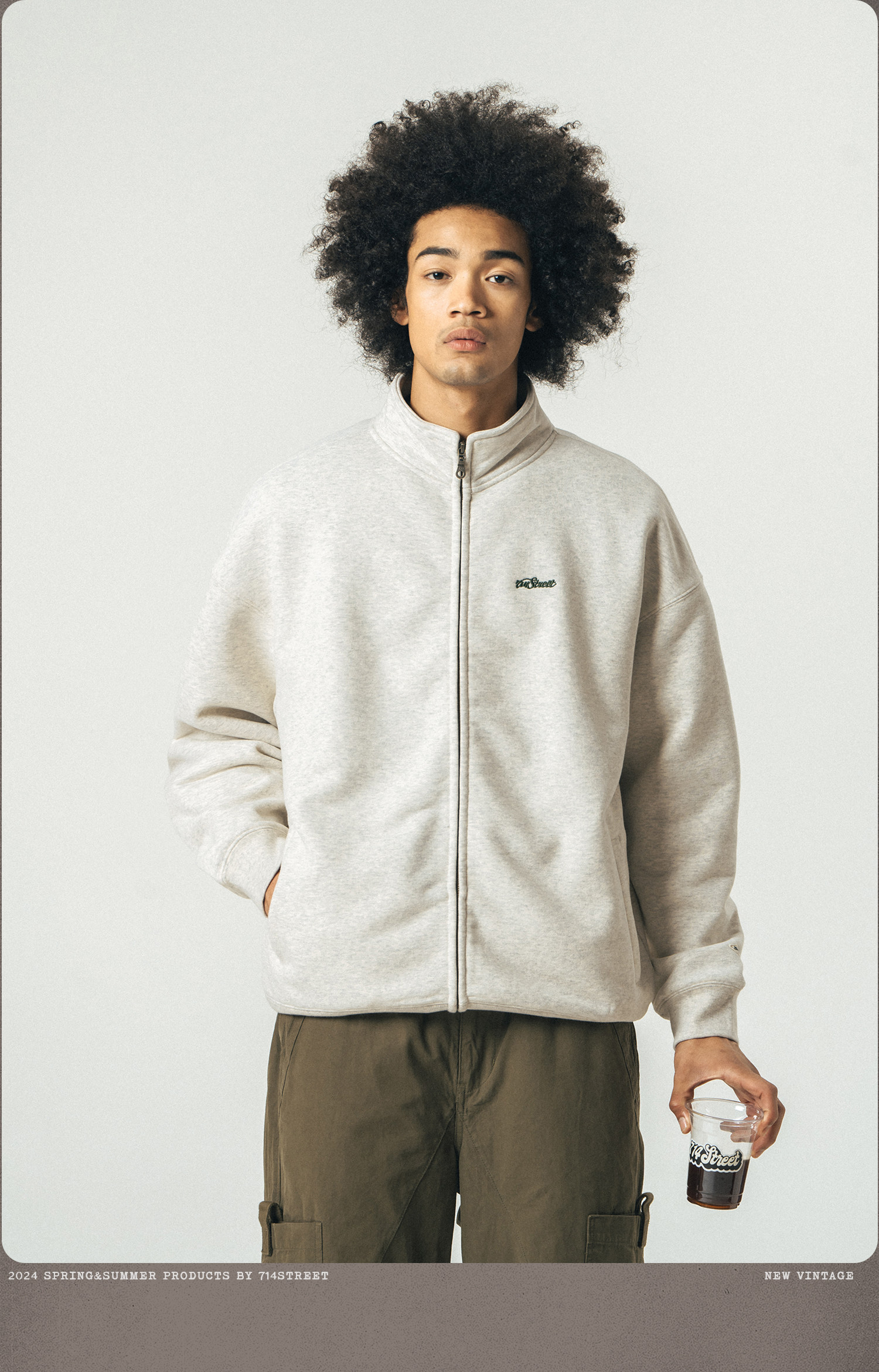 714street重磅美式加绒卫衣男女春秋款情侣立领夹克拉链开衫外套