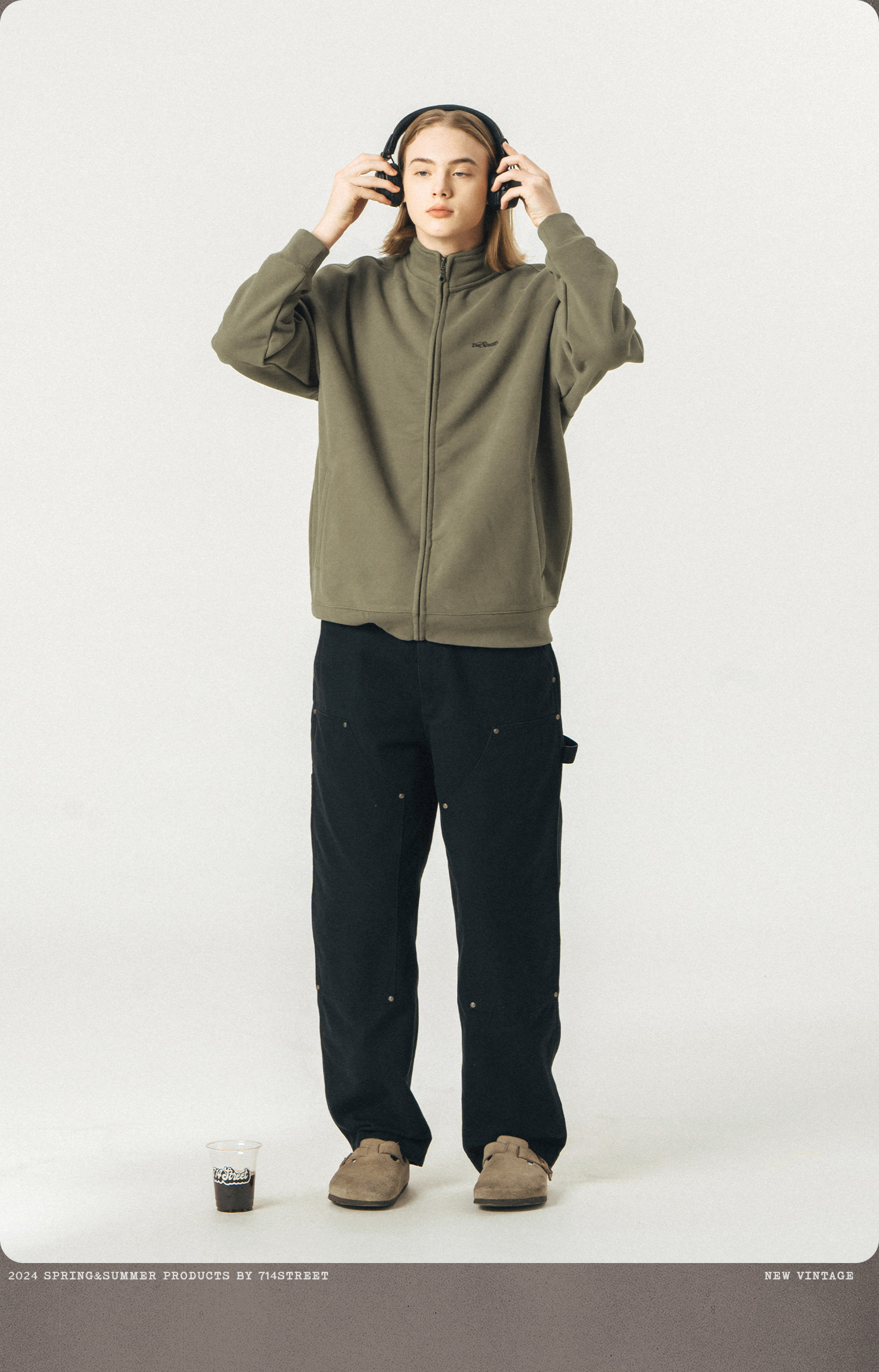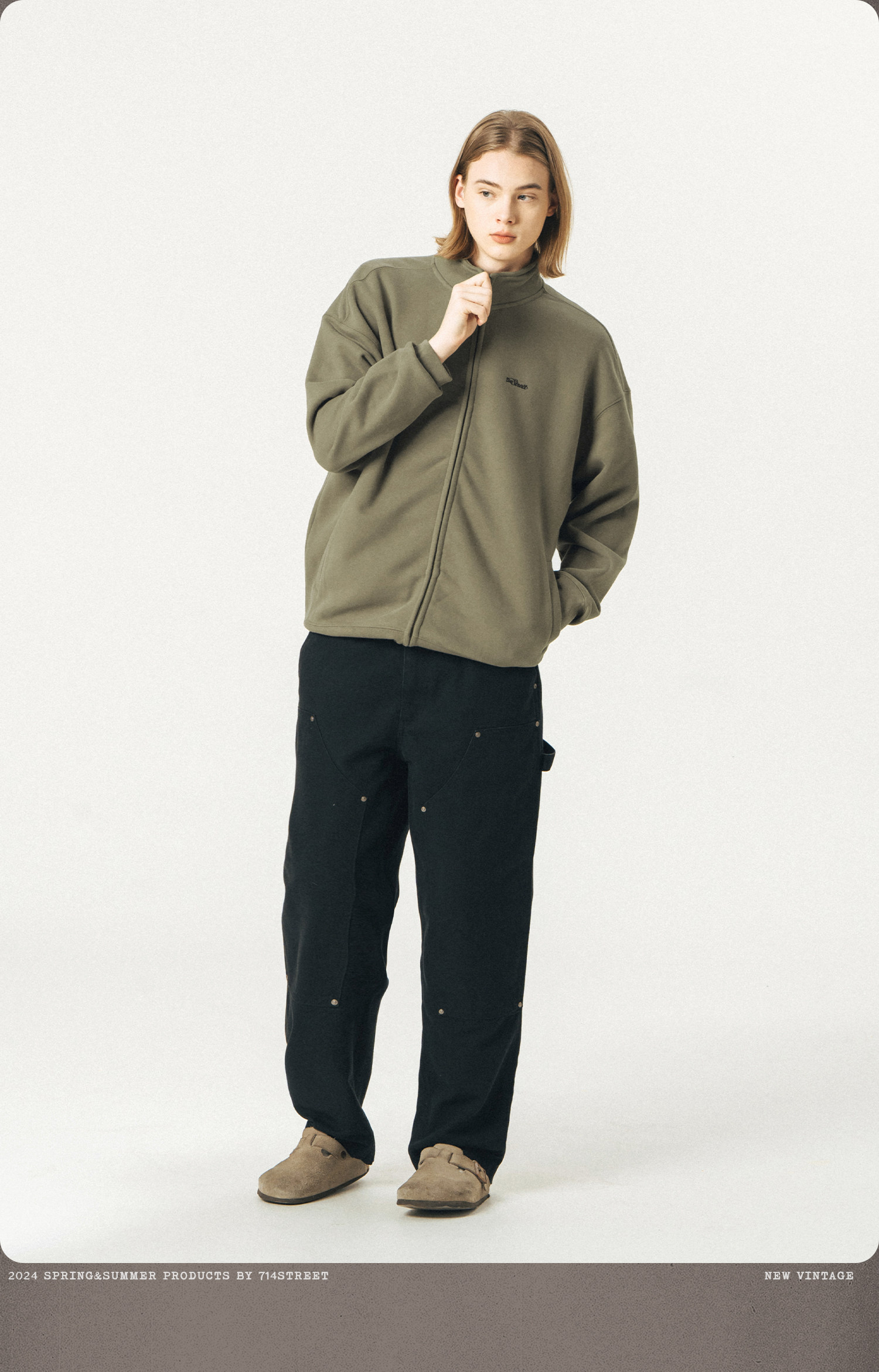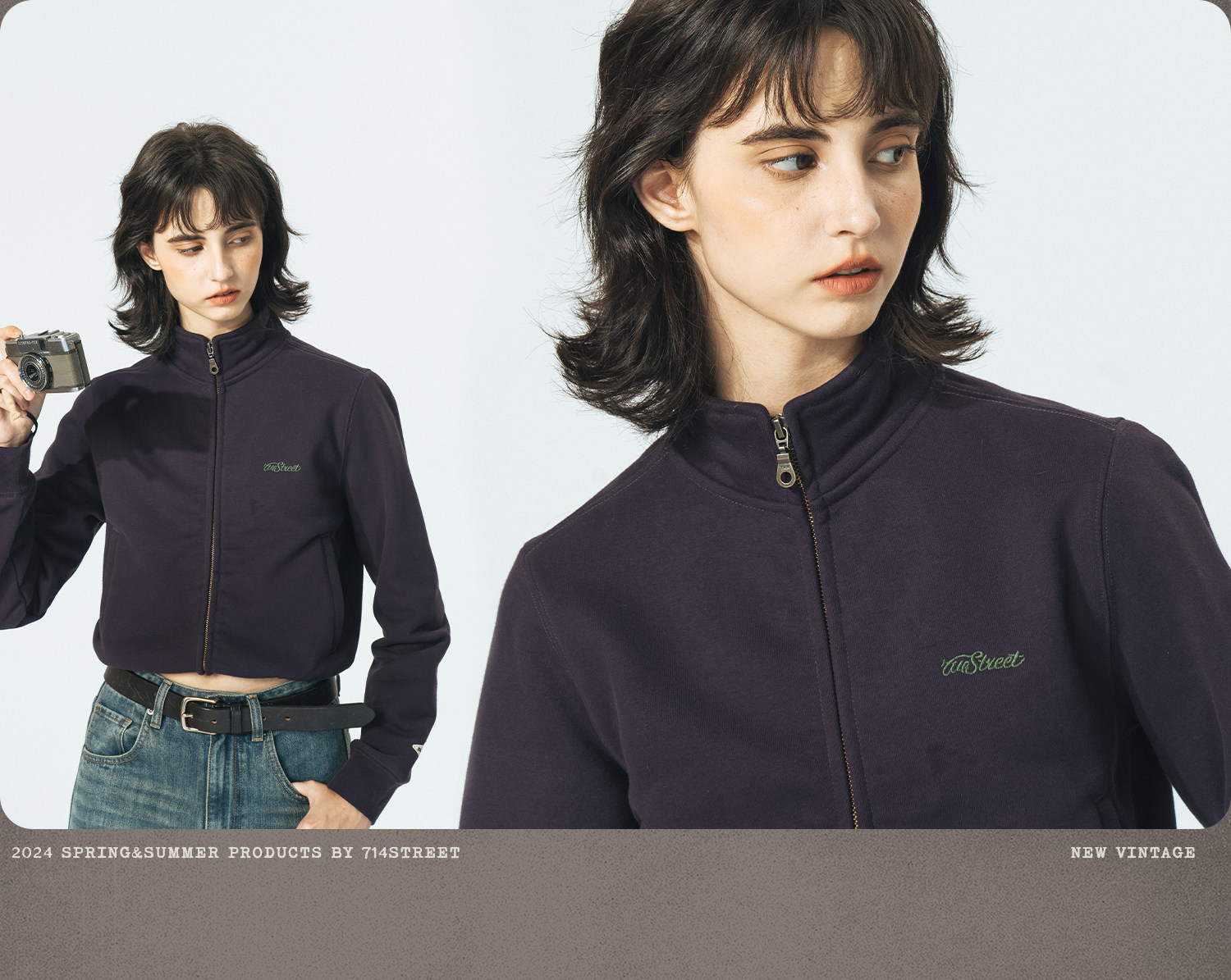 714street重磅美式加绒卫衣男女春秋款情侣立领夹克拉链开衫外套