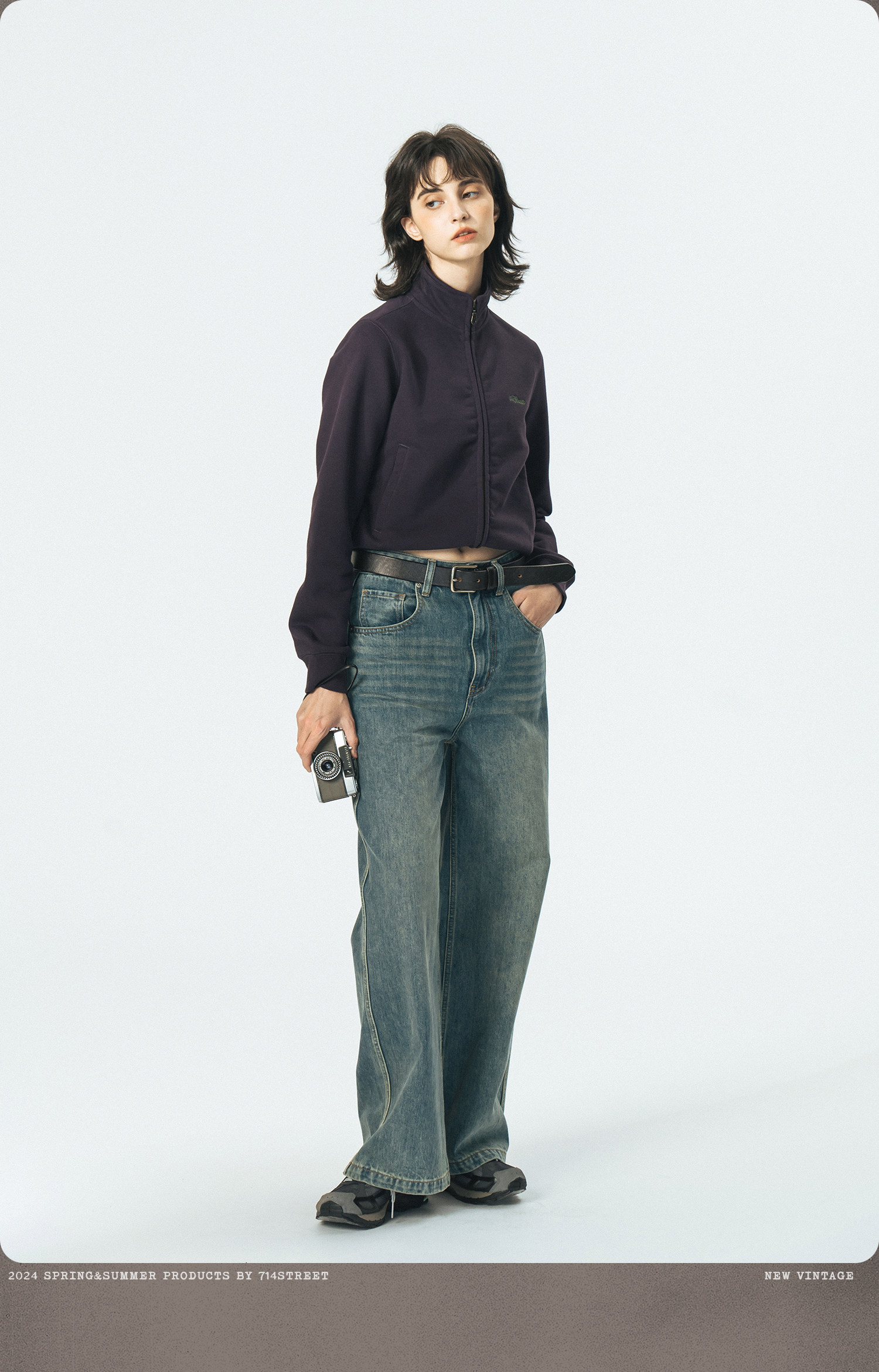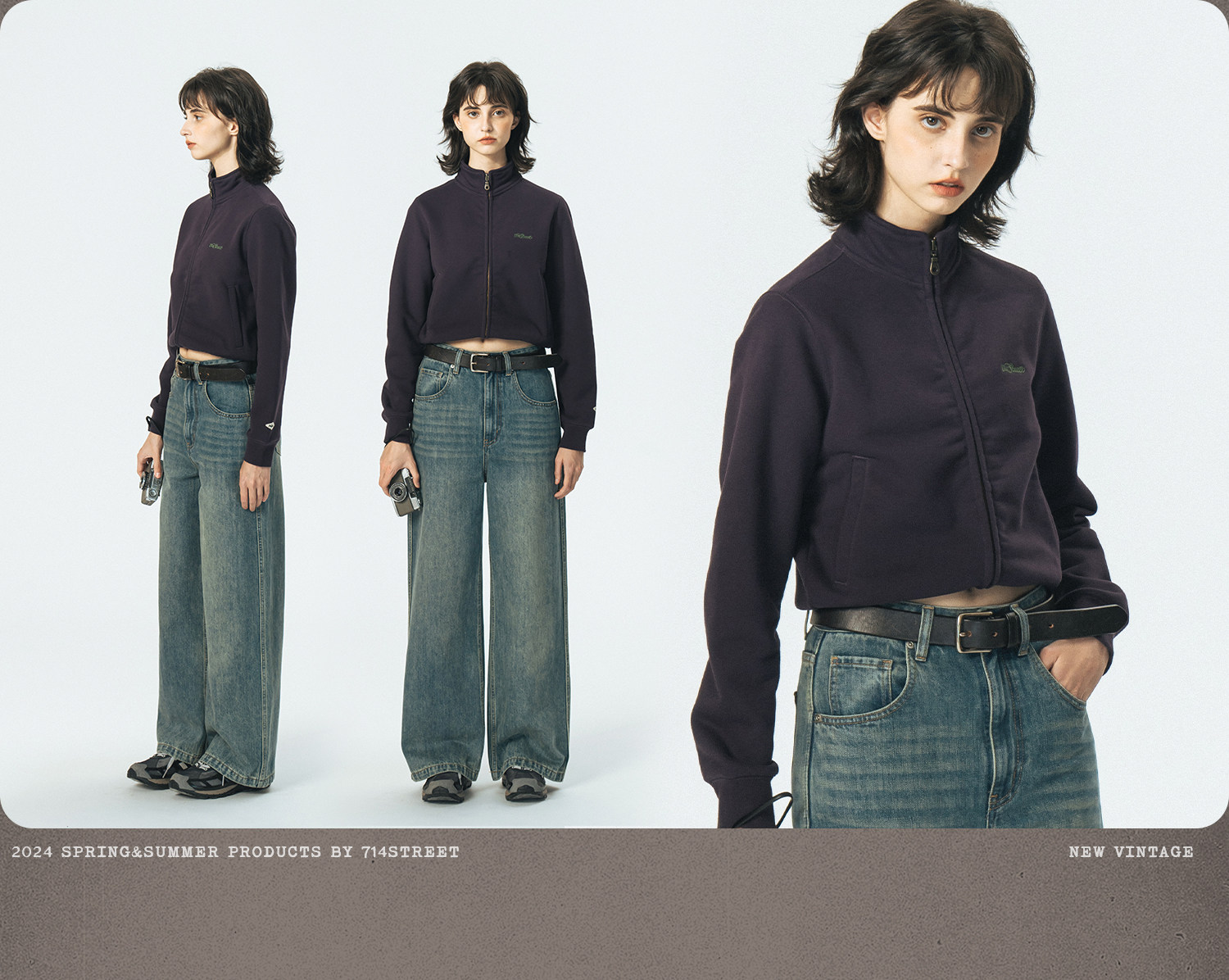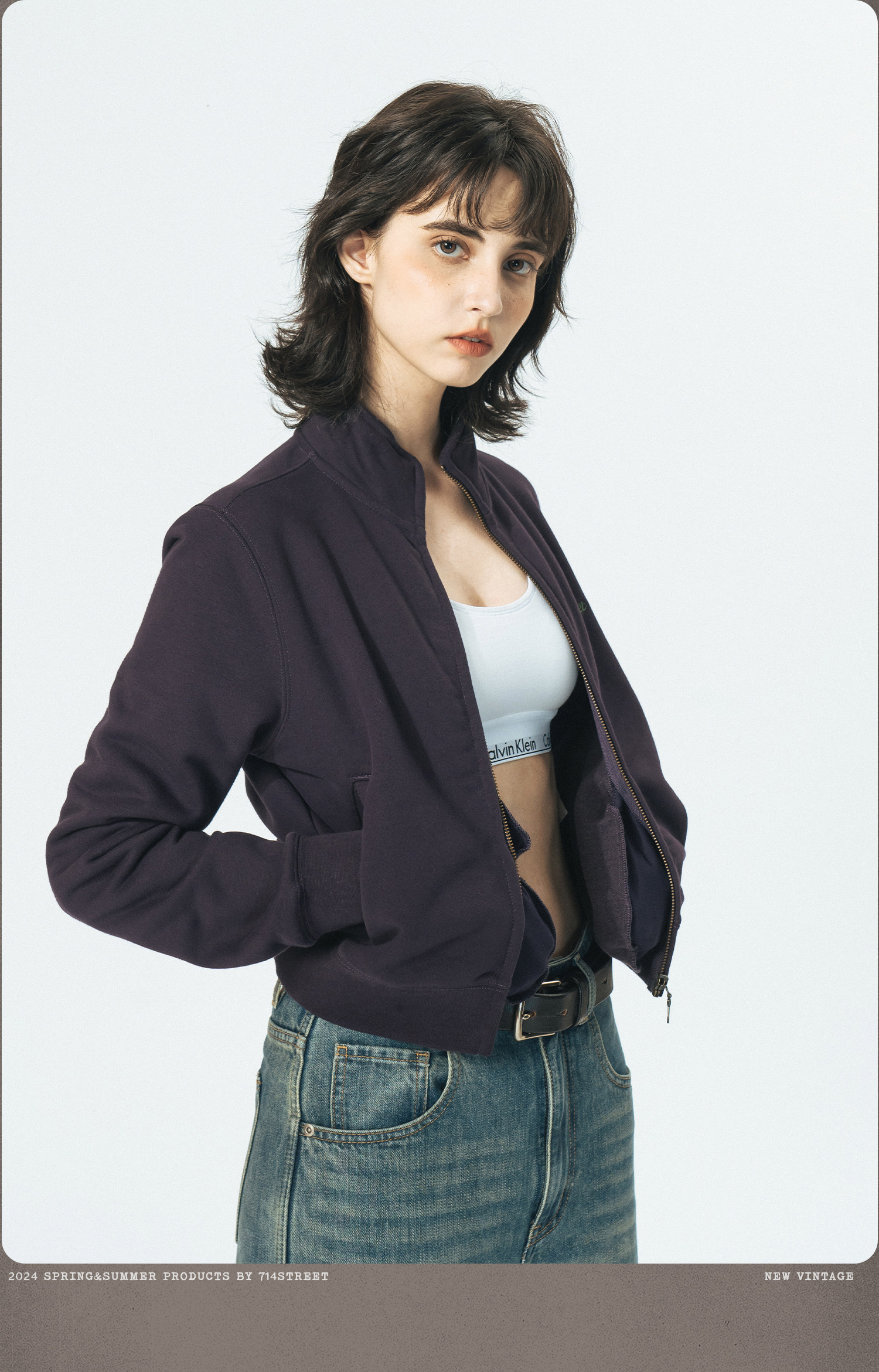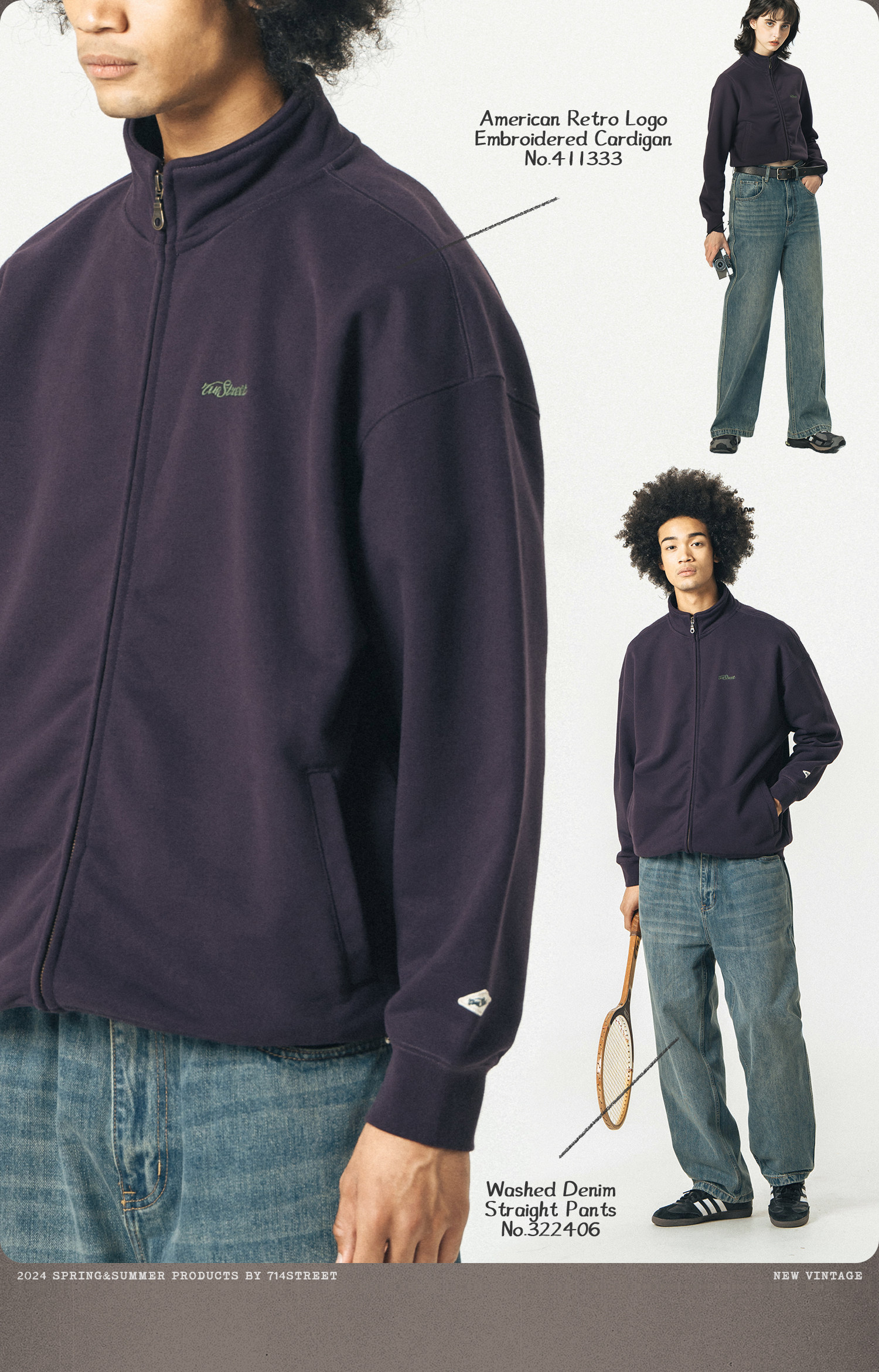714street重磅美式加绒卫衣男女春秋款情侣立领夹克拉链开衫外套