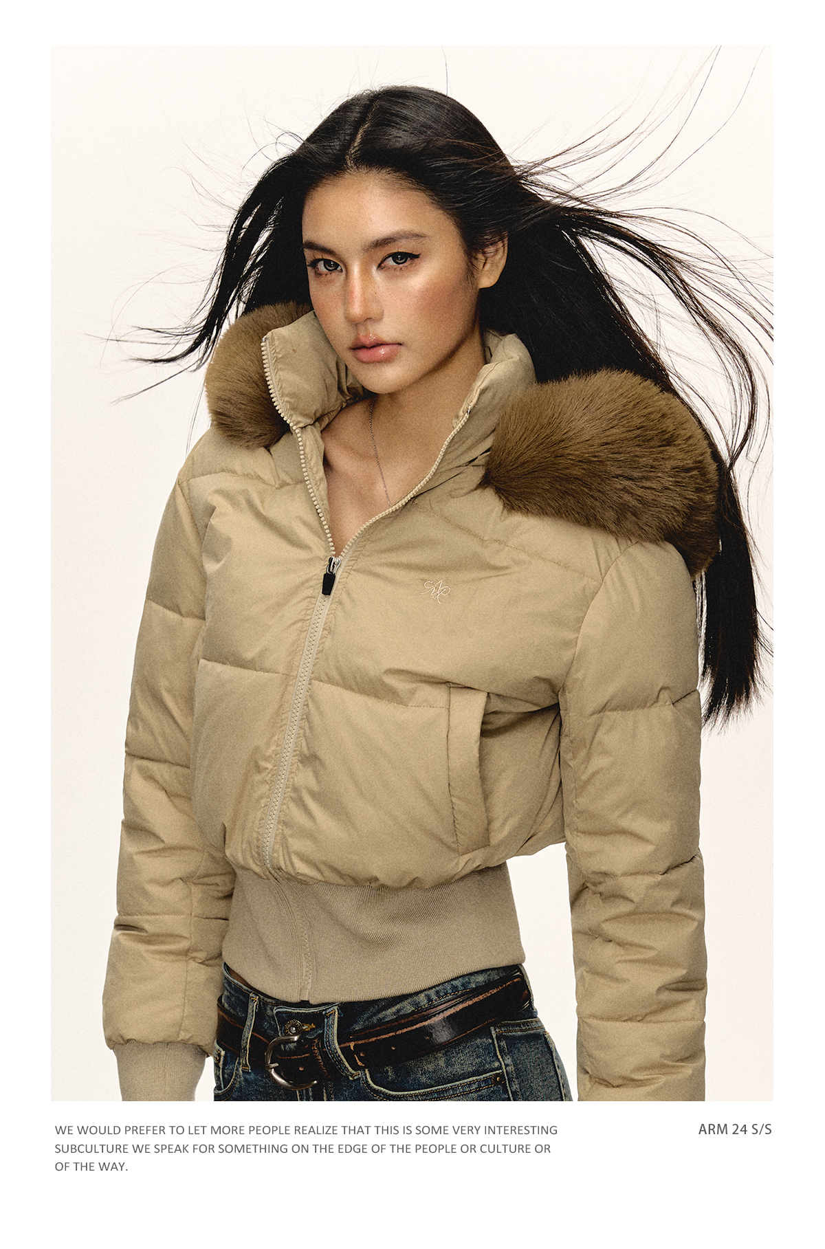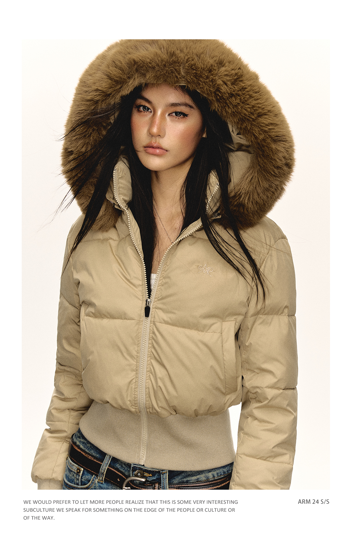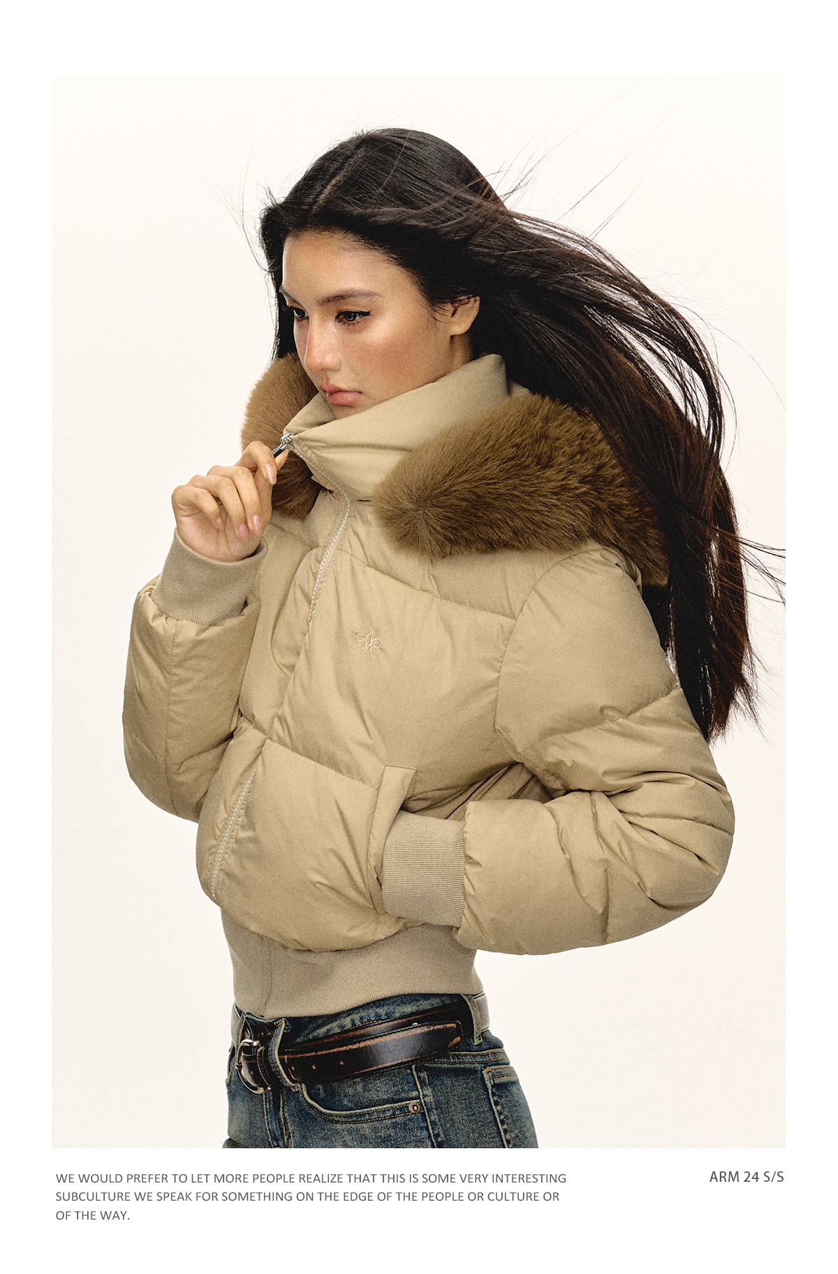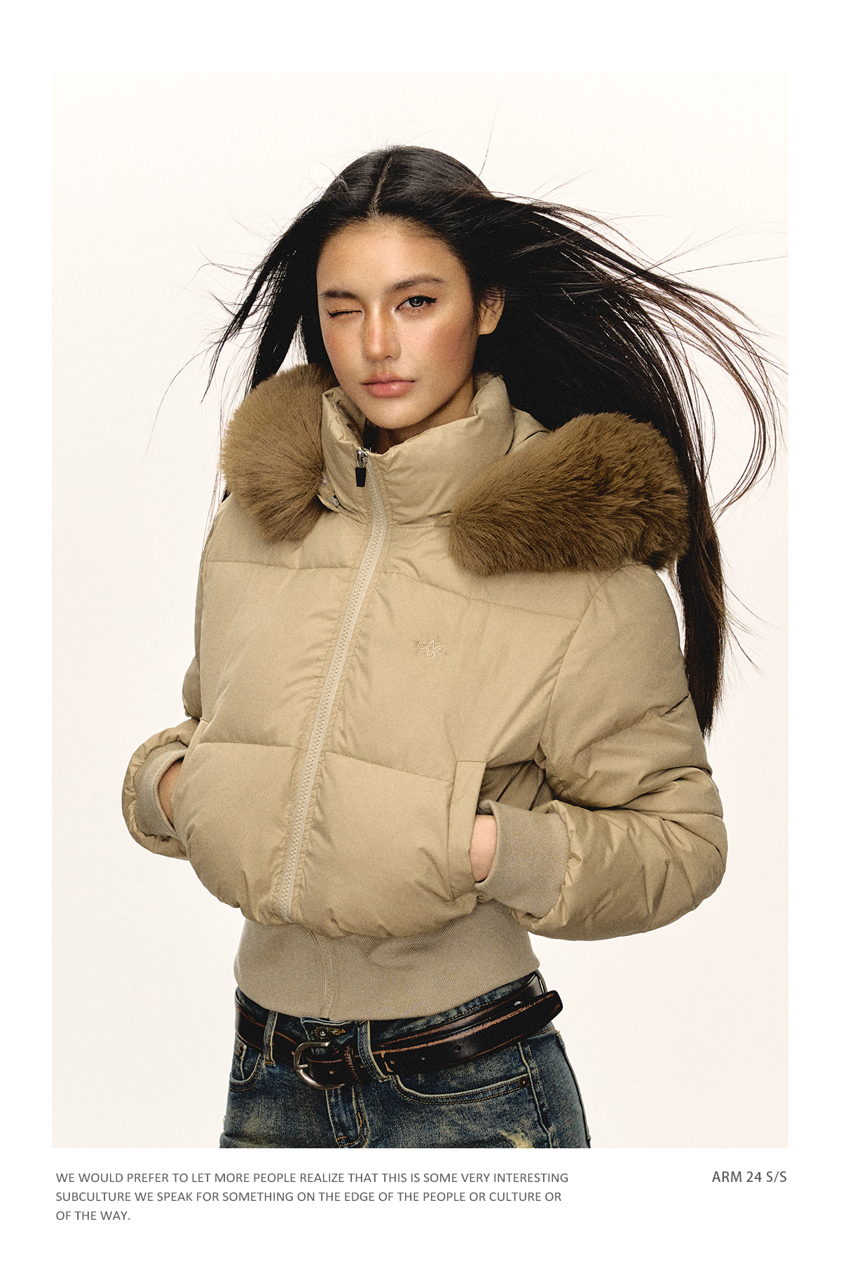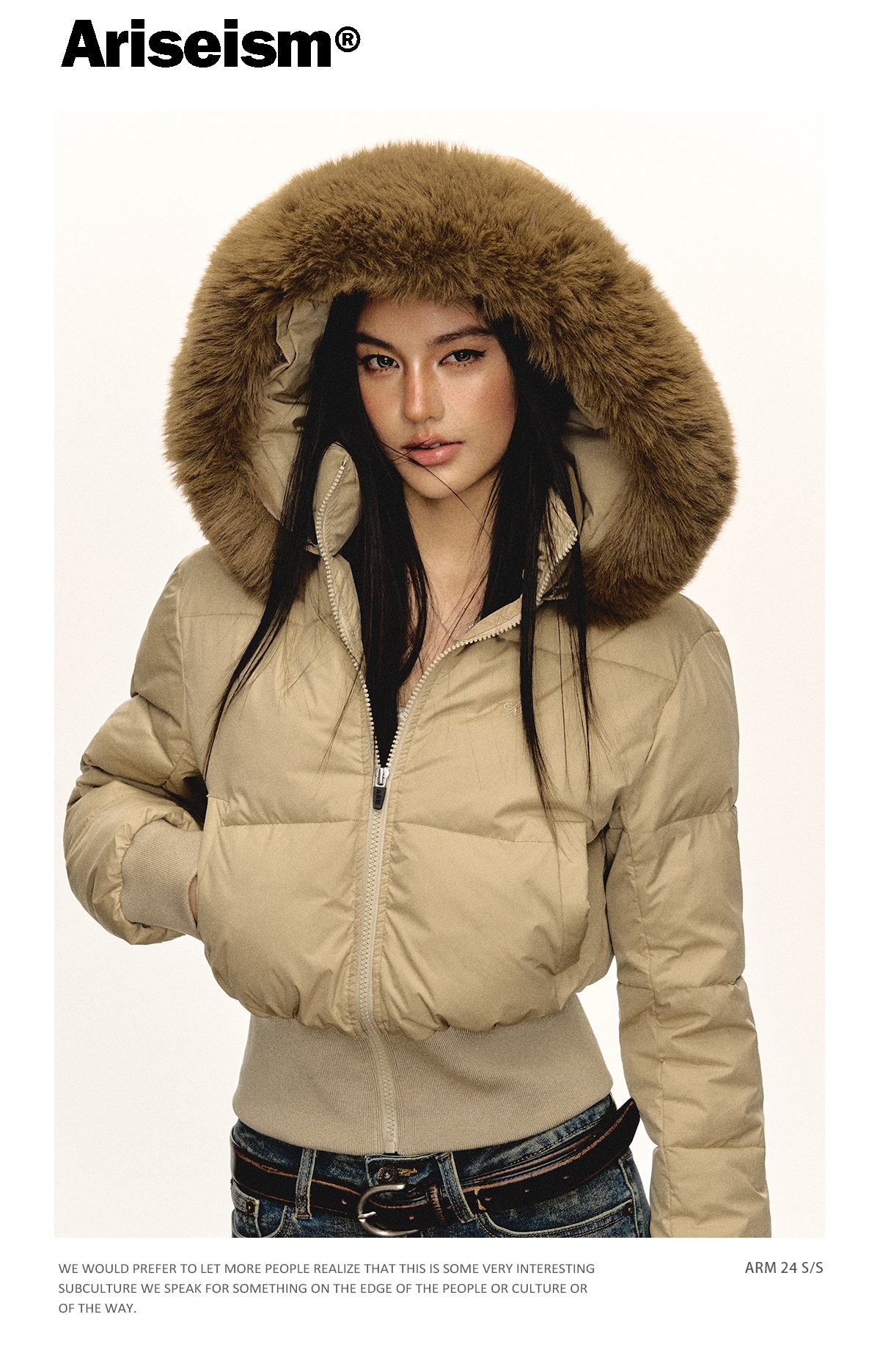 Ariseism 美式复古设计感可脱卸连帽棉服外套女冬季新款修身棉衣