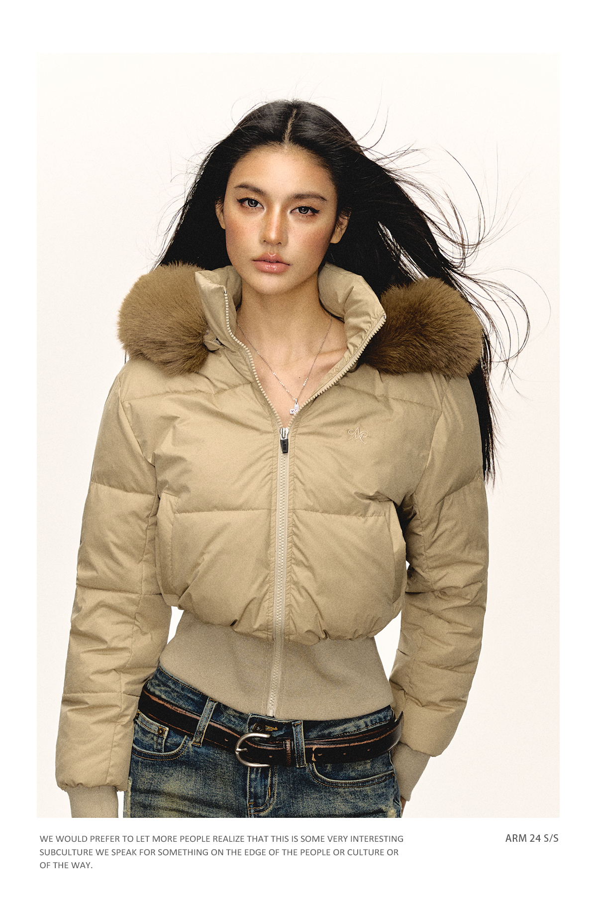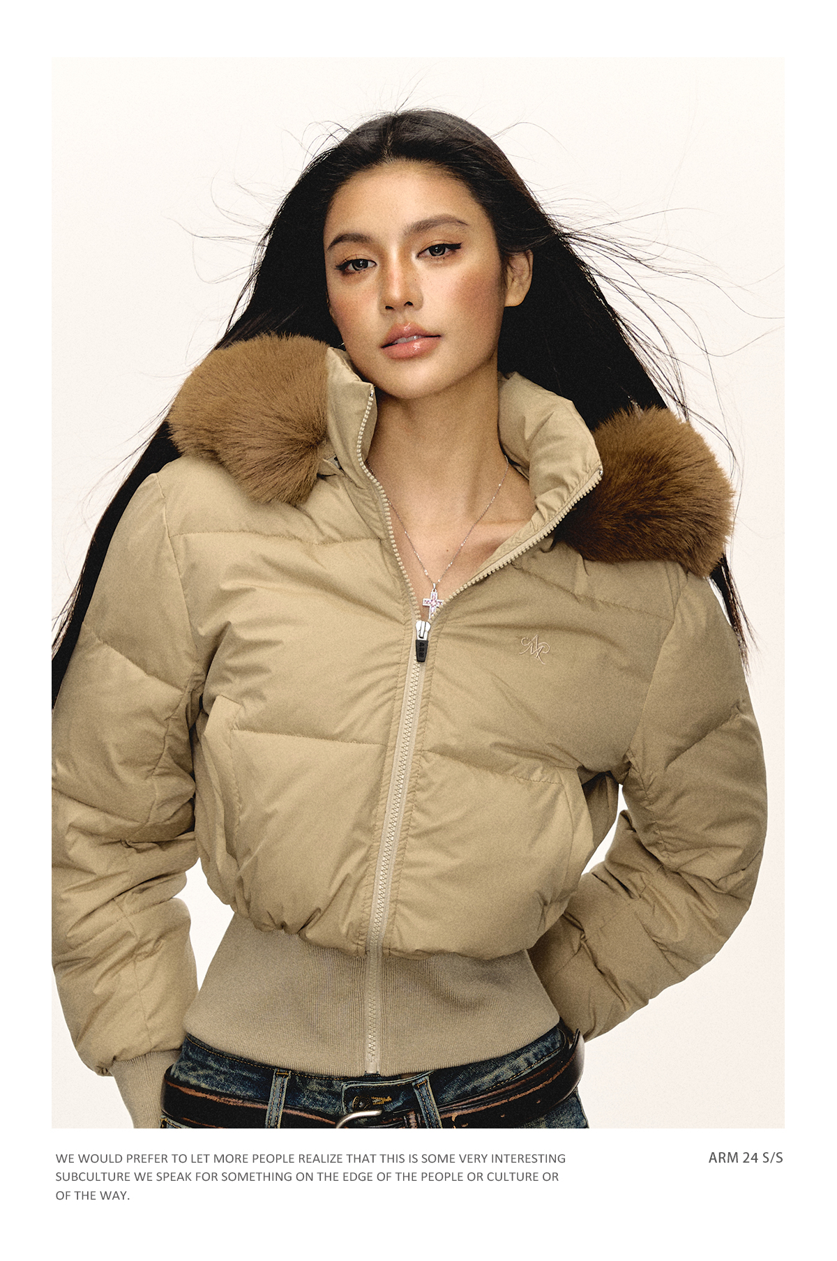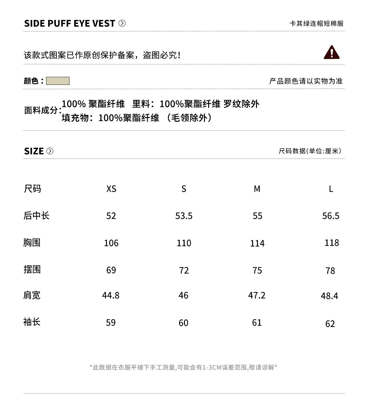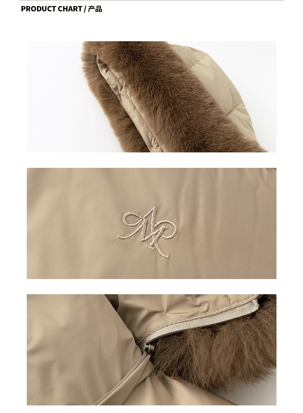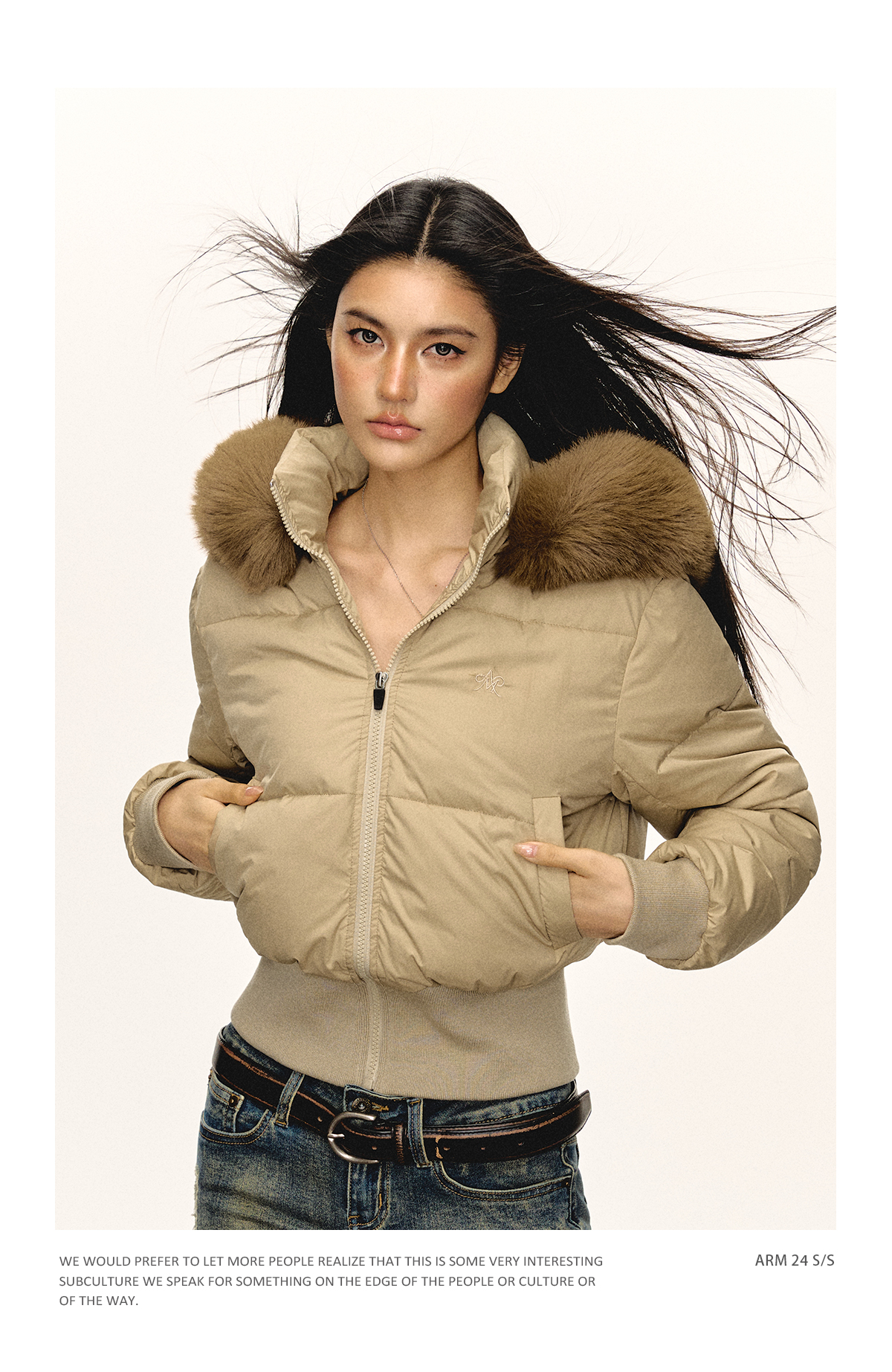 Ariseism 美式复古设计感可脱卸连帽棉服外套女冬季新款修身棉衣