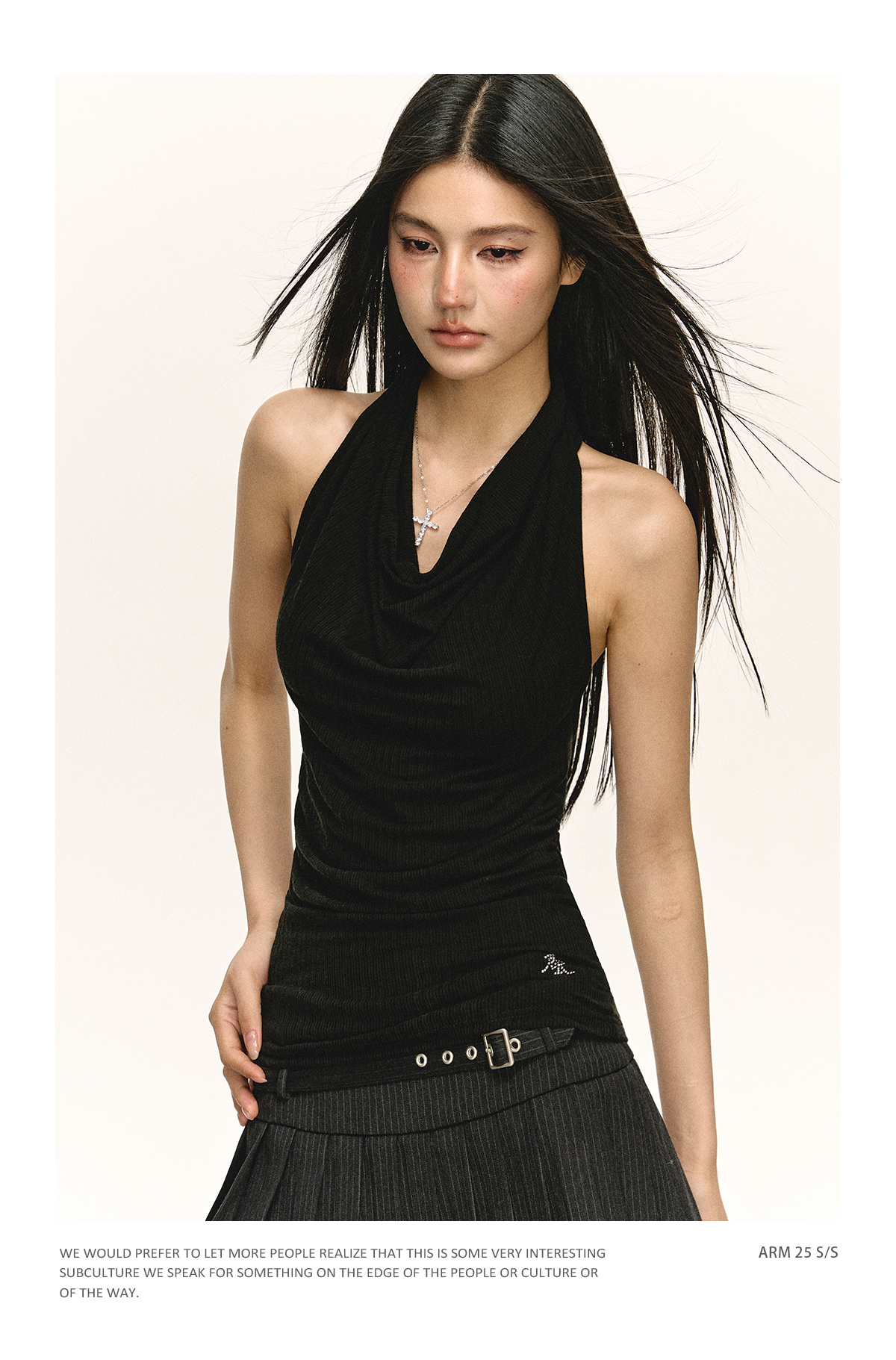 Ariseism 美式复古辣妹修身设计感挂脖背心女夏季新款显瘦上衣