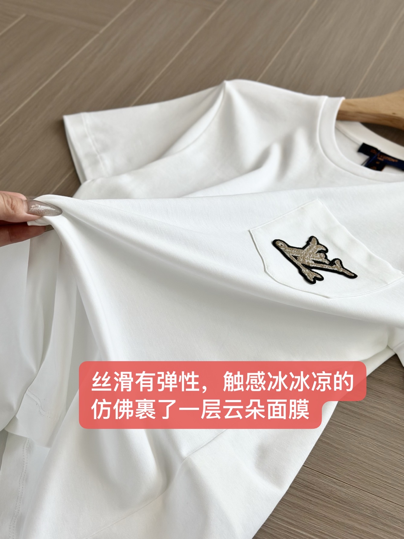 最大的特点就在于它的透气性和舒适度 220gsm 50支双纱平纹布 仿佛是一件会呼吸的棉tee! 液氨处理后手感更加更轻盈! 有弹性!自带凉感! 巨巨巨舒服!!