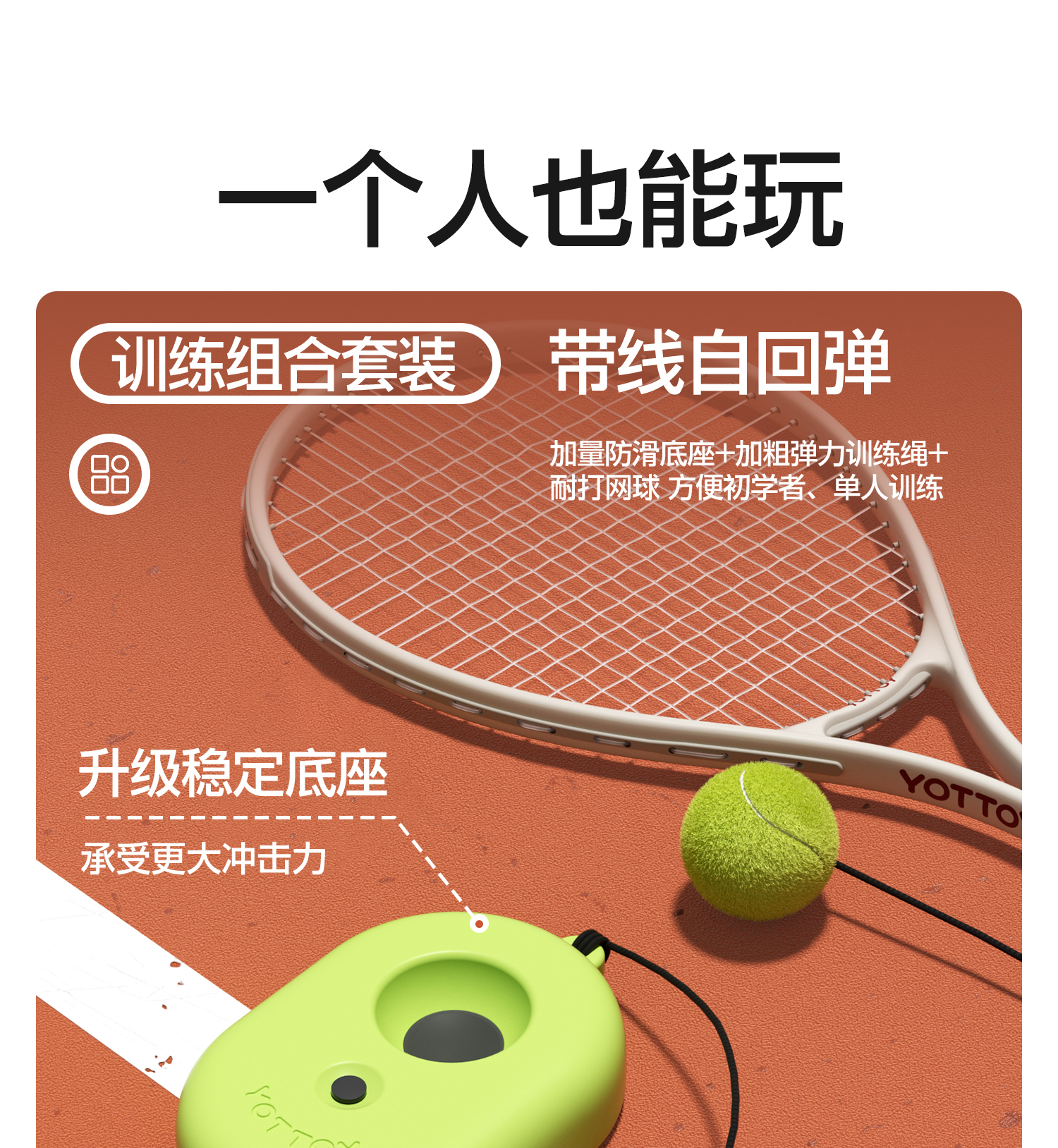 网球训练器单人打带线回弹自练神器初学者一个人的网球拍套装入门