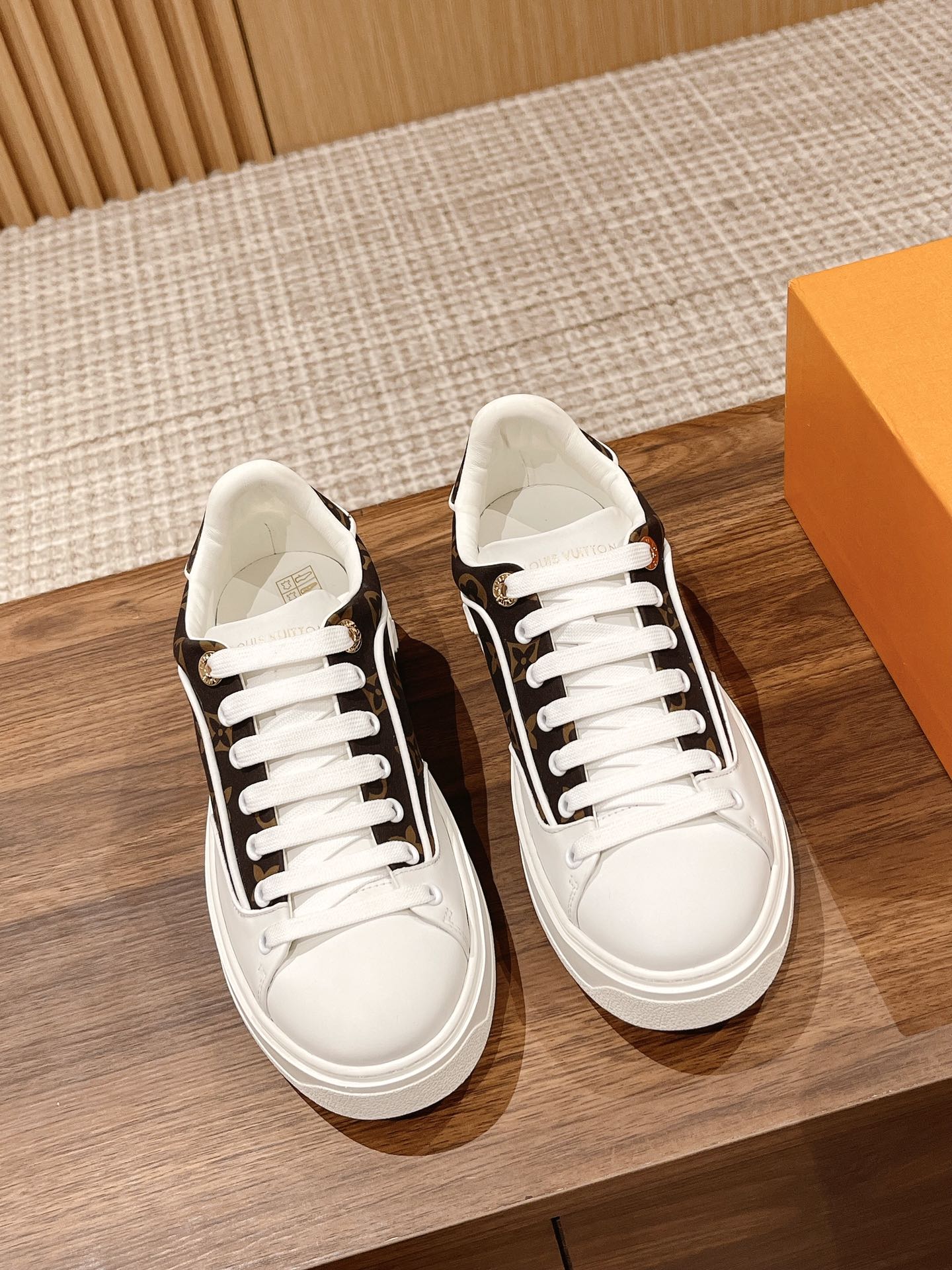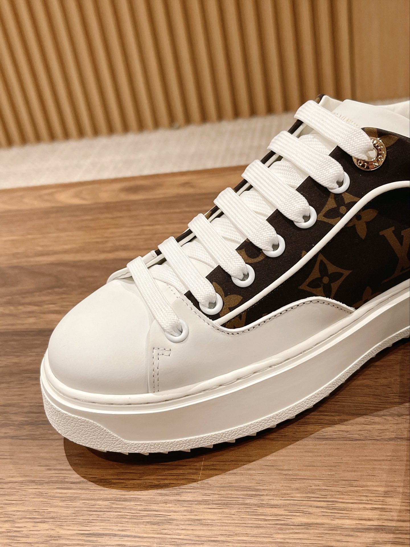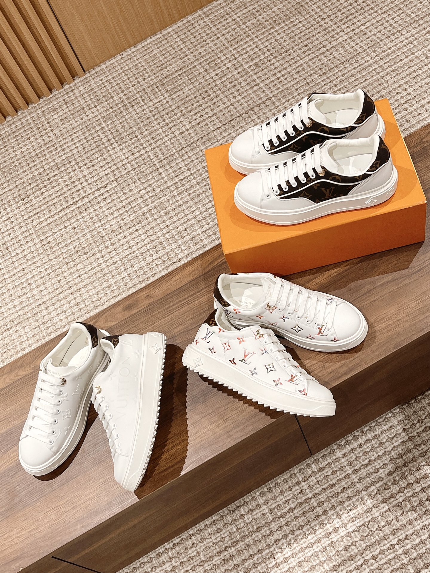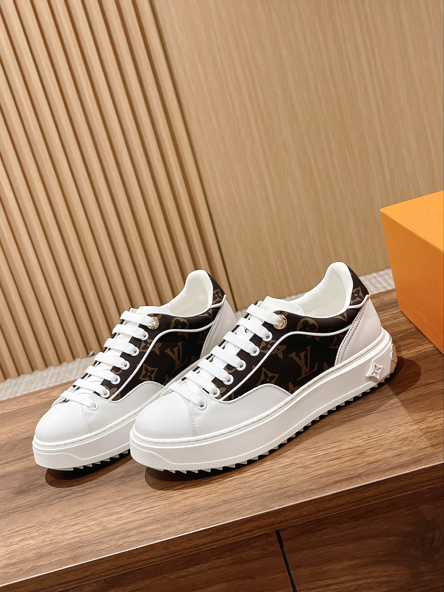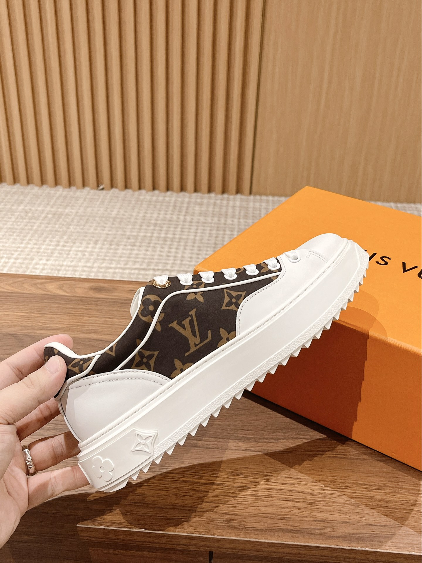 #限女款 【Louis Vuitton】经典厚底小白鞋 time out系列最新款 这是一款时尚减龄 又增高的运动鞋 侧身彩色logo字母 洋溢青春活力 上脚实在太好看了 超显腿长 鞋面原版一致牛皮 鞋身字母3D压花工艺 垫脚水染牛皮 耐穿耐磨 大底开模TPU 质感无敌 细节无可挑剔 闭眼入
