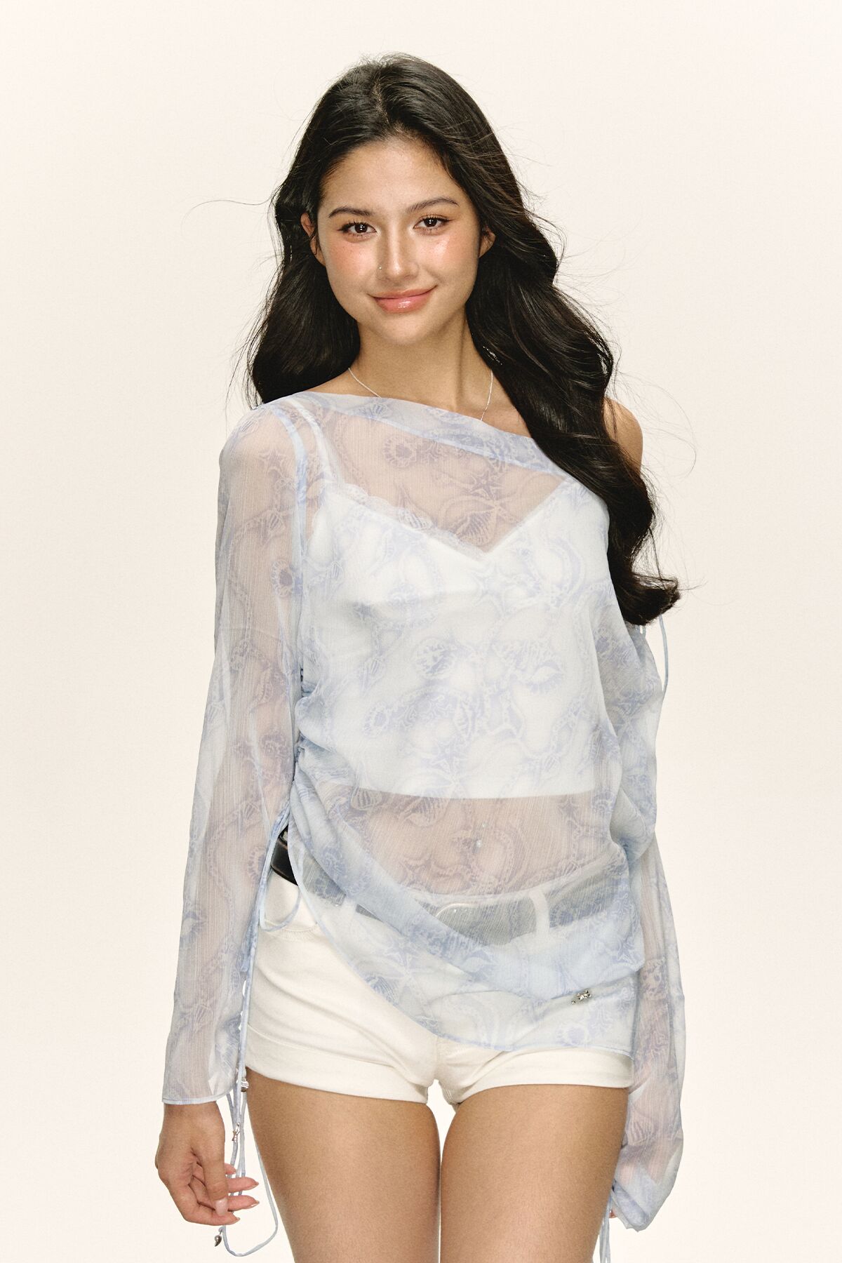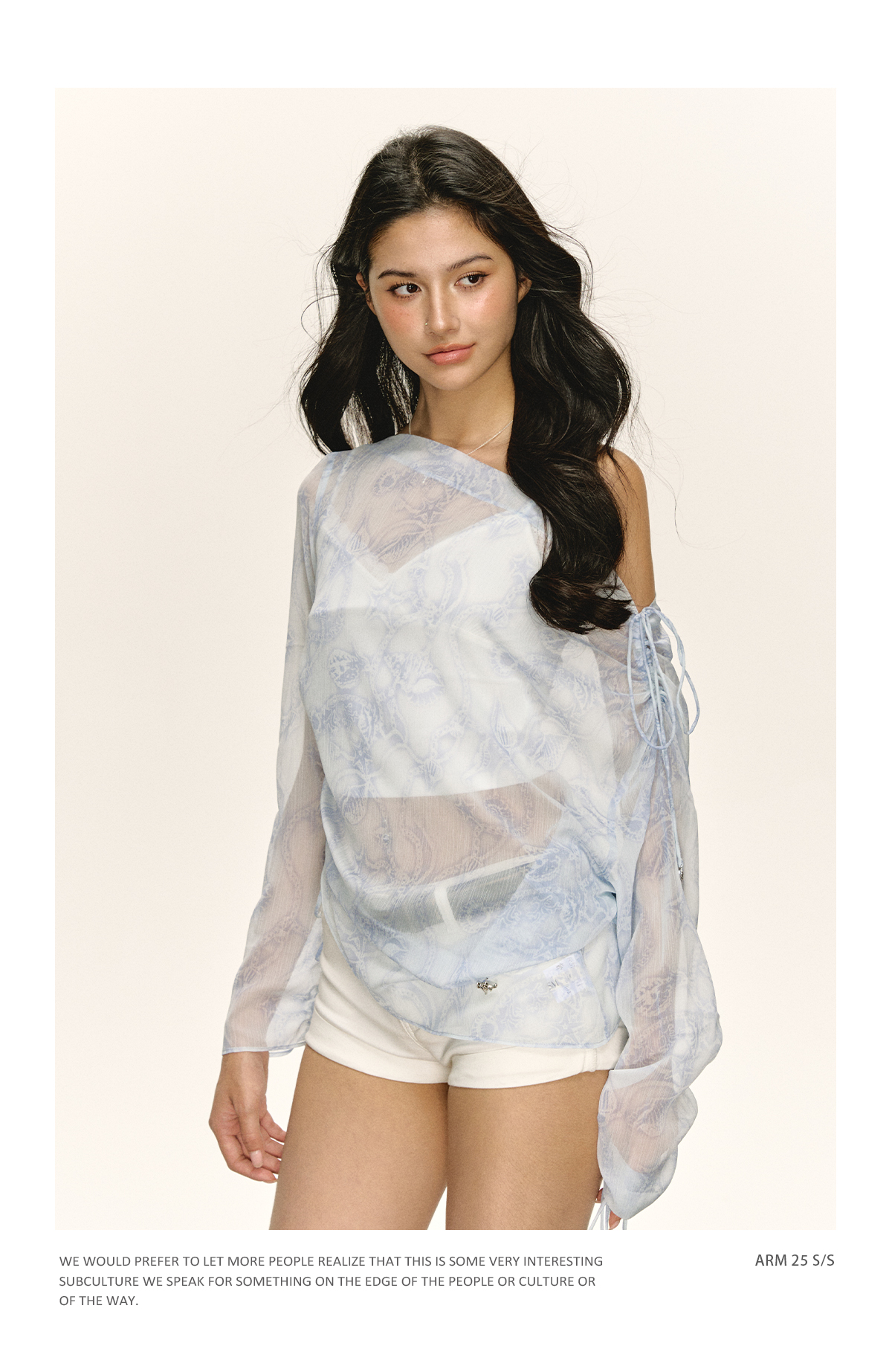 Ariseism 美式复古设计感宽松斜肩罩衫长袖t恤女秋季新款修身上衣