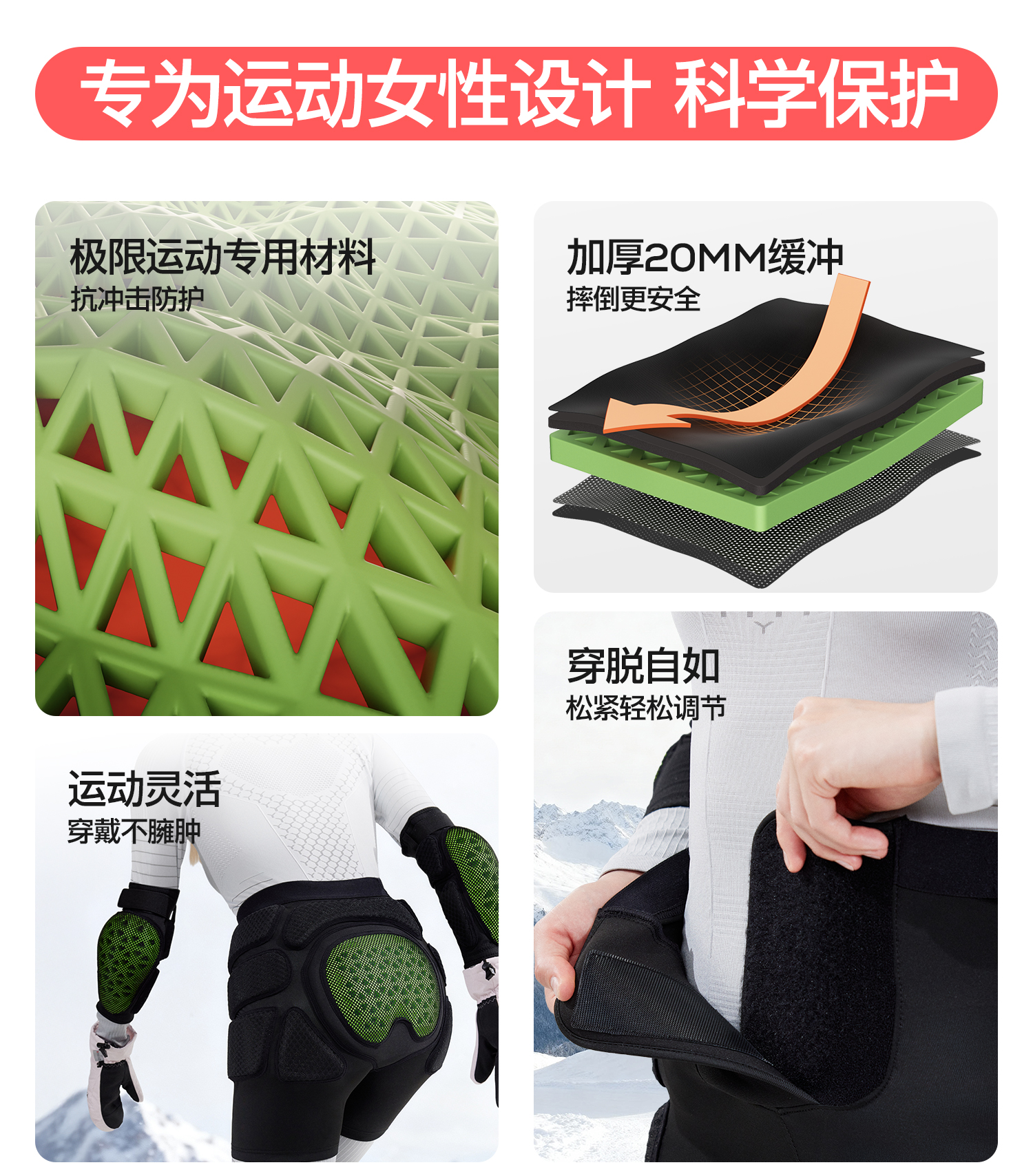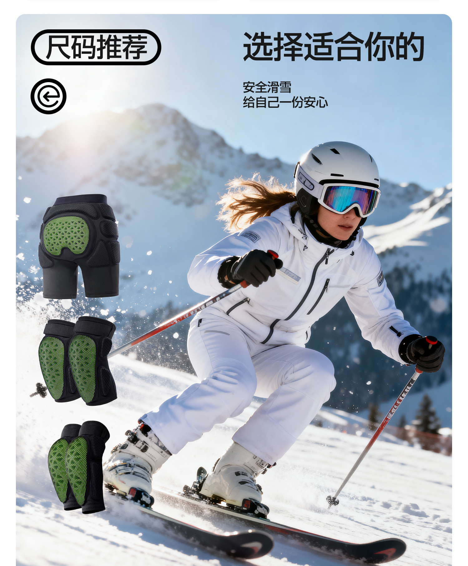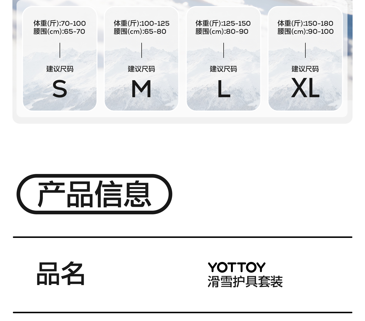 YOTTOY滑雪护具护臀护膝护肘内穿内护装备女防摔伤屁垫成人套装冬