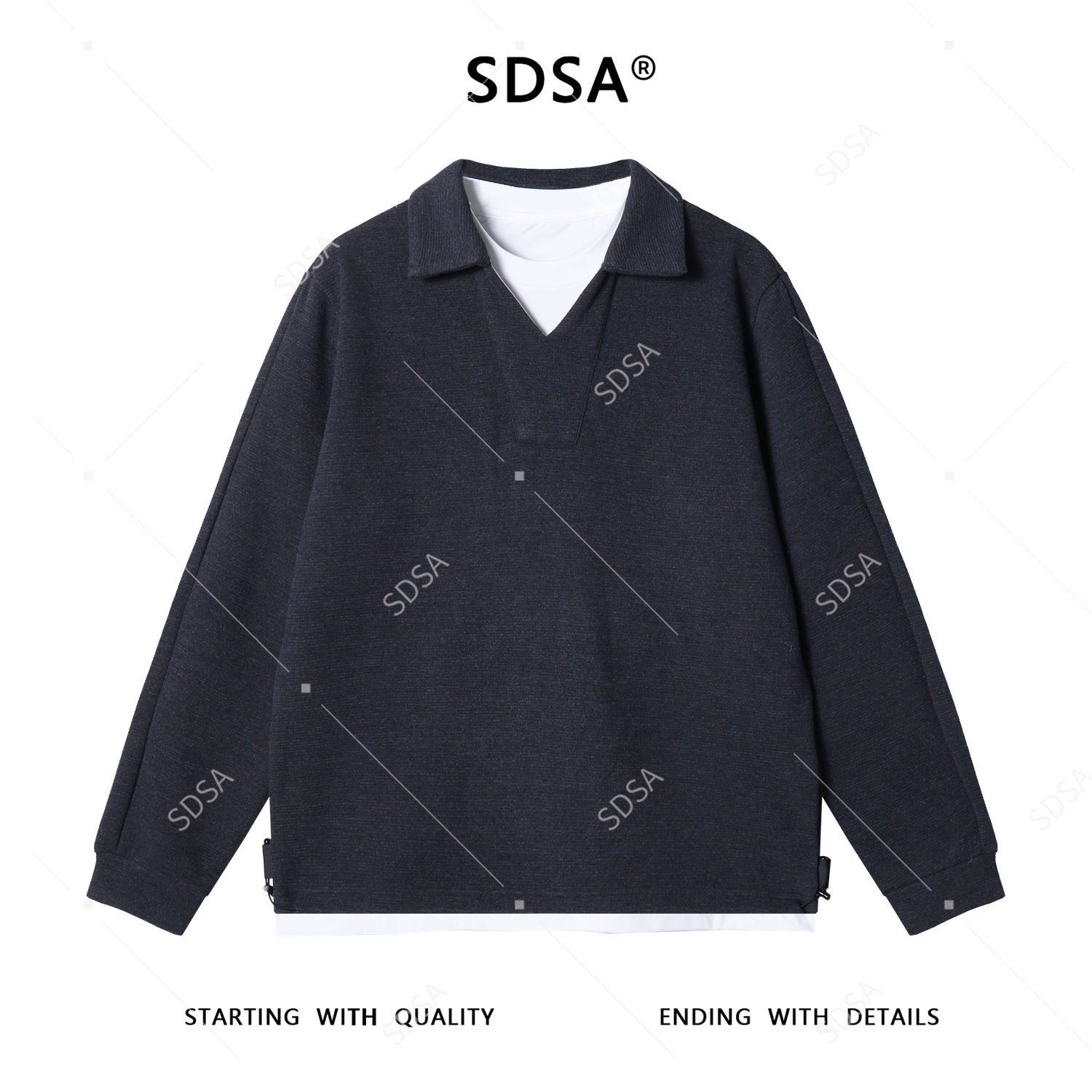 35698SDSA男士秋冬新款痞帅男装潮牌拼接翻领假两件卫衣百搭时尚上衣