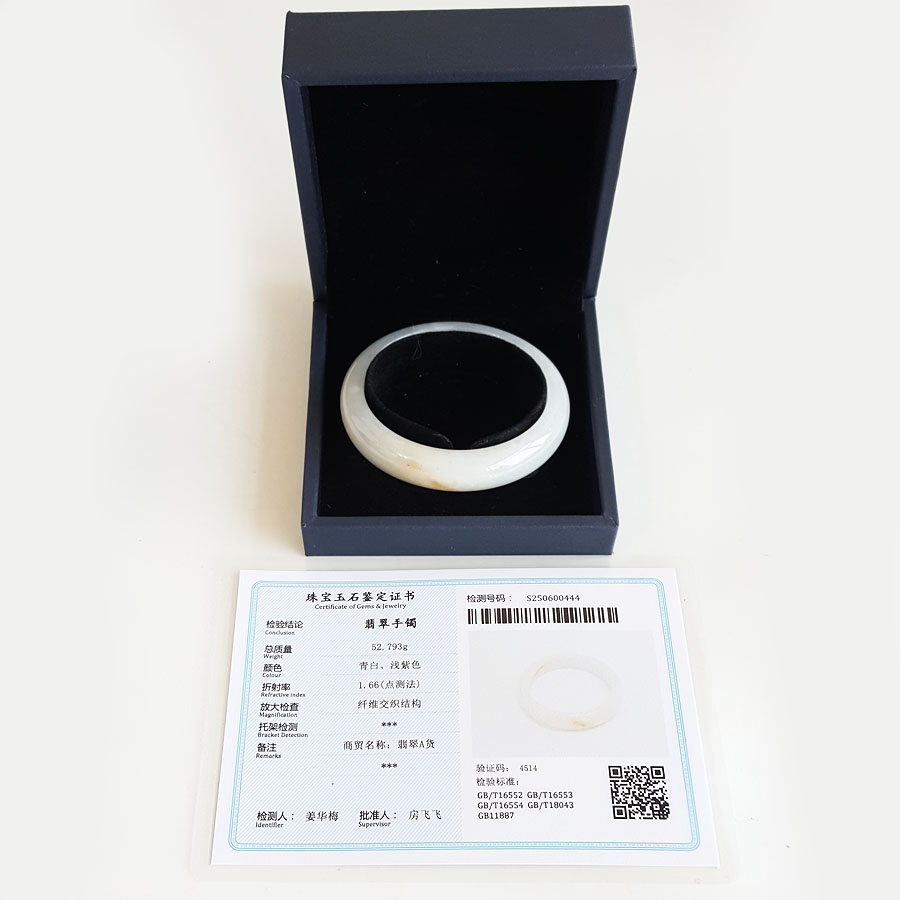 名称 | 天然细腻正桩糯种浅紫飘黄55号翡翠手镯 |