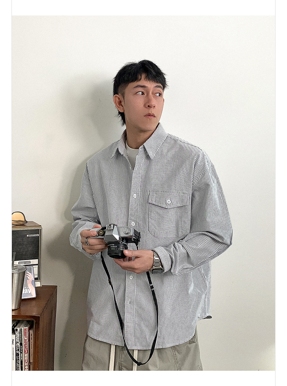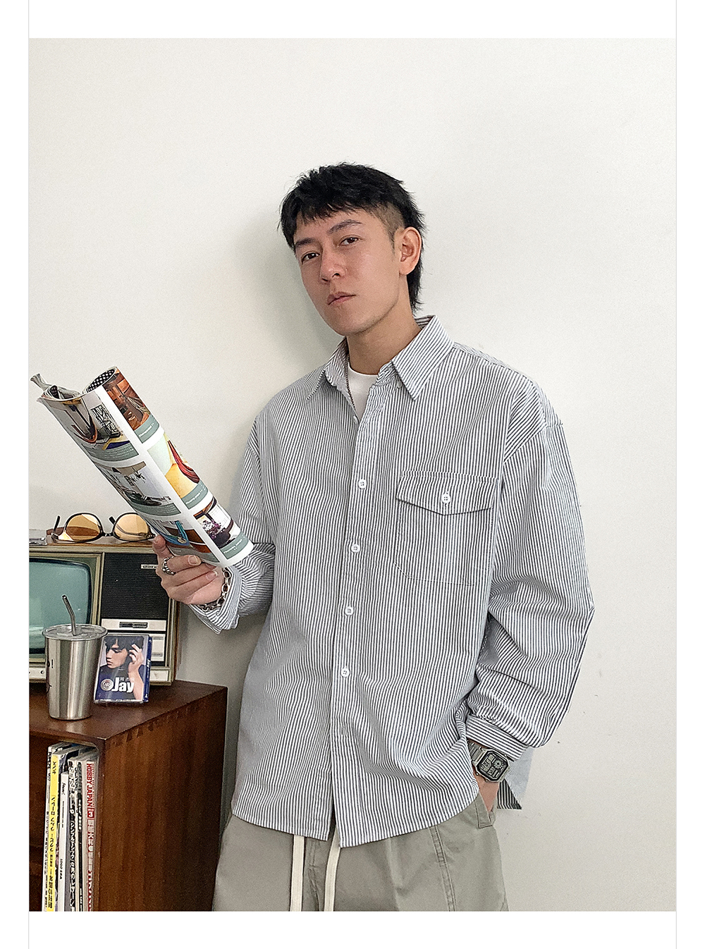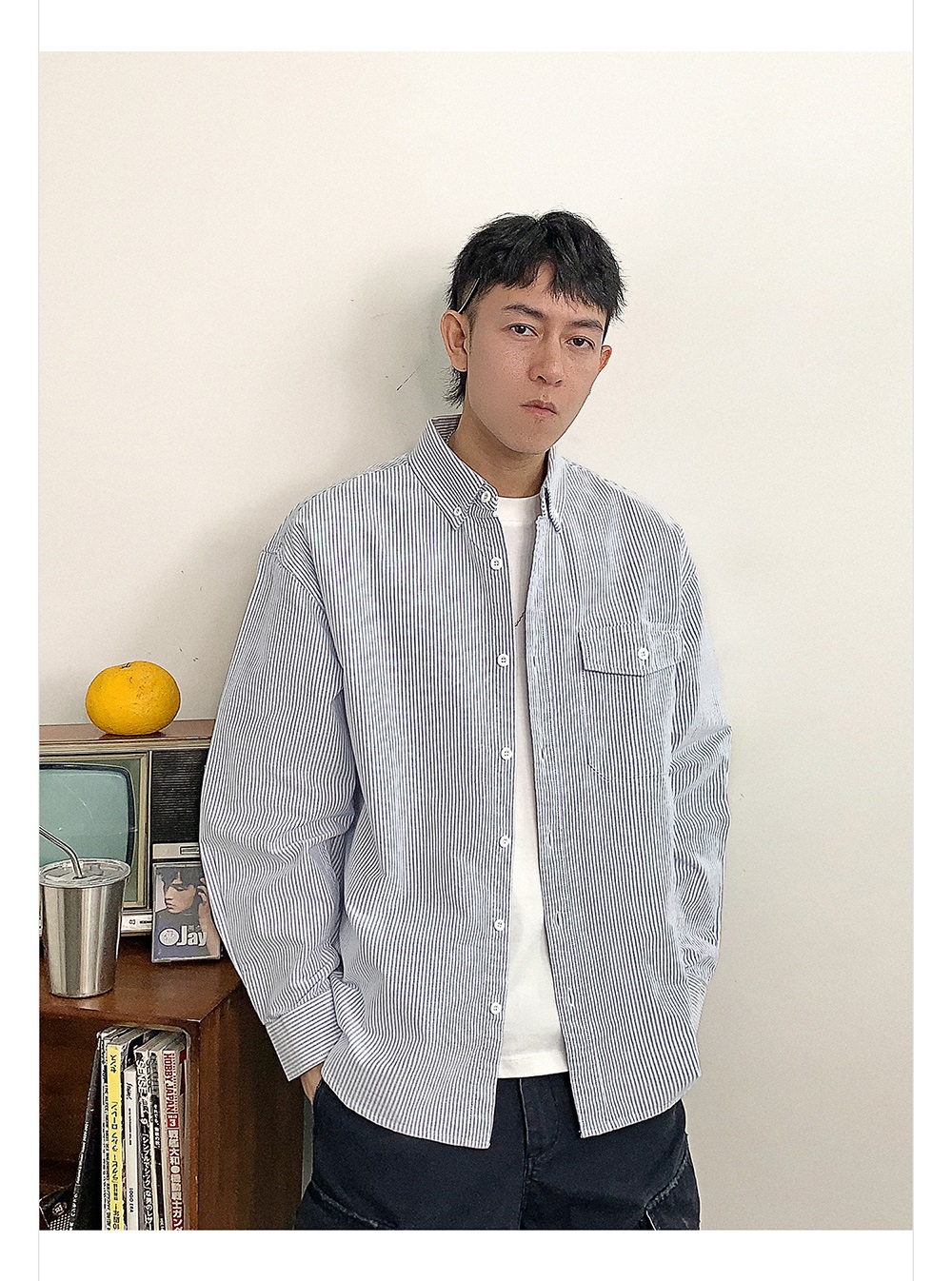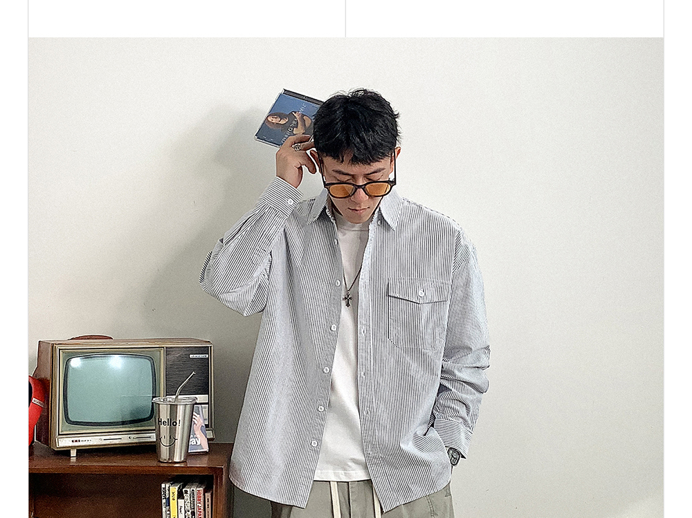 徐太浪高级感条纹长袖衬衫男2025新款春季潮牌男装休闲寸衫外套潮
