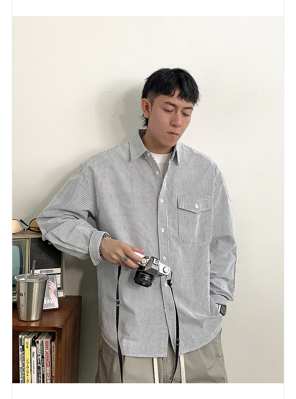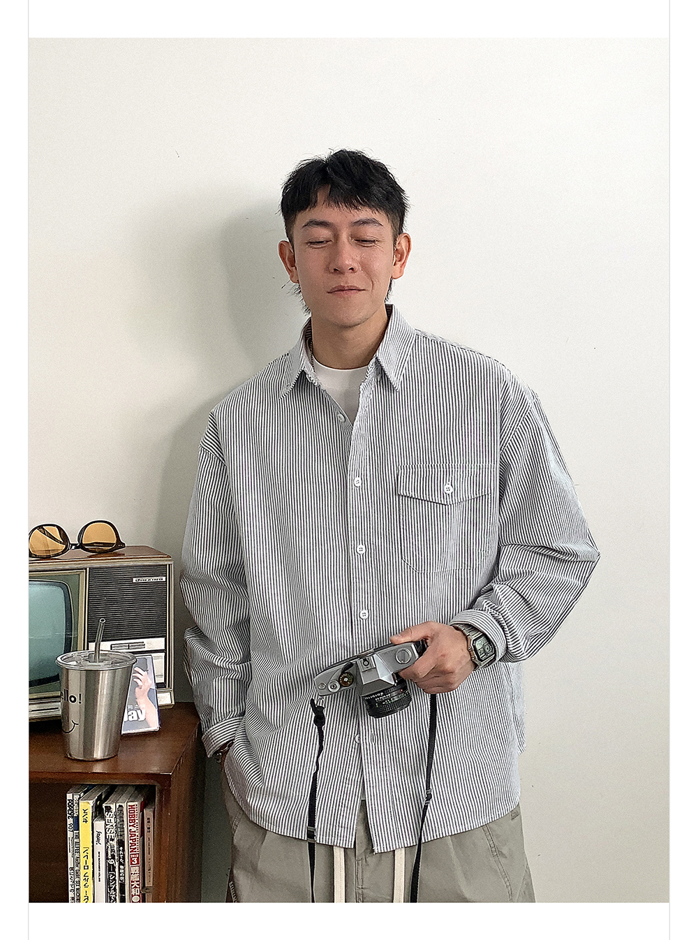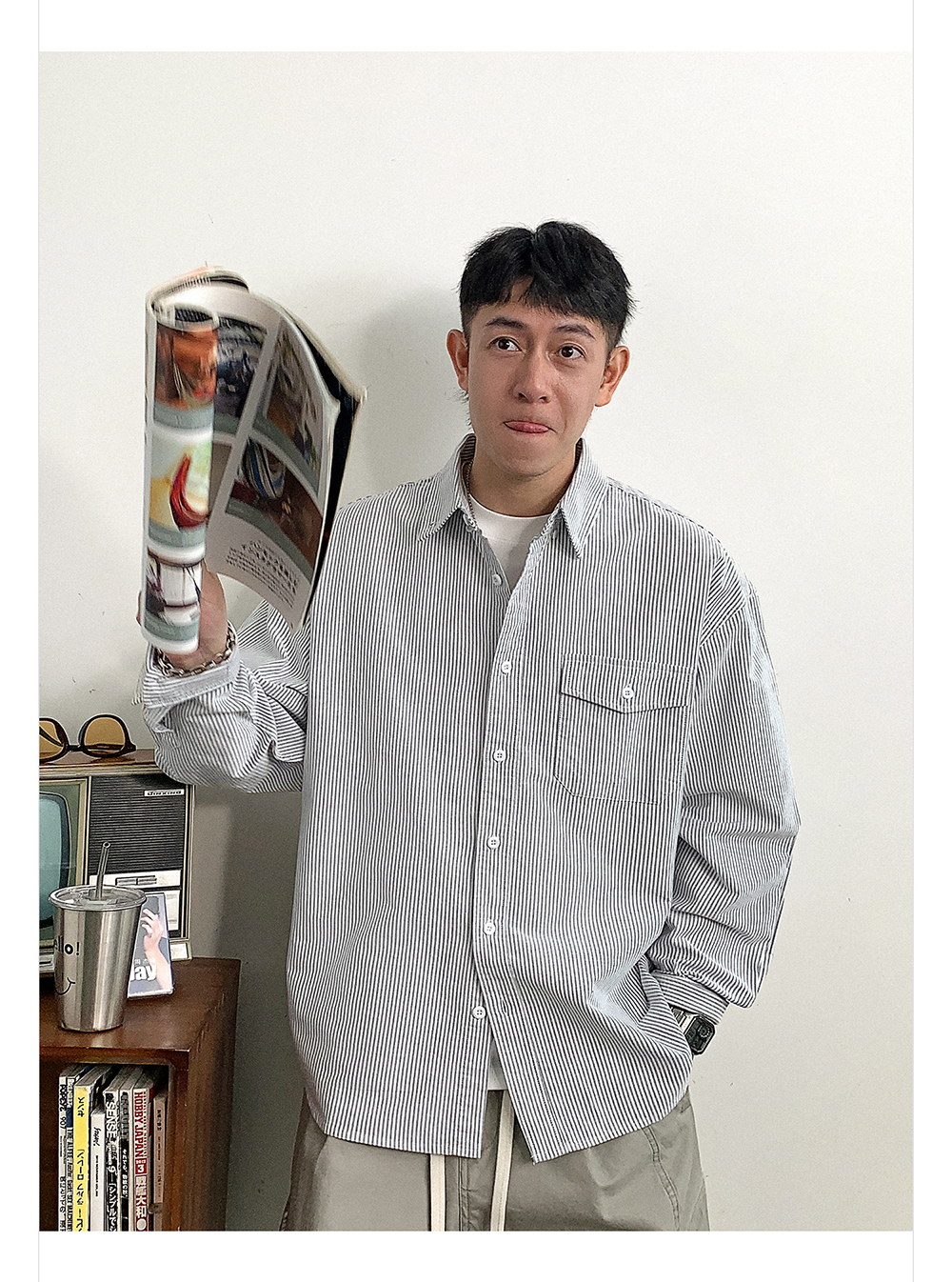 徐太浪高级感条纹长袖衬衫男2025新款春季潮牌男装休闲寸衫外套潮