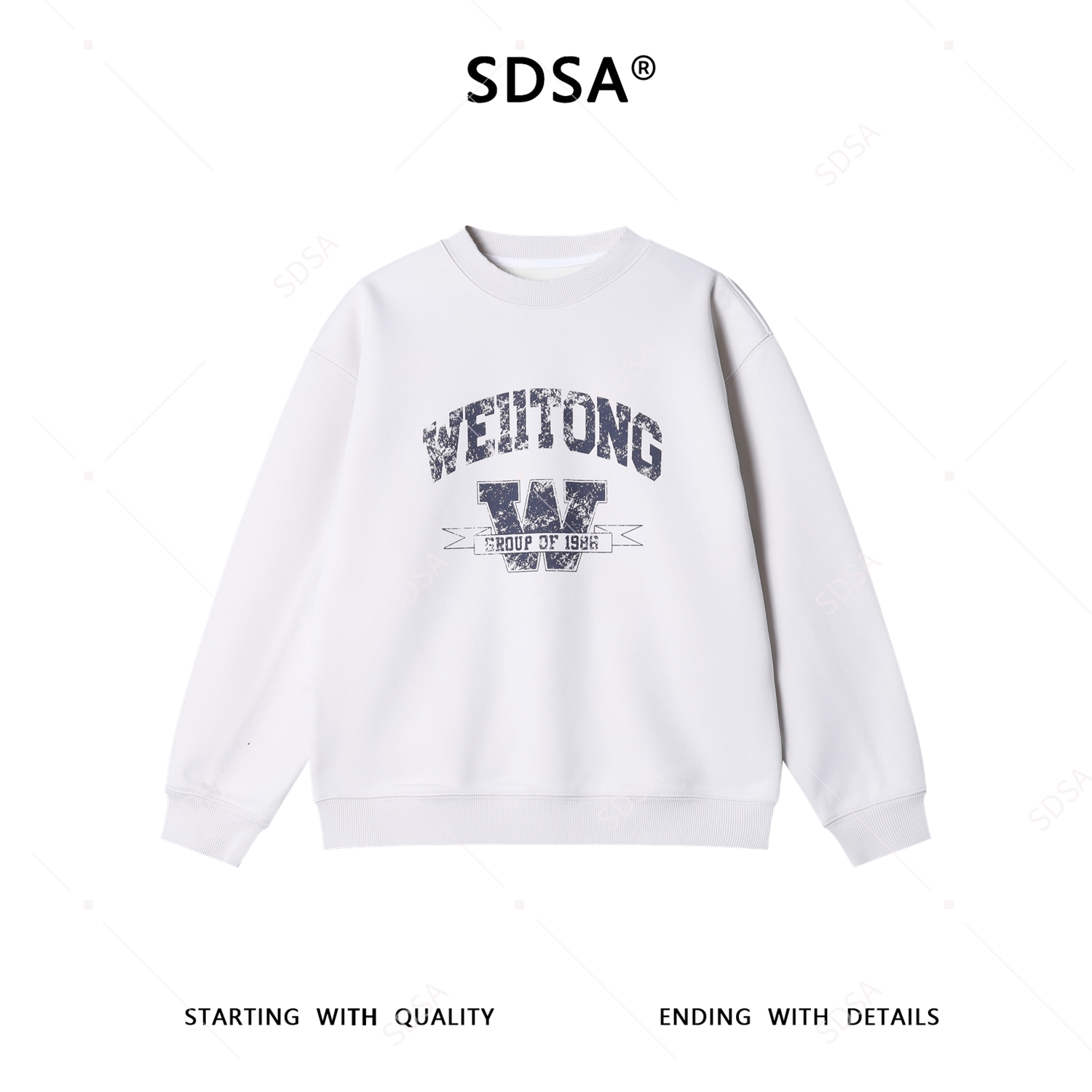SDSA男士秋冬新款痞帅男装美式撞色字母数字印花圆领卫衣百搭宽松