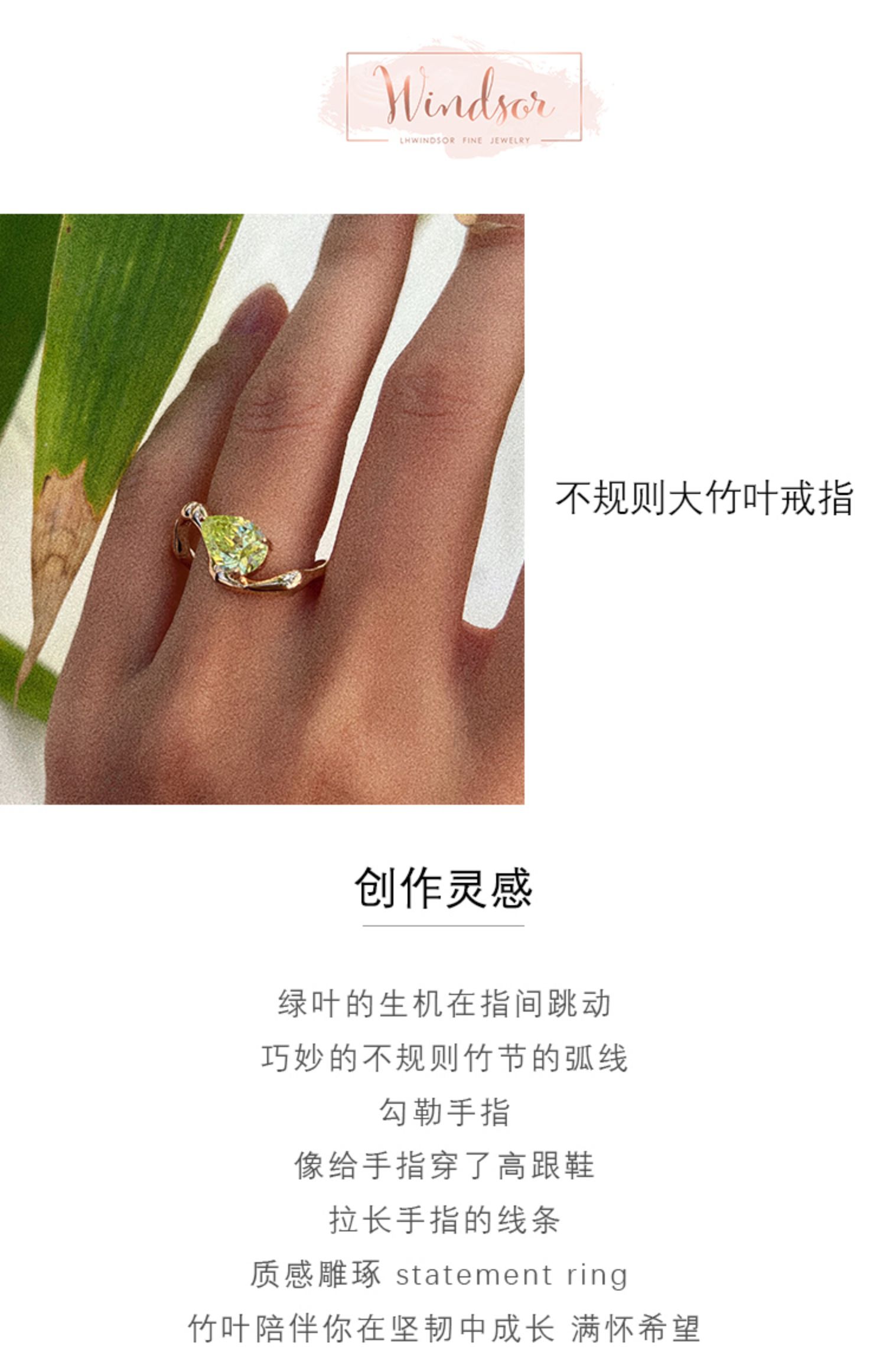 LHWINDSOR 绕指柔不规则大竹叶戒指
