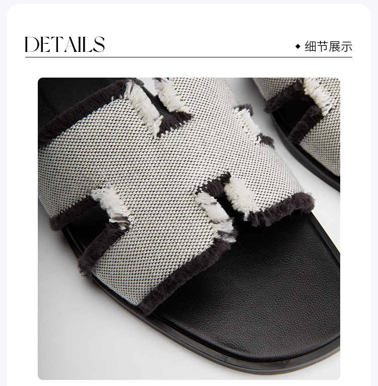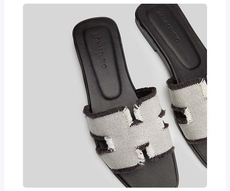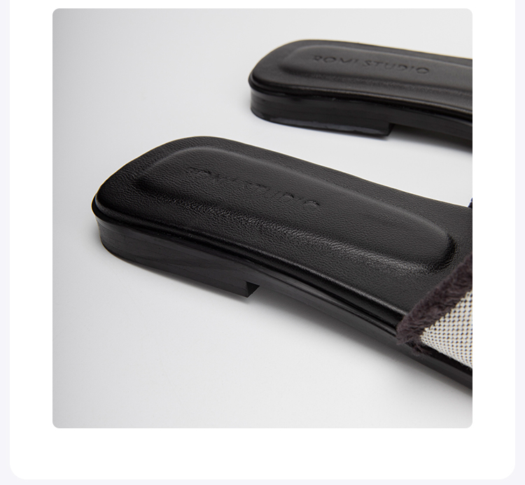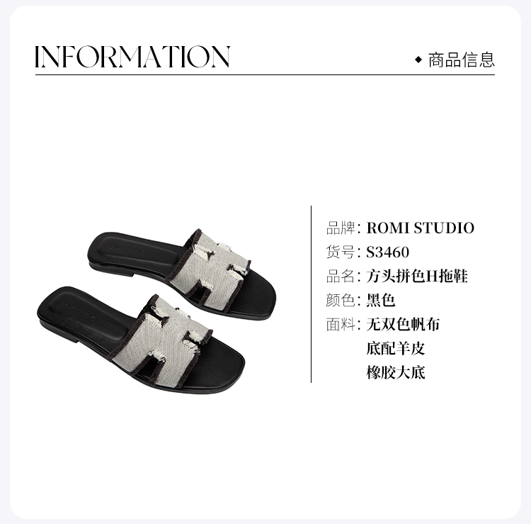 ROMI STUDIO”高定系列”复古休闲方头一字流苏拼色H百搭拖鞋 S3460