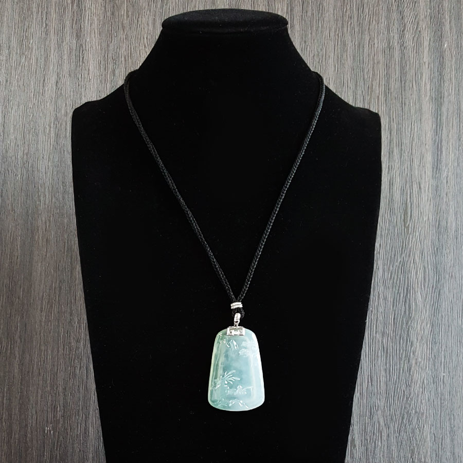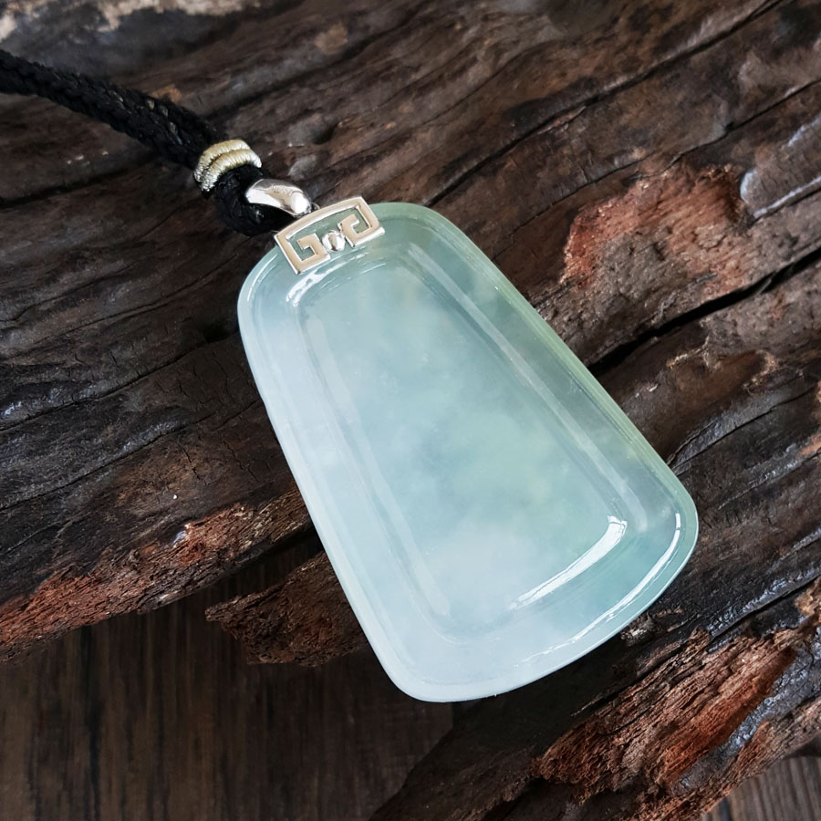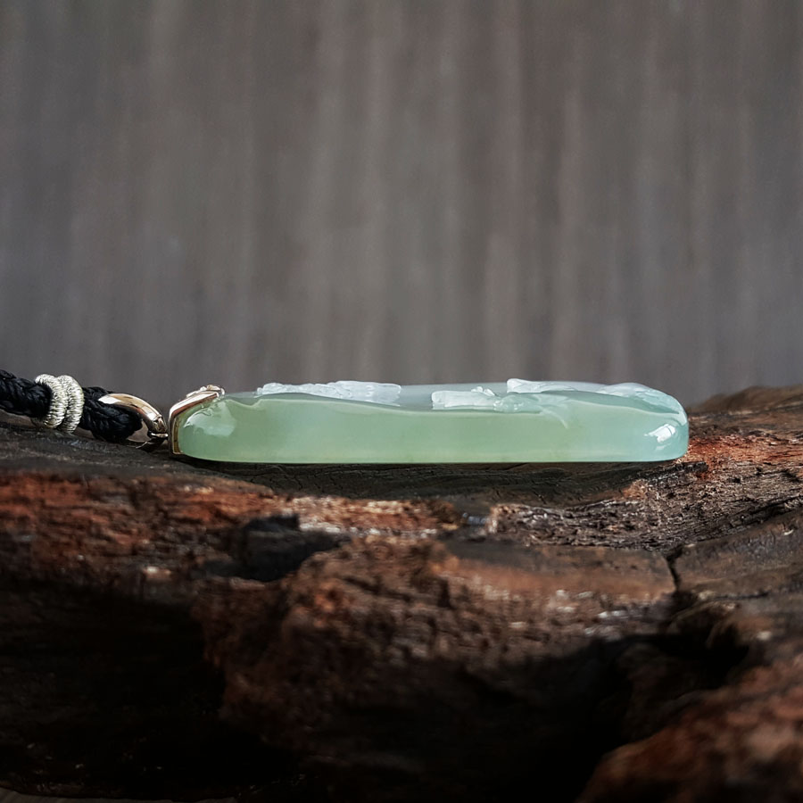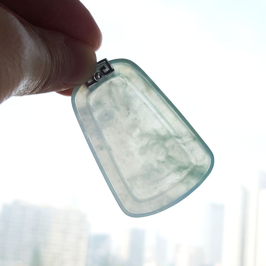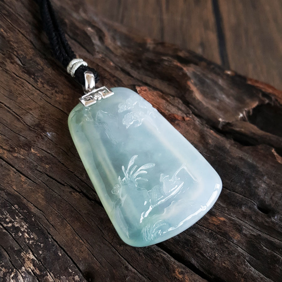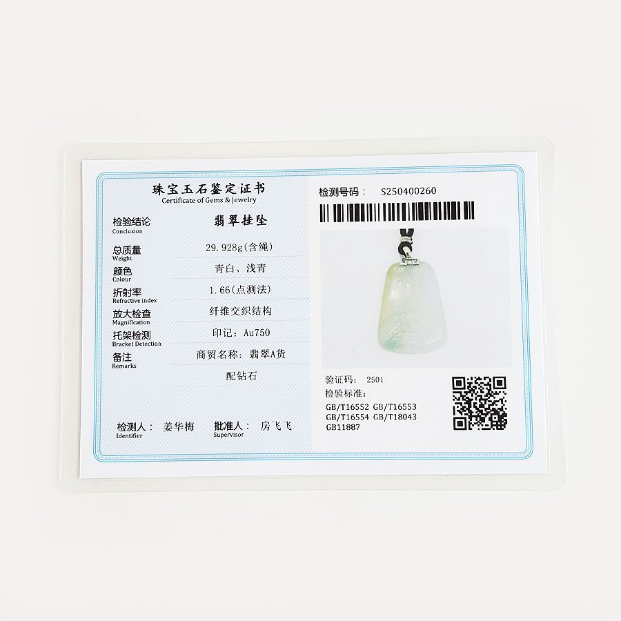 名称 | AU750收藏级白金镶钻镶天然细腻无纹裂冰种山水平安无事牌翡翠吊坠项链 |