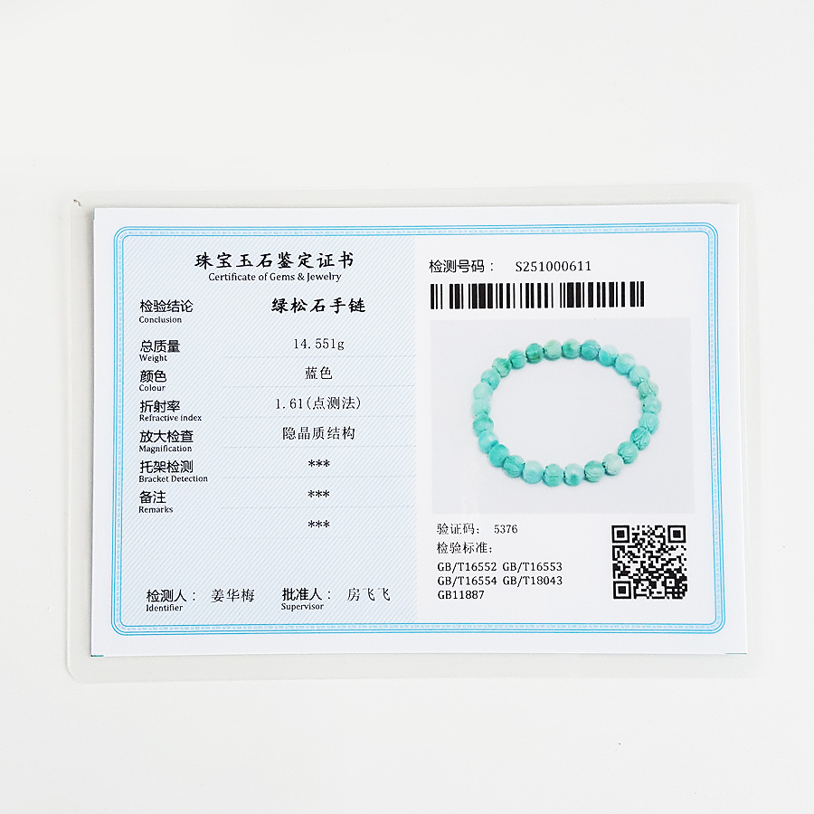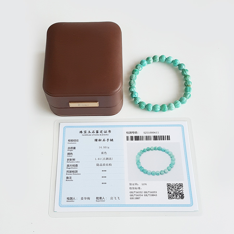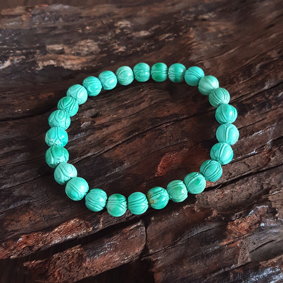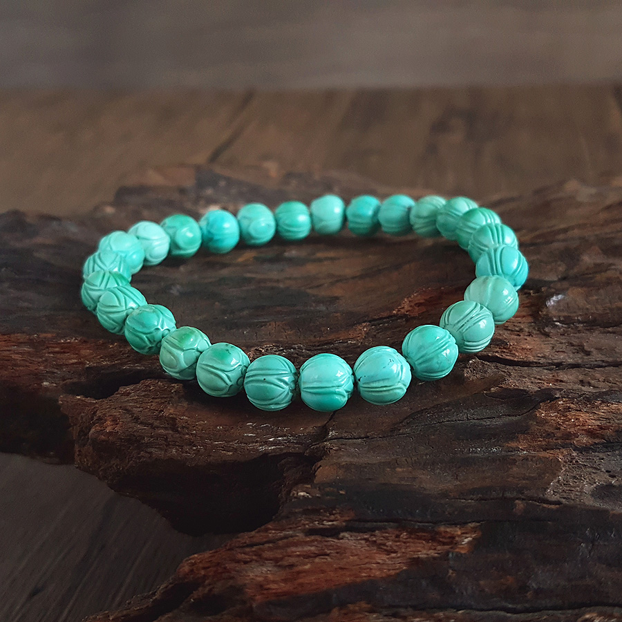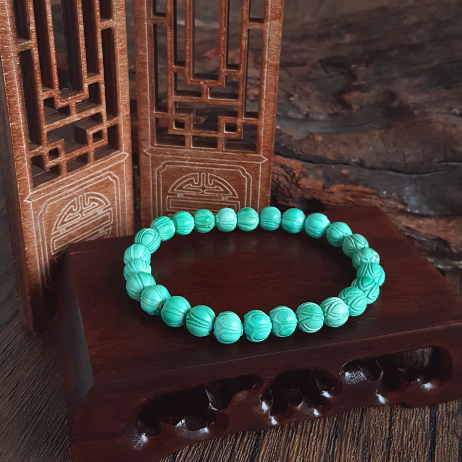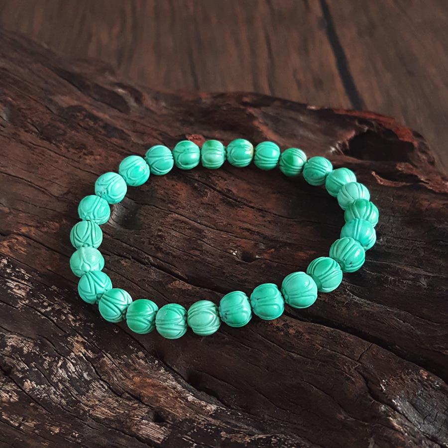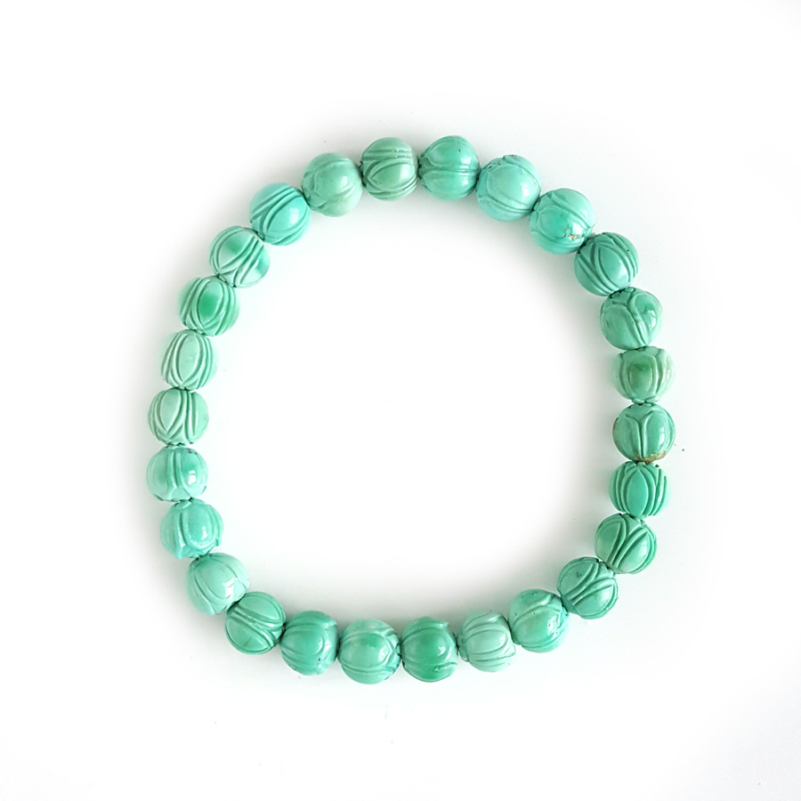 名称 | 天然原矿高瓷高蓝约7.7MM莲花型绿松石珠串手串 |