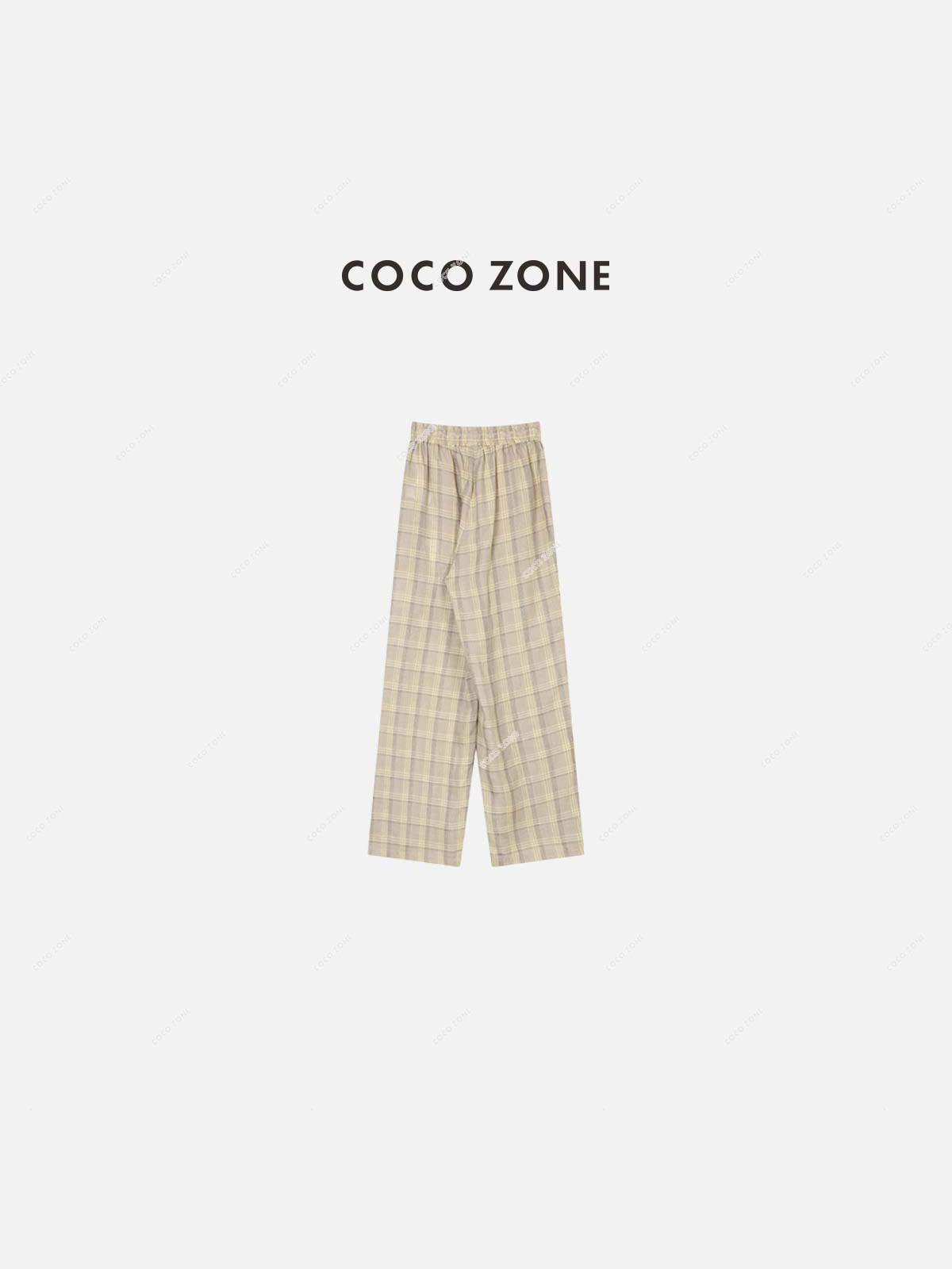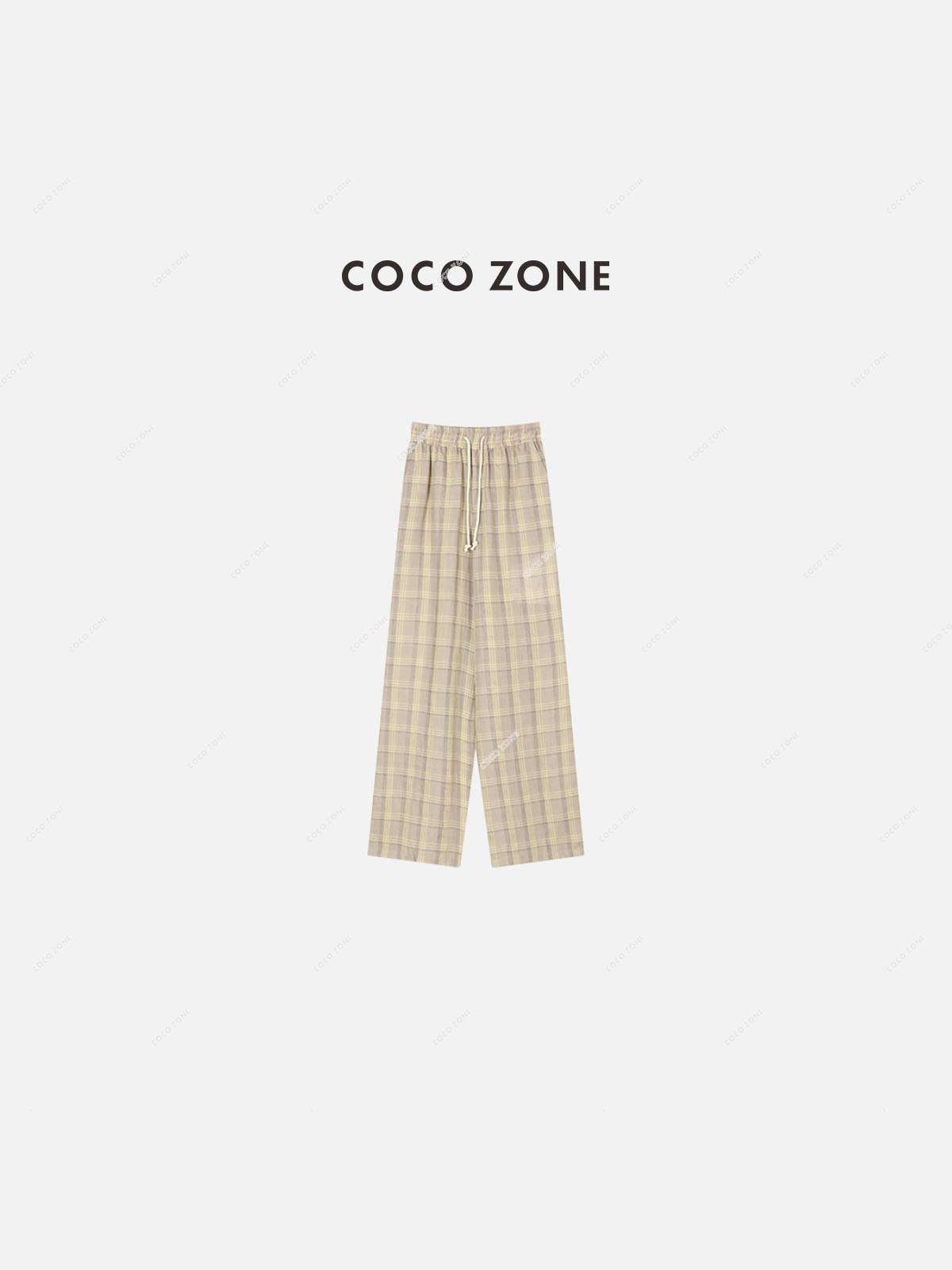 COCO ZONE 气质百搭阔腿裤系绳麻料格子长裤 23C18881