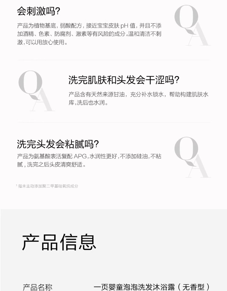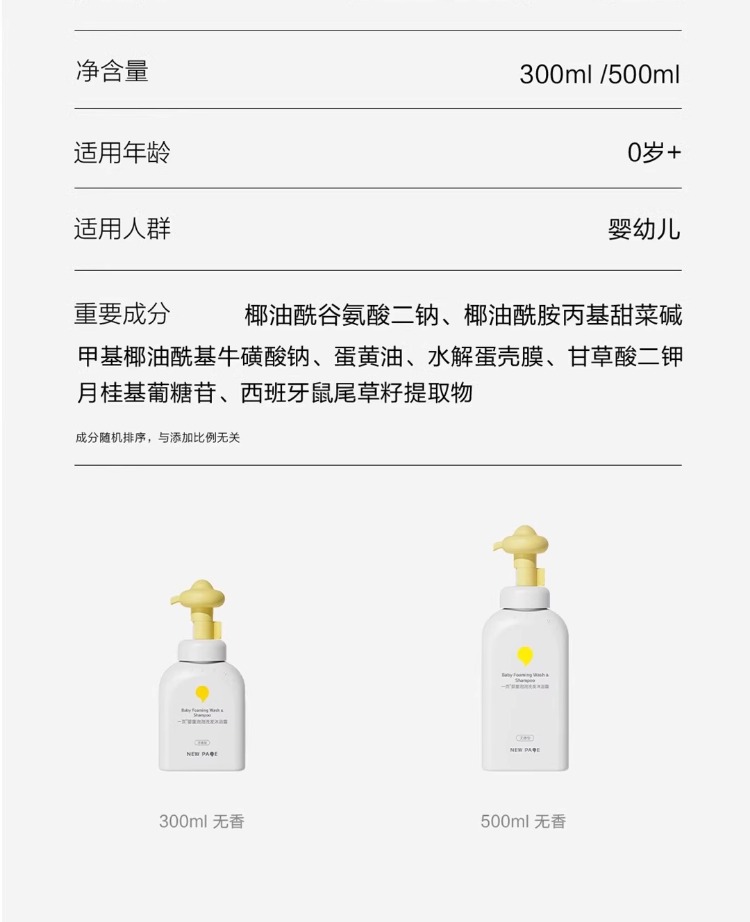 一页洗护二合一婴童洗发水沐浴露0岁+宝宝可用儿童沐浴乳官方正品