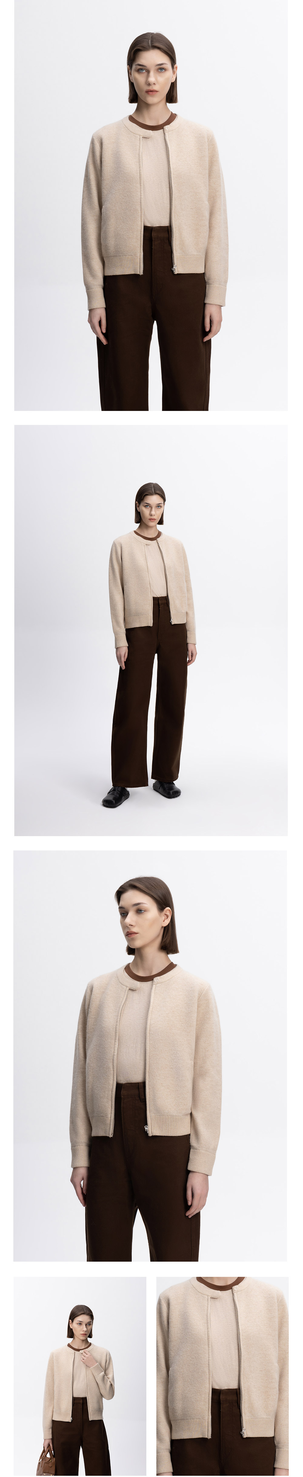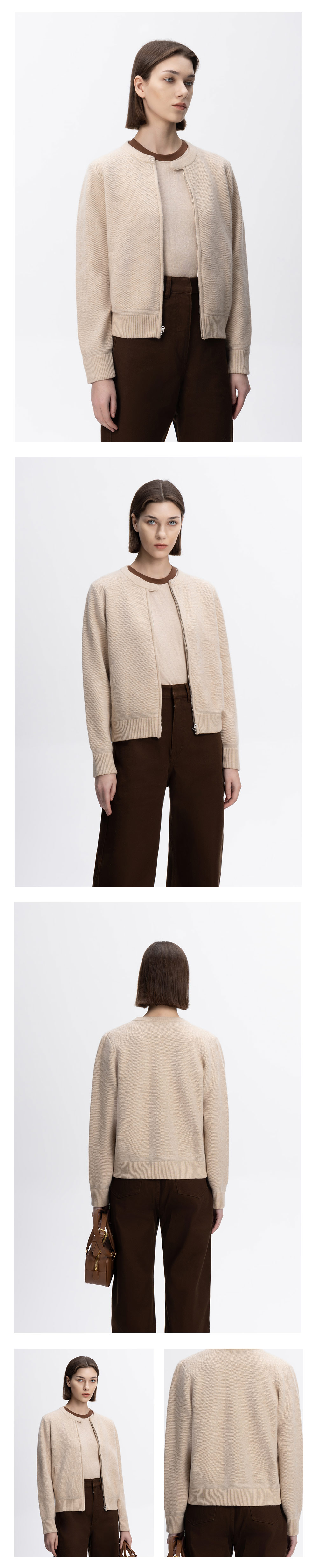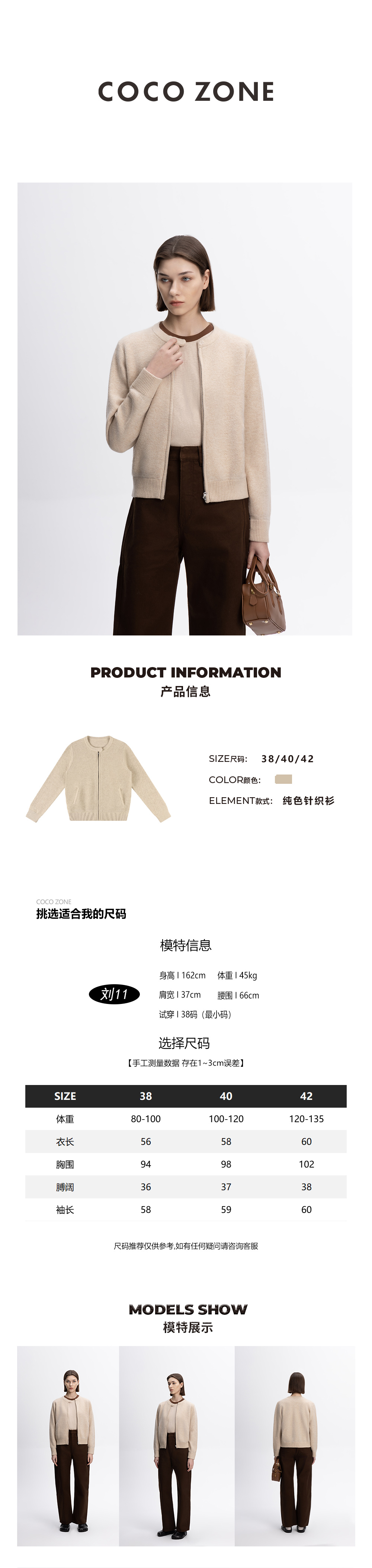 COCO ZONE&刘一一气质圆领纯色针织衫早秋款拉链开衫 23C19199