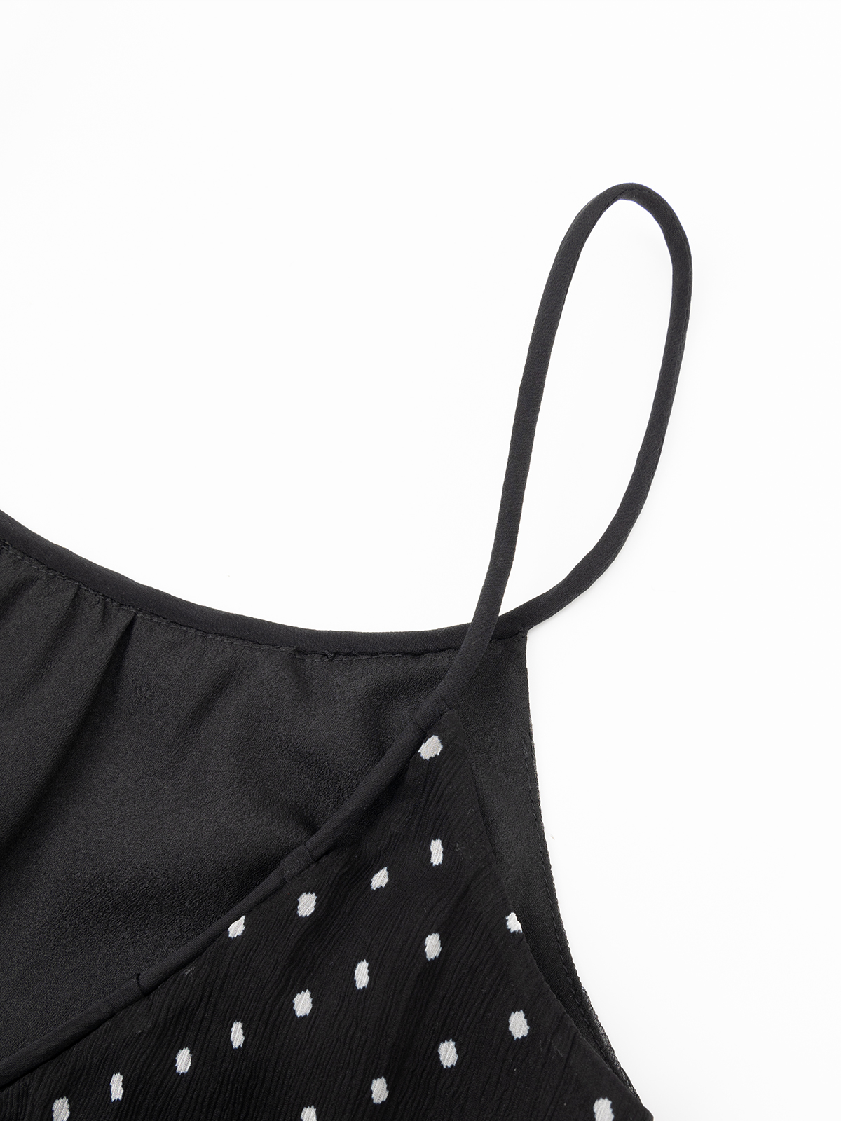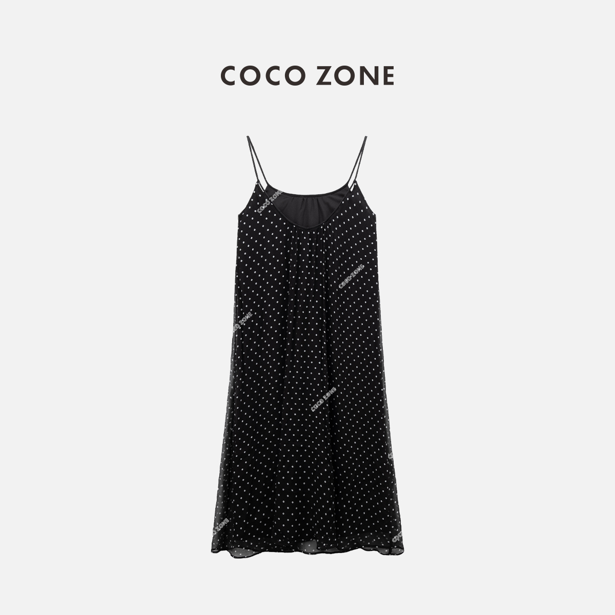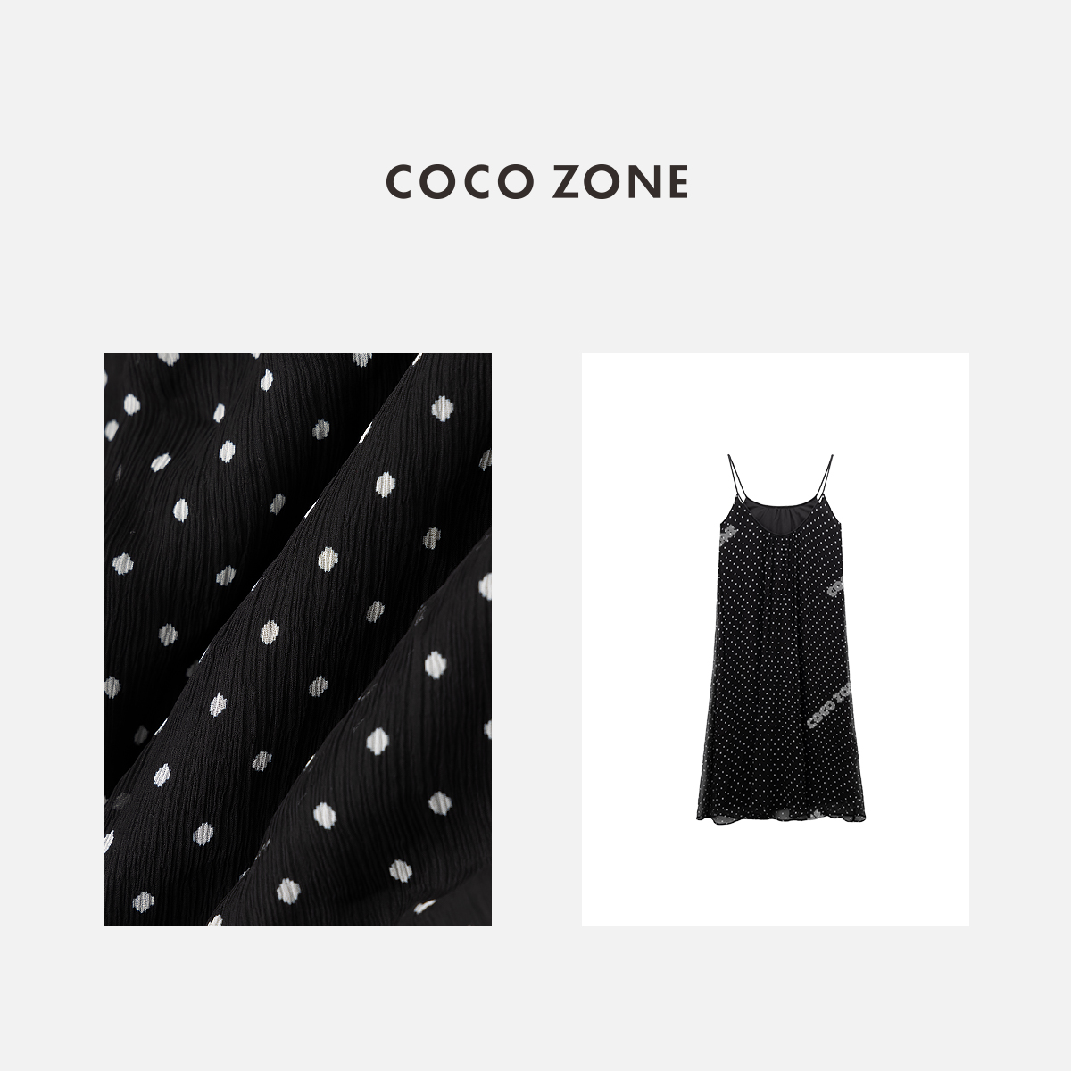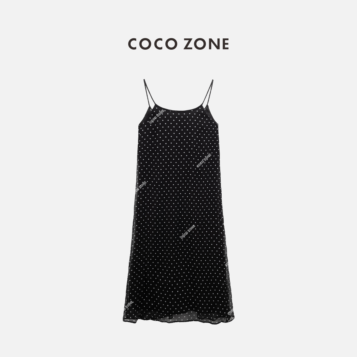 COCO ZONE100桑蚕丝波点吊带连衣裙时尚百搭简约长裙CC1B0844