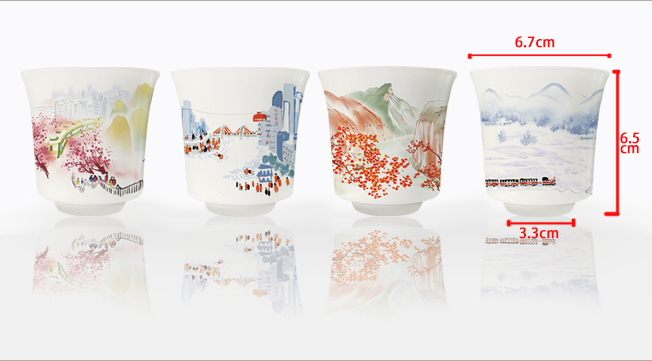 展现了重庆四季变换的自然美景和城市魅力。每一款品茗杯都是对山城四季美景的一次艺术诠释,不仅适合作为日常使用的茶具,也是展示重庆文化魅力和传递山城四季美景的名片。