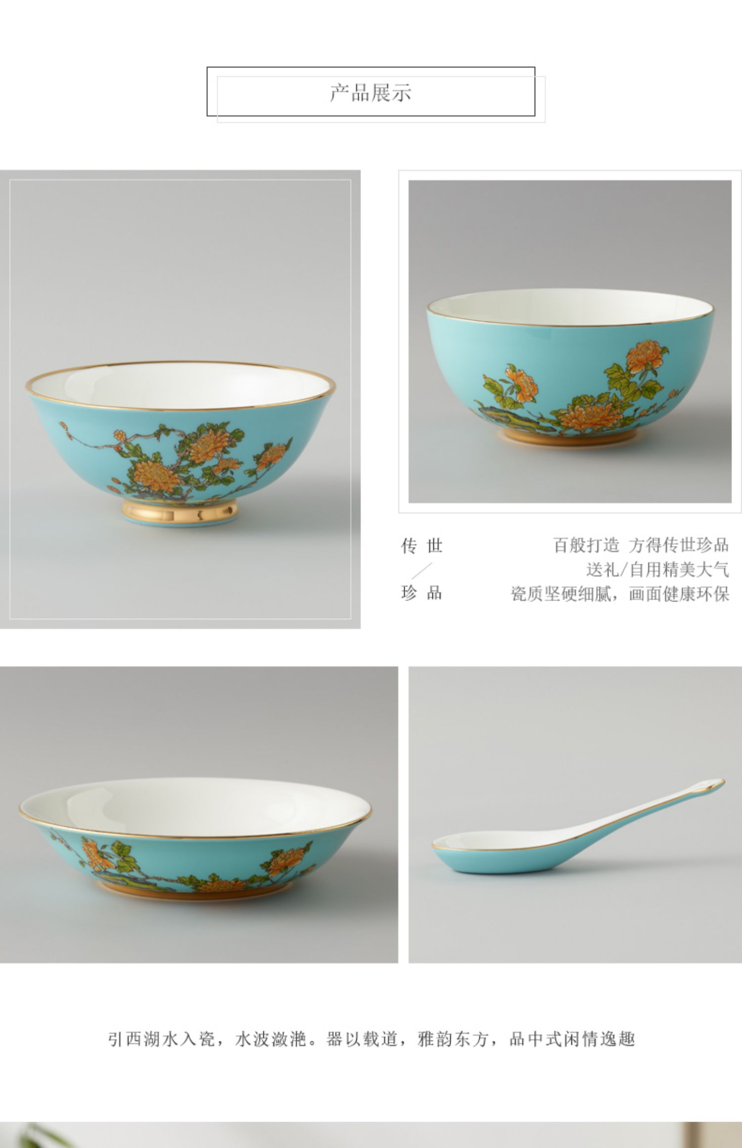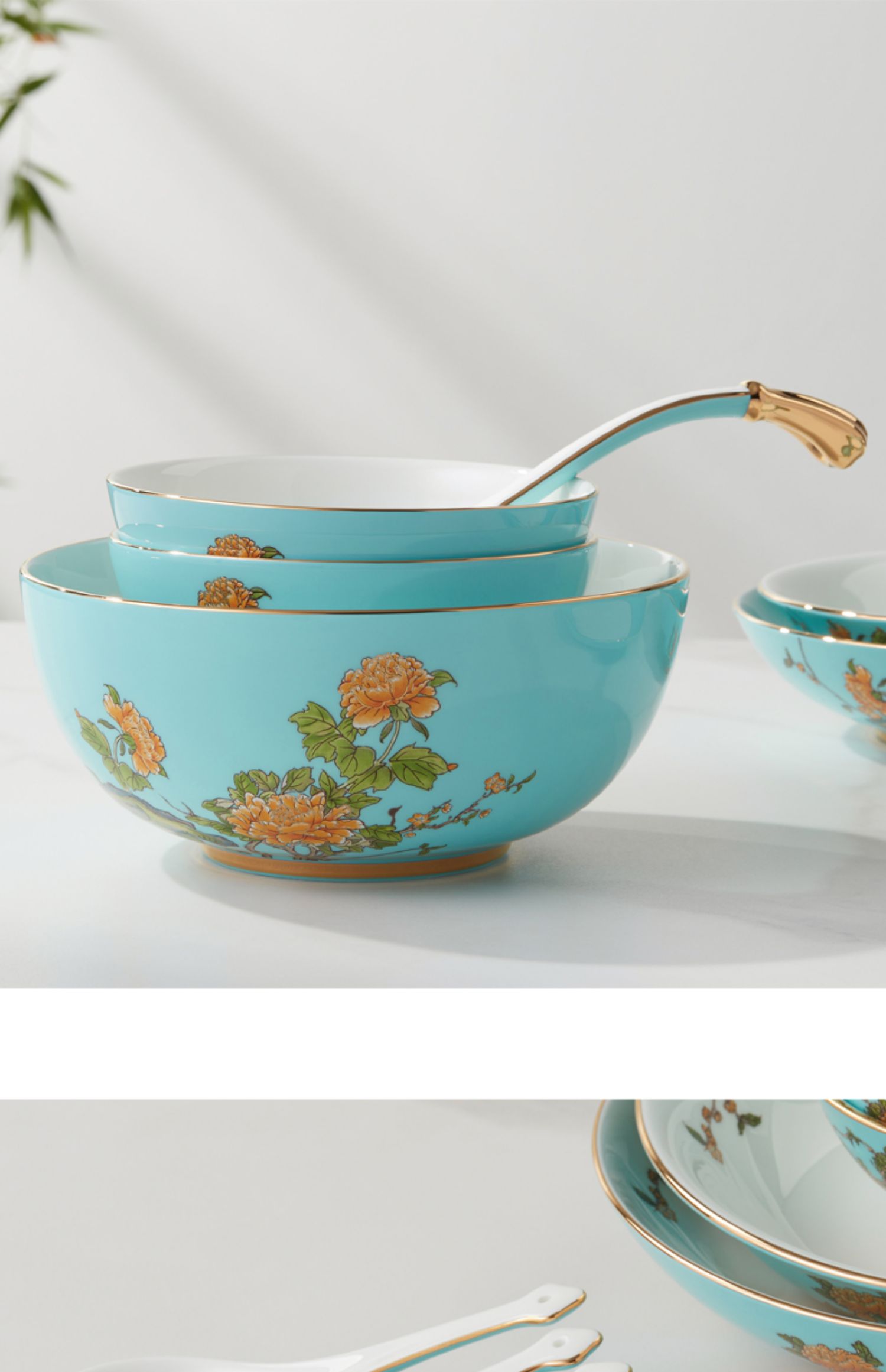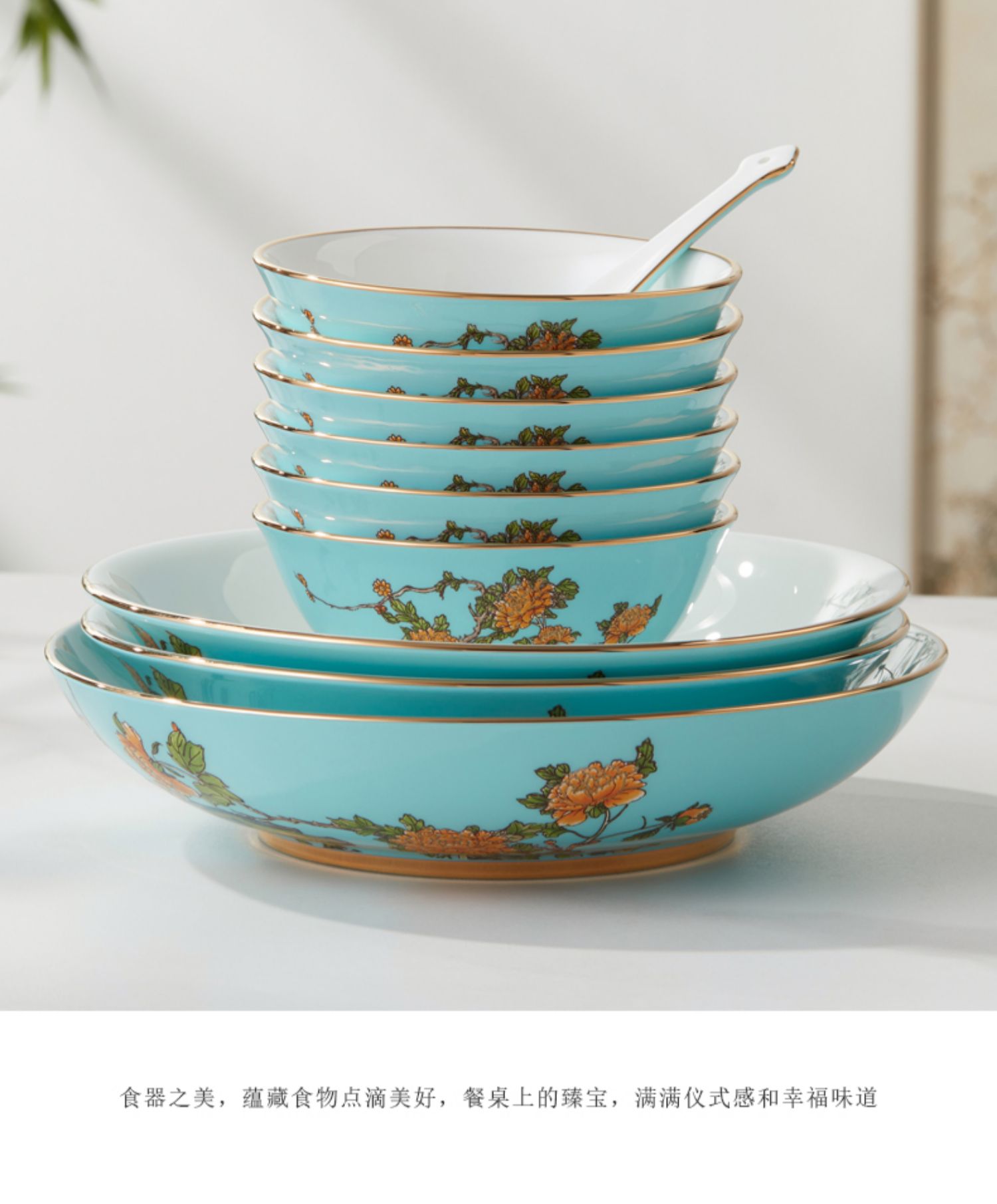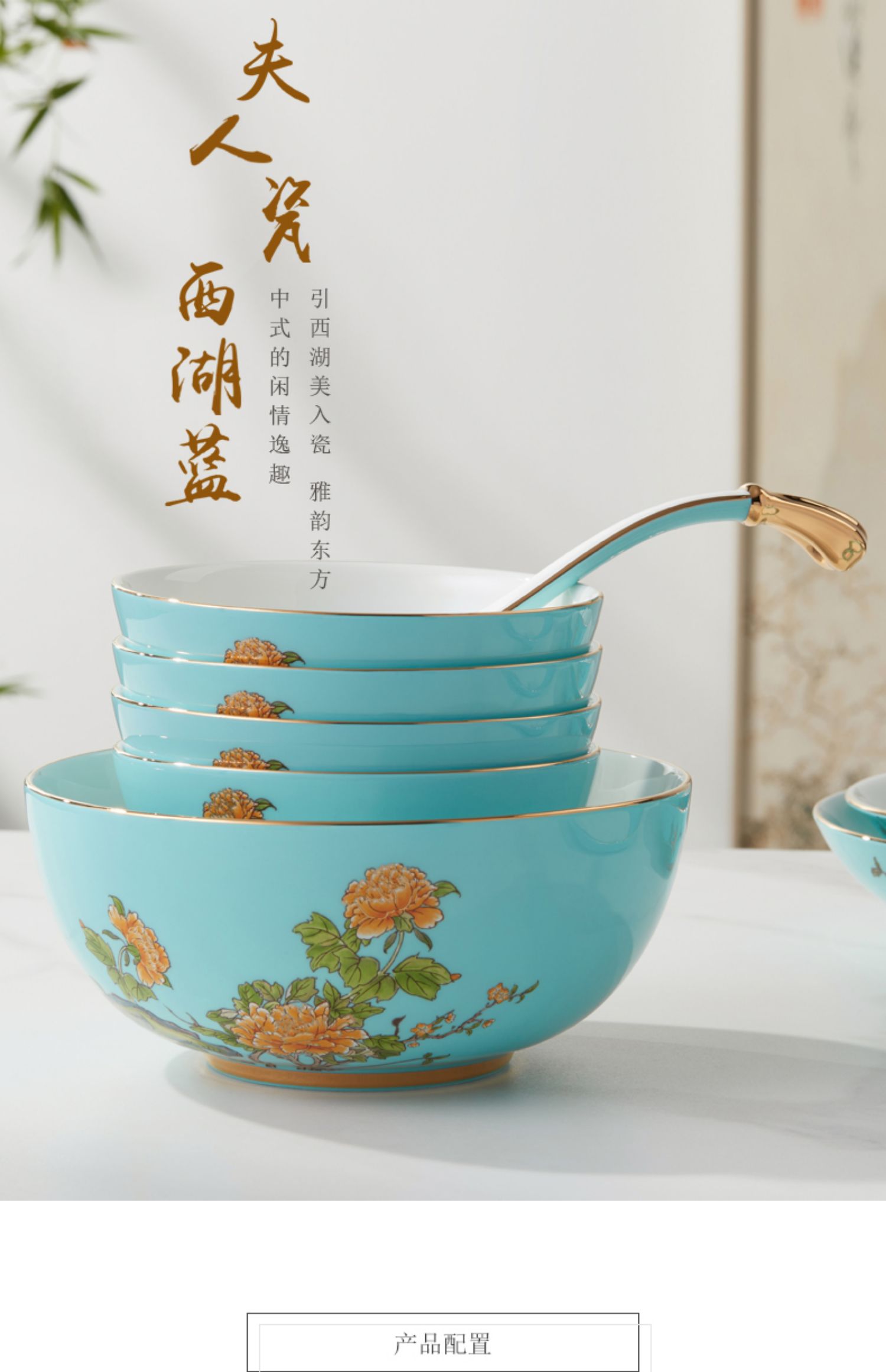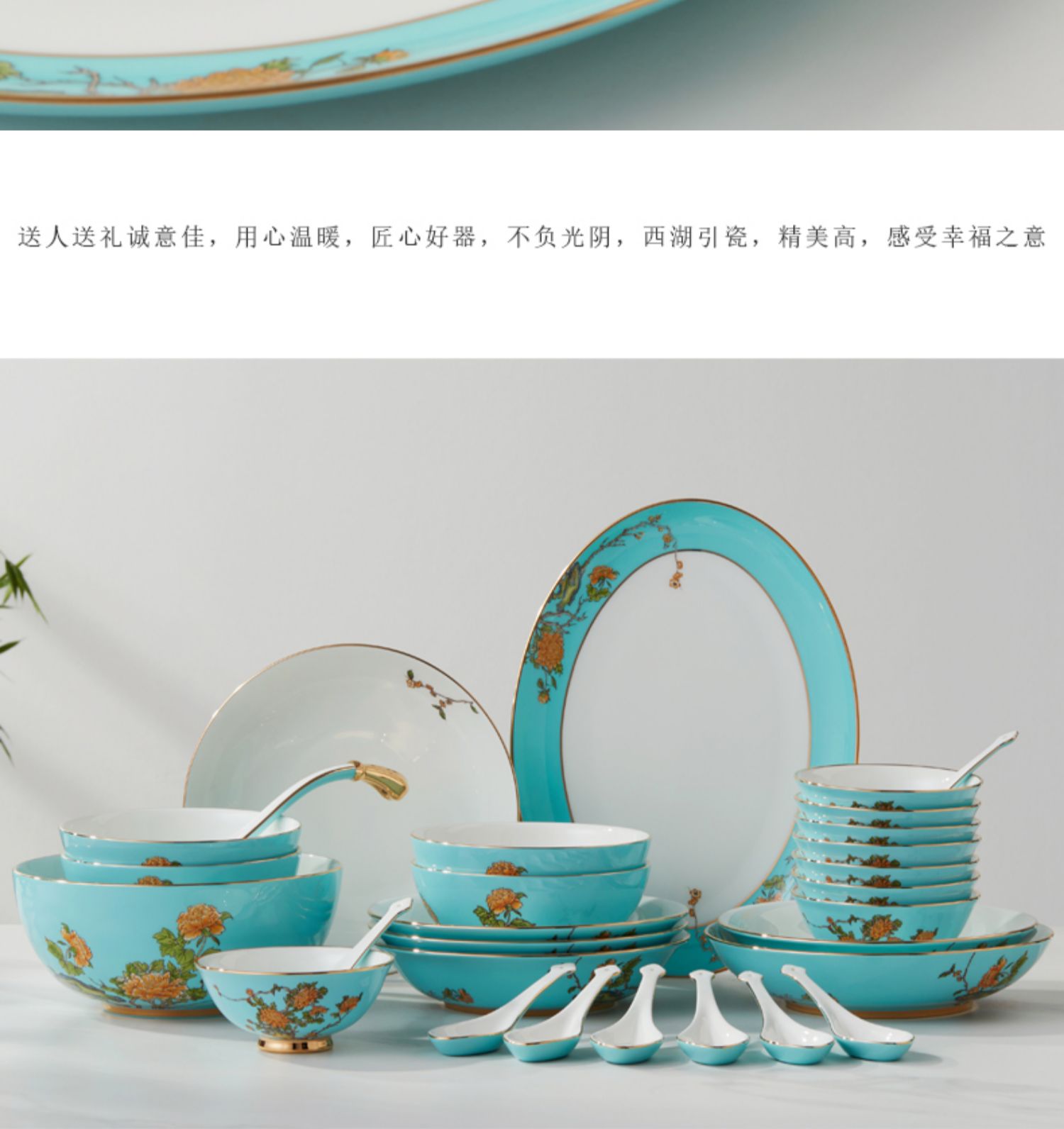 永丰源 夫人瓷西湖蓝29头餐具套装碗盘陶瓷家用8人位轻奢餐具送礼
