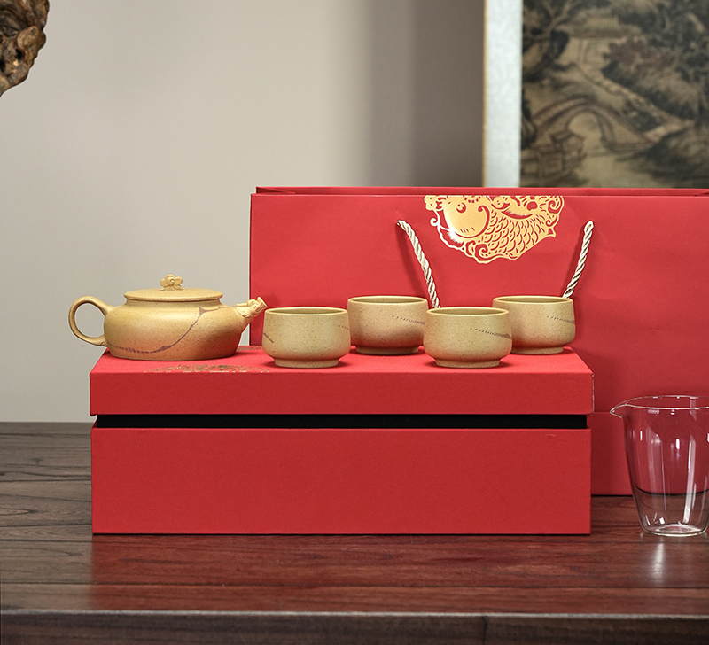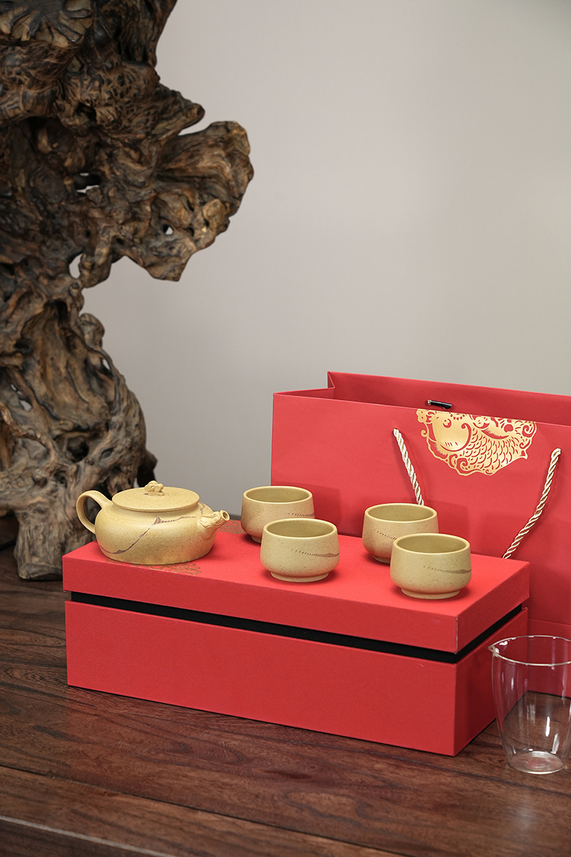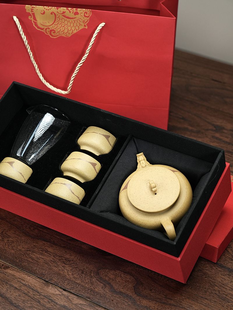 整套礼盒精选优质段泥所制,一壶四杯加玻璃公道杯。