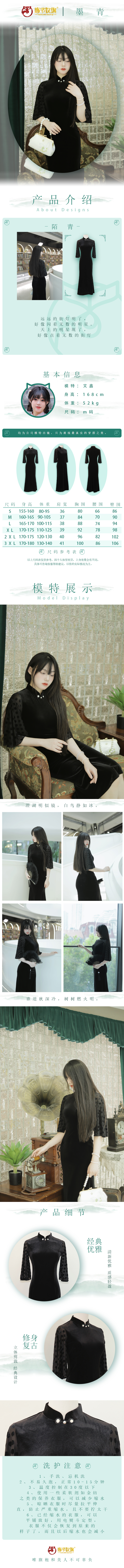【墨 青】精美柔顺丝绒改良旗袍气质优雅新中式