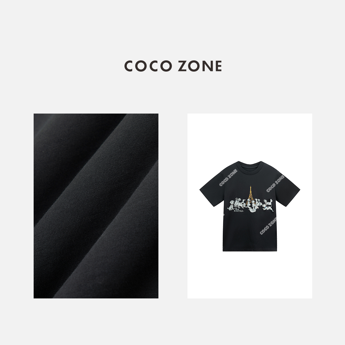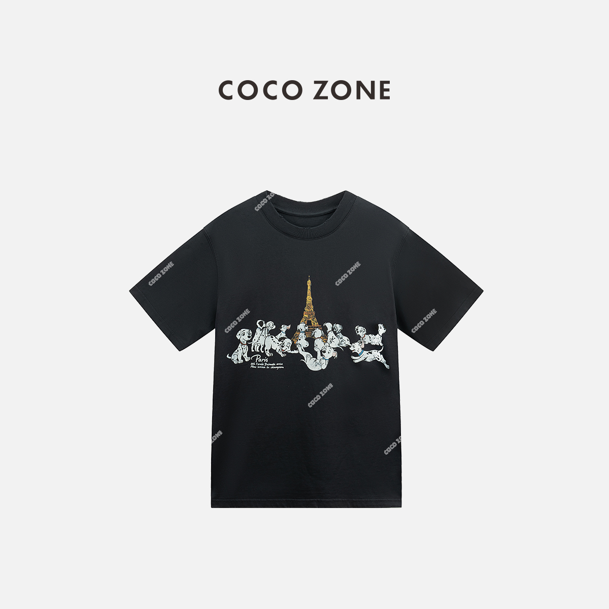 COCO ZONE "埃菲尔T“ 复古小众拼色T恤百搭卡通短袖上衣CC2B1081