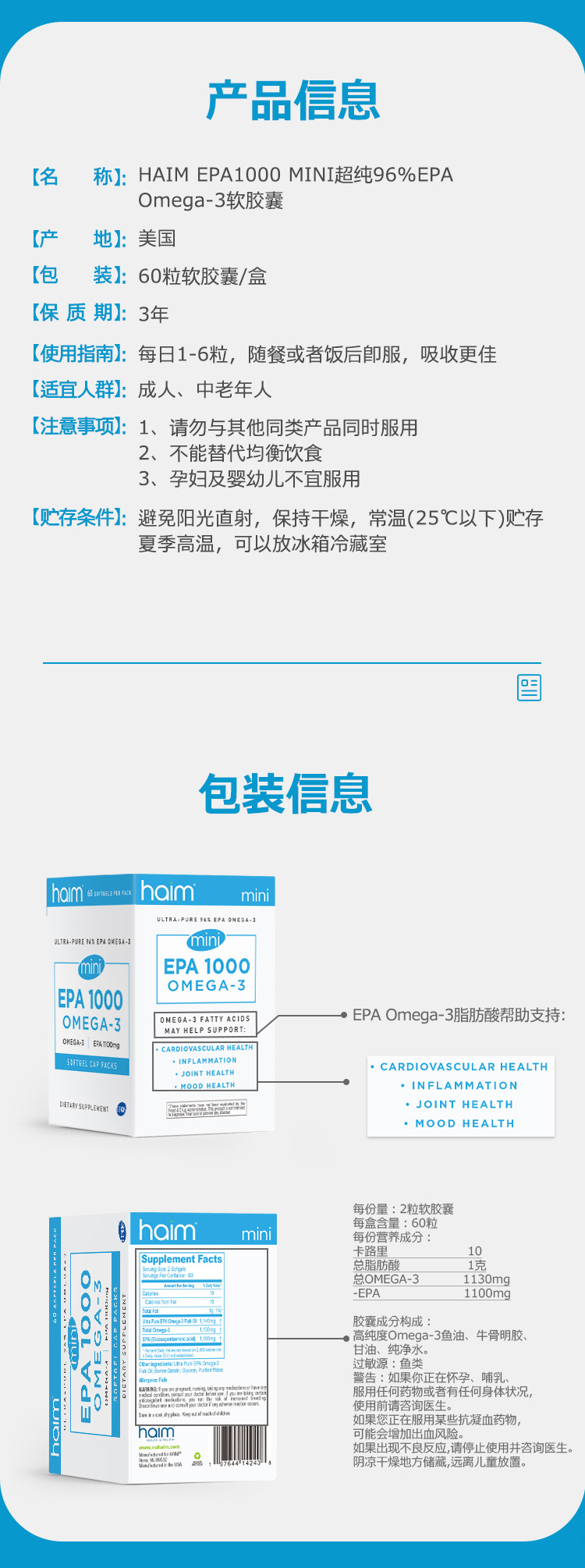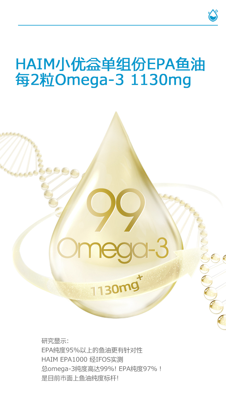 HAIM小优益97%高纯度单组分EPA鱼油进口99%Omega-3深海鱼油60粒高含量