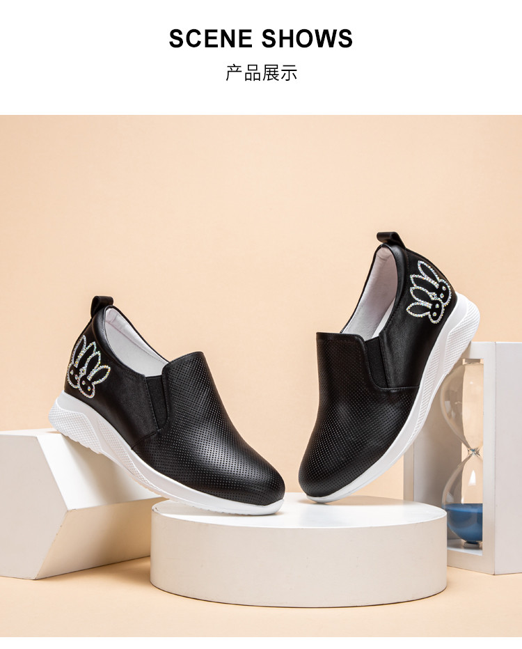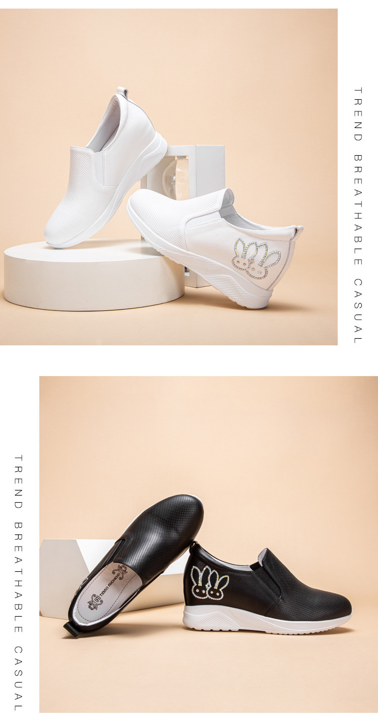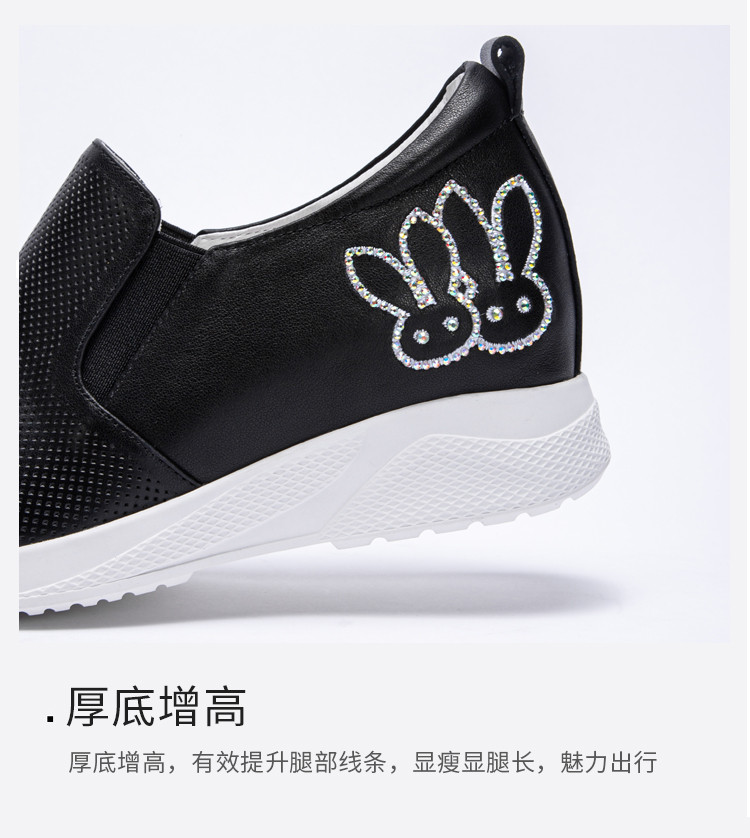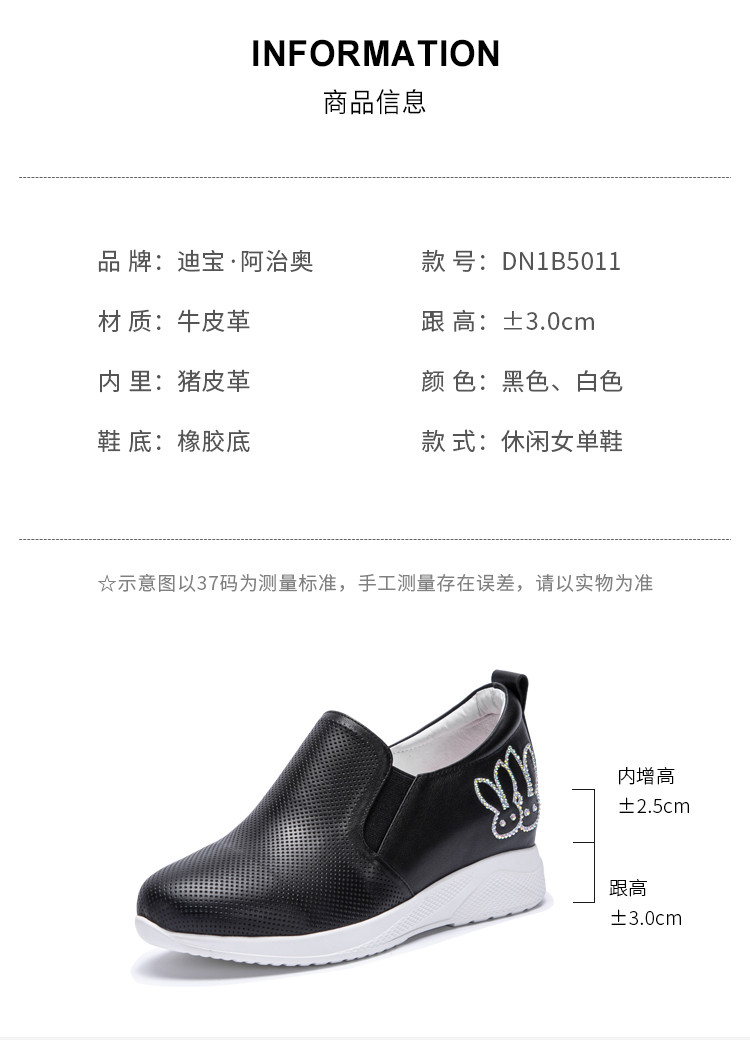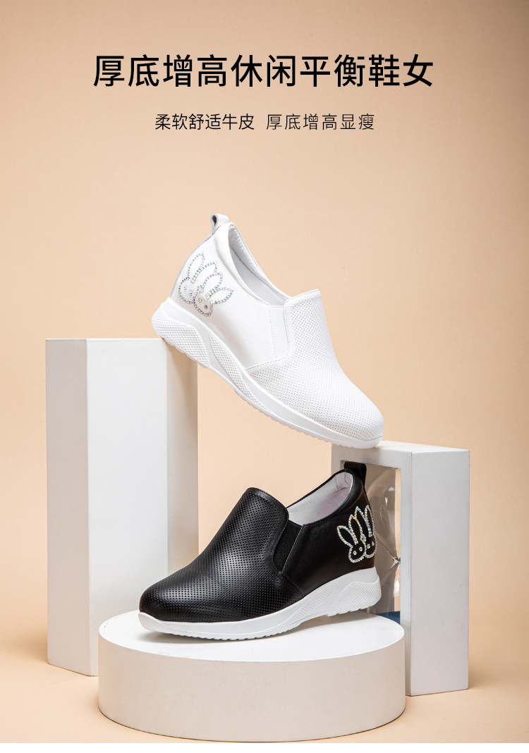迪宝女鞋牛皮卡通水钻厚底增高休闲鞋女春夏款简约#白色40【无运费险】