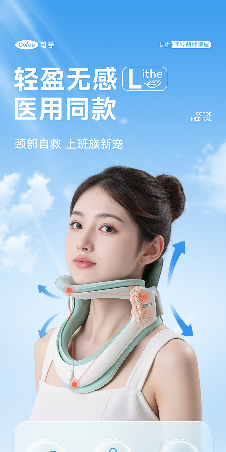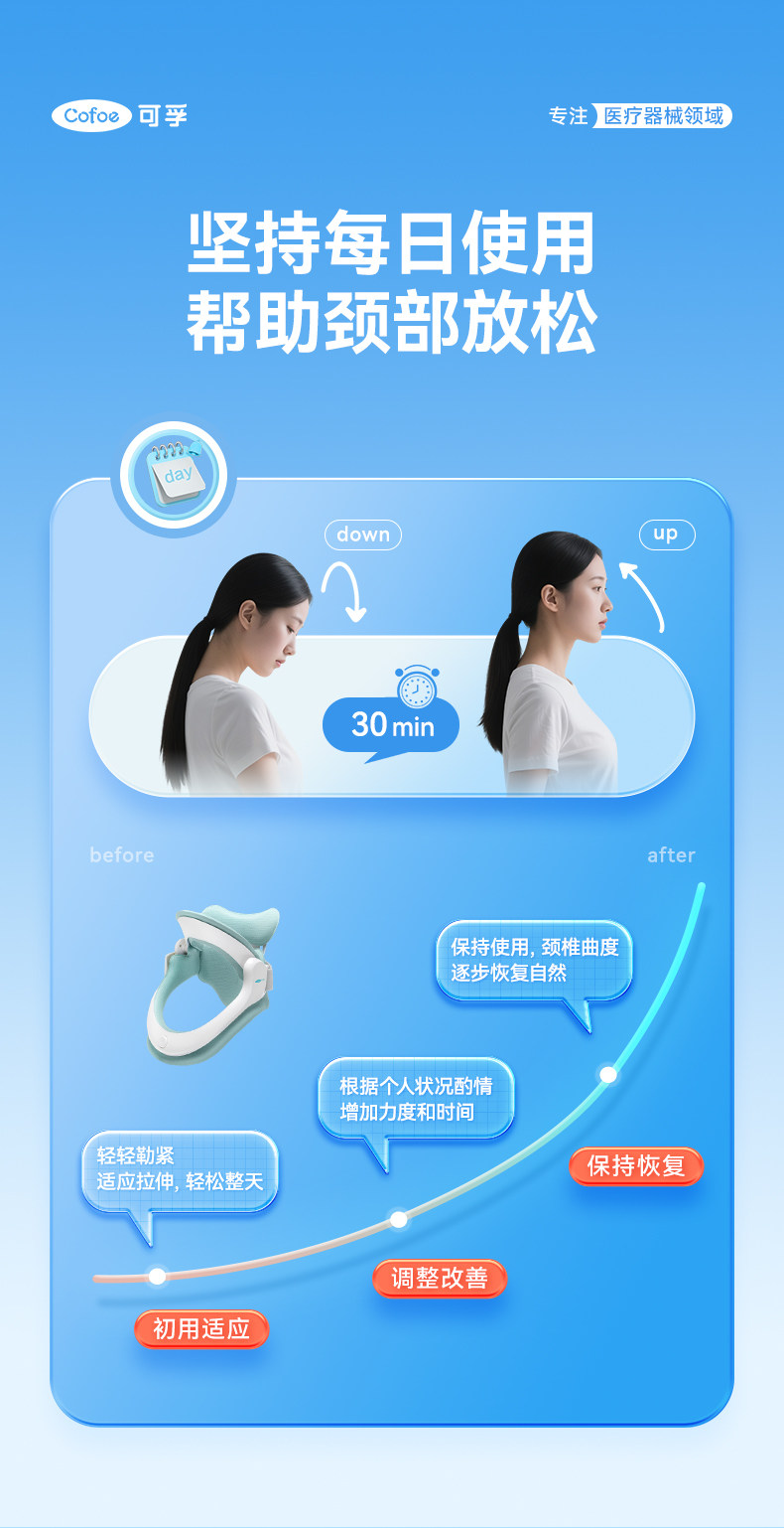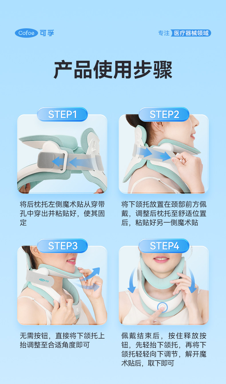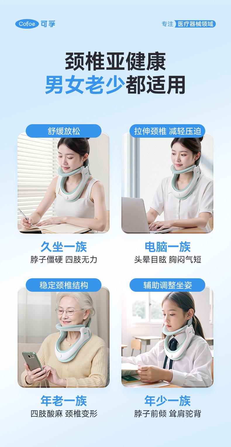 可孚医用颈托颈椎牵引器护颈脖子前倾家用专用充气型医疗防低头