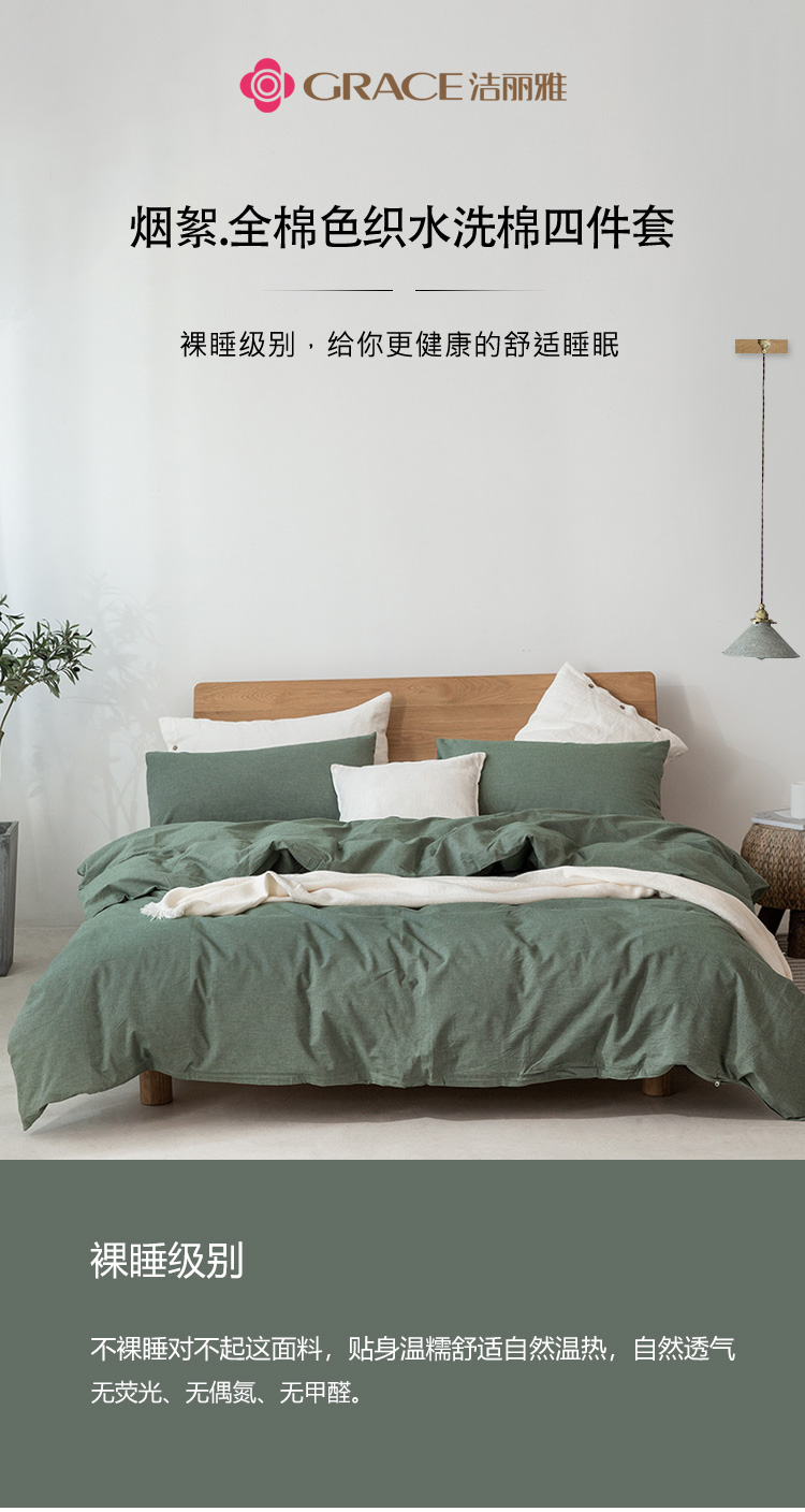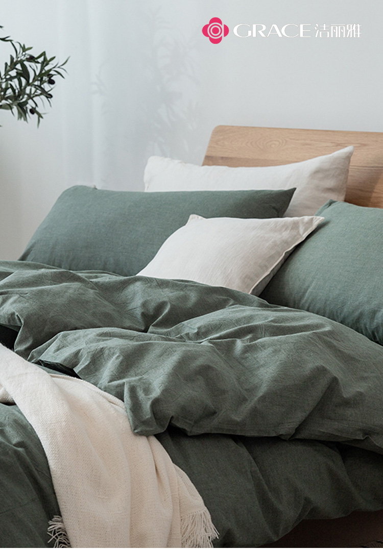 洁丽雅(Grace)官绿.全棉色织水洗棉四件套JLY25701