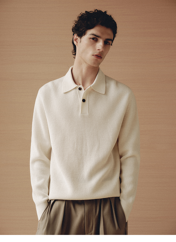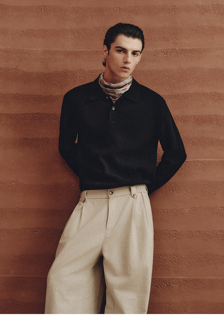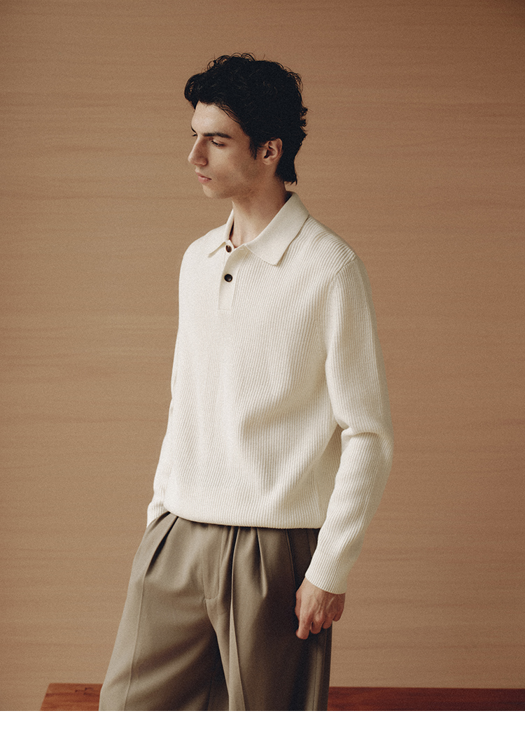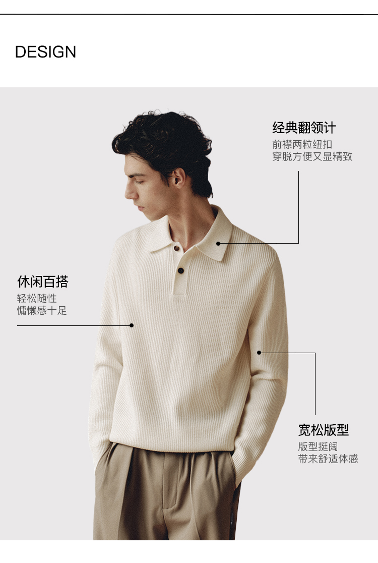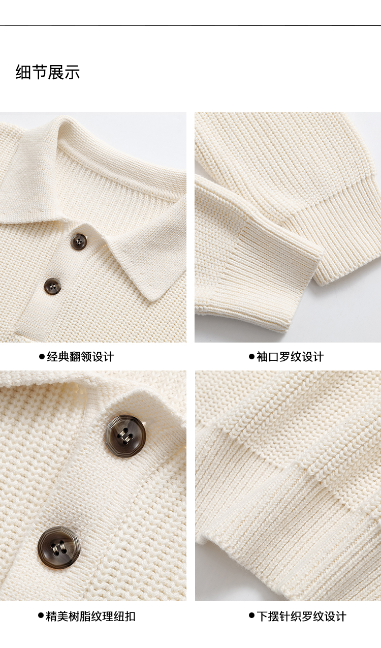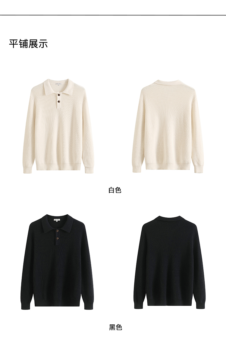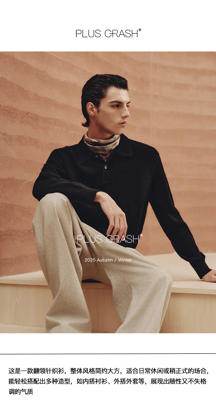 PLUS CRASH纹理感全棉老钱风POLO领毛衣百搭休闲慵懒风翻领针织衫