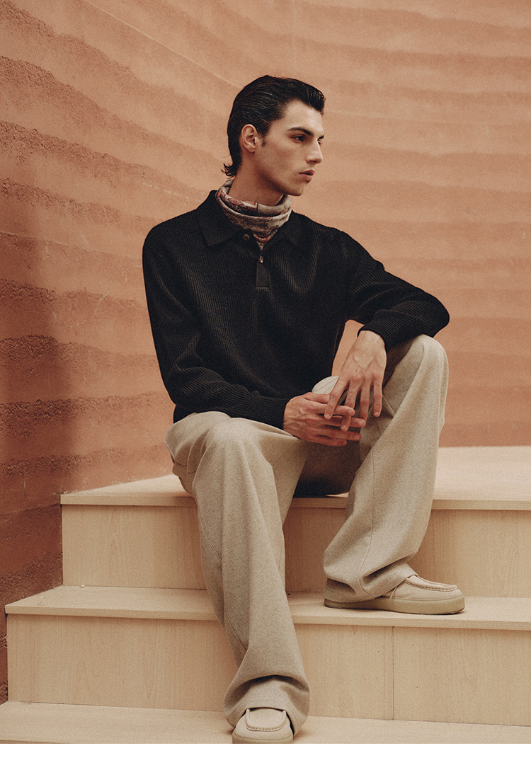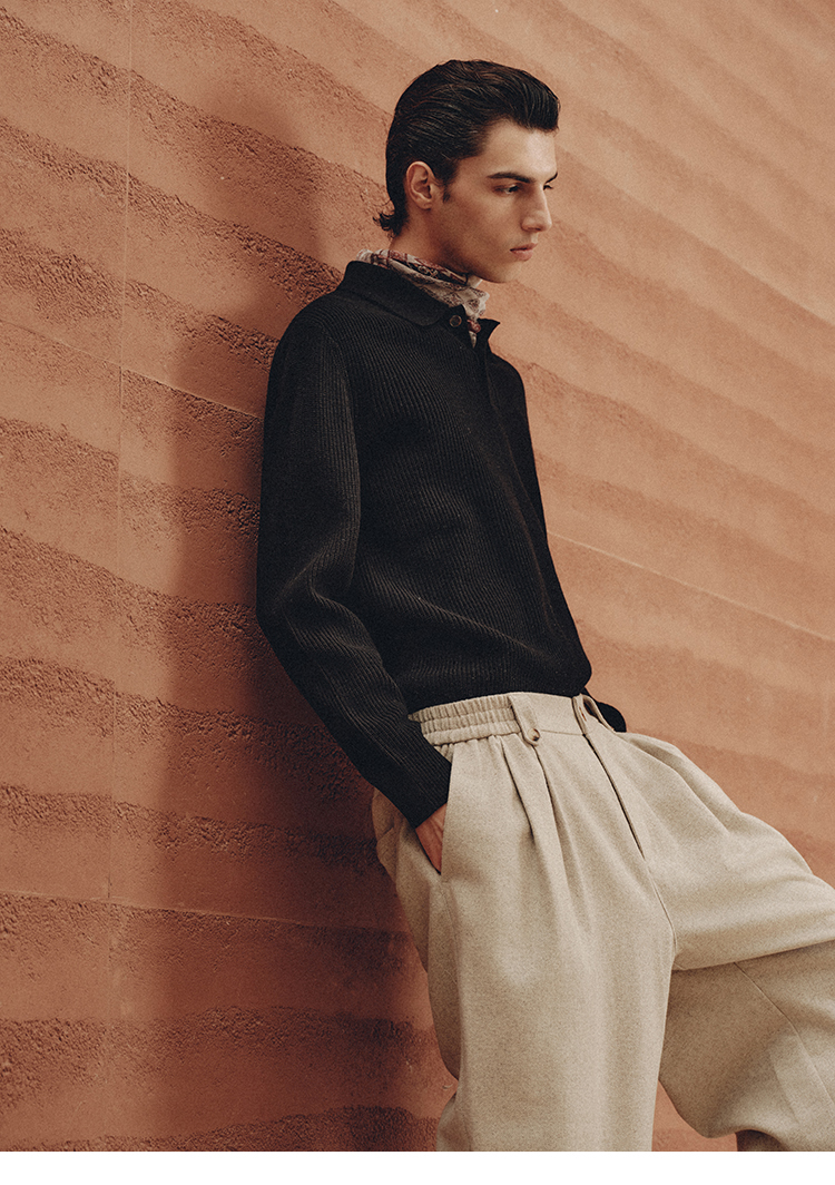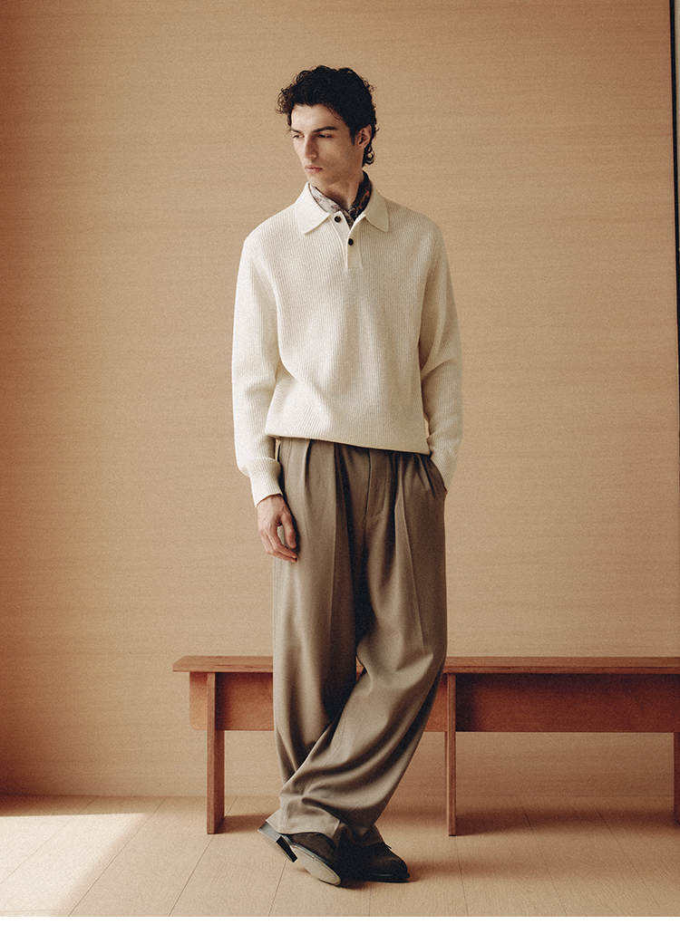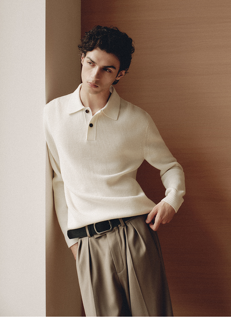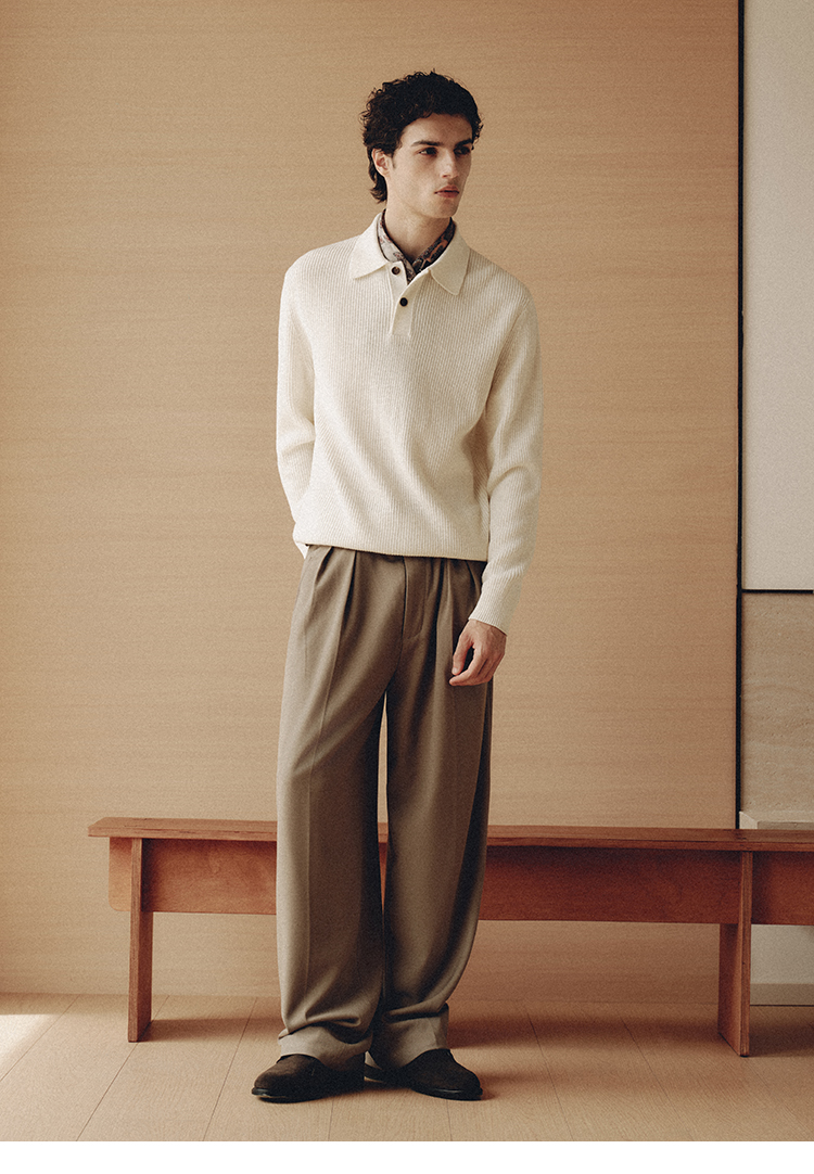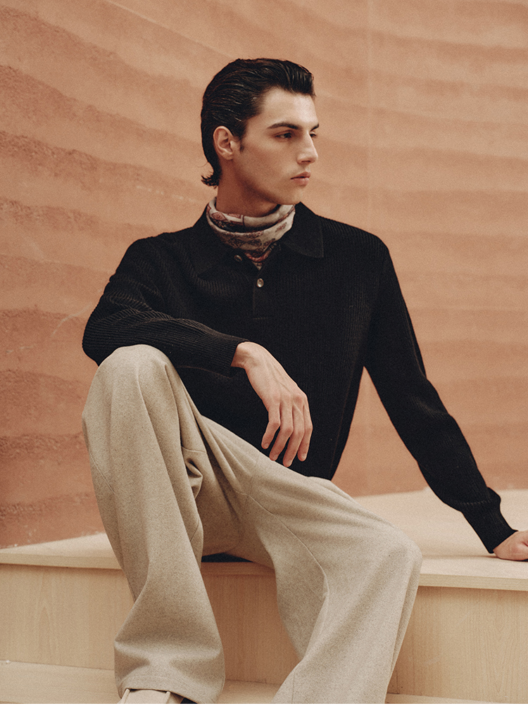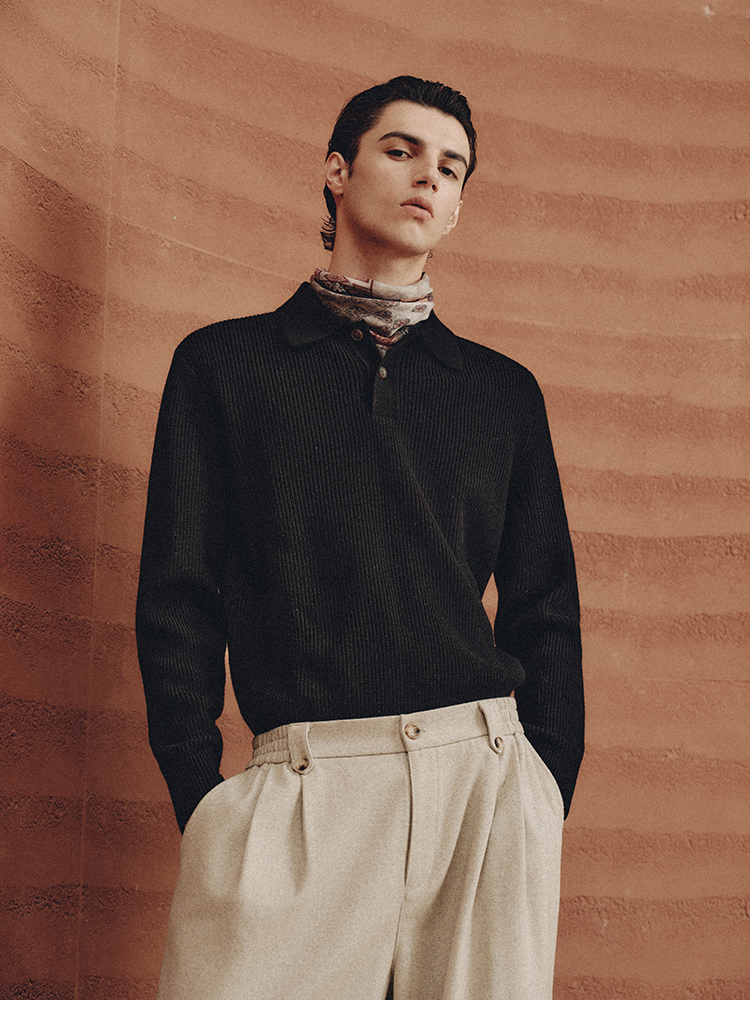 PLUS CRASH纹理感全棉老钱风POLO领毛衣百搭休闲慵懒风翻领针织衫