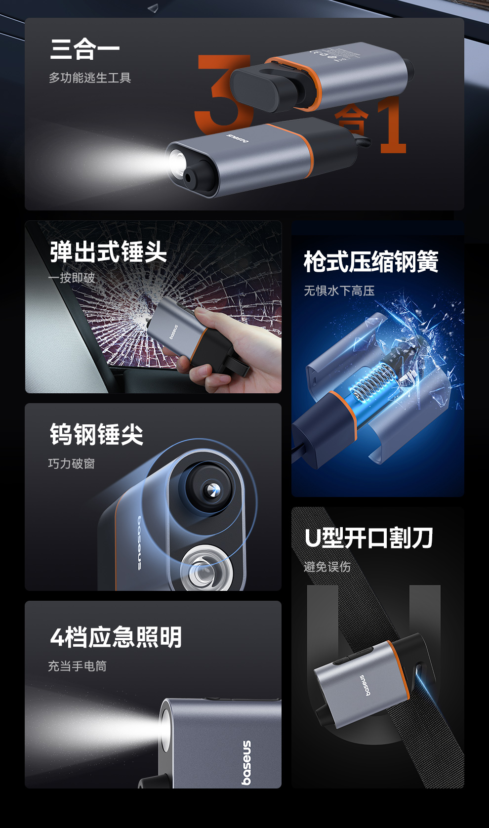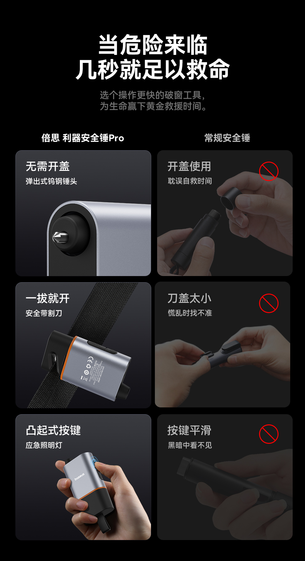倍思 利器 安全锤Pro 破窗割带照明三合一