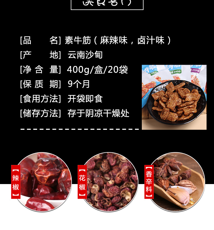 【包邮】沙甸美召 素牛筋(20g×20袋/盒)麻辣味 | 卤汁味