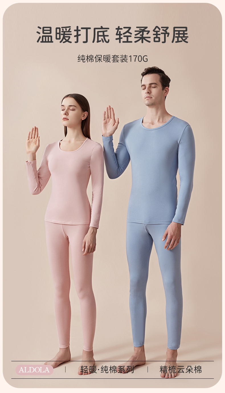 雅黛丽秋衣秋裤女纯棉套装男士保暖内衣情侣圆领修身保暖衣男秋冬